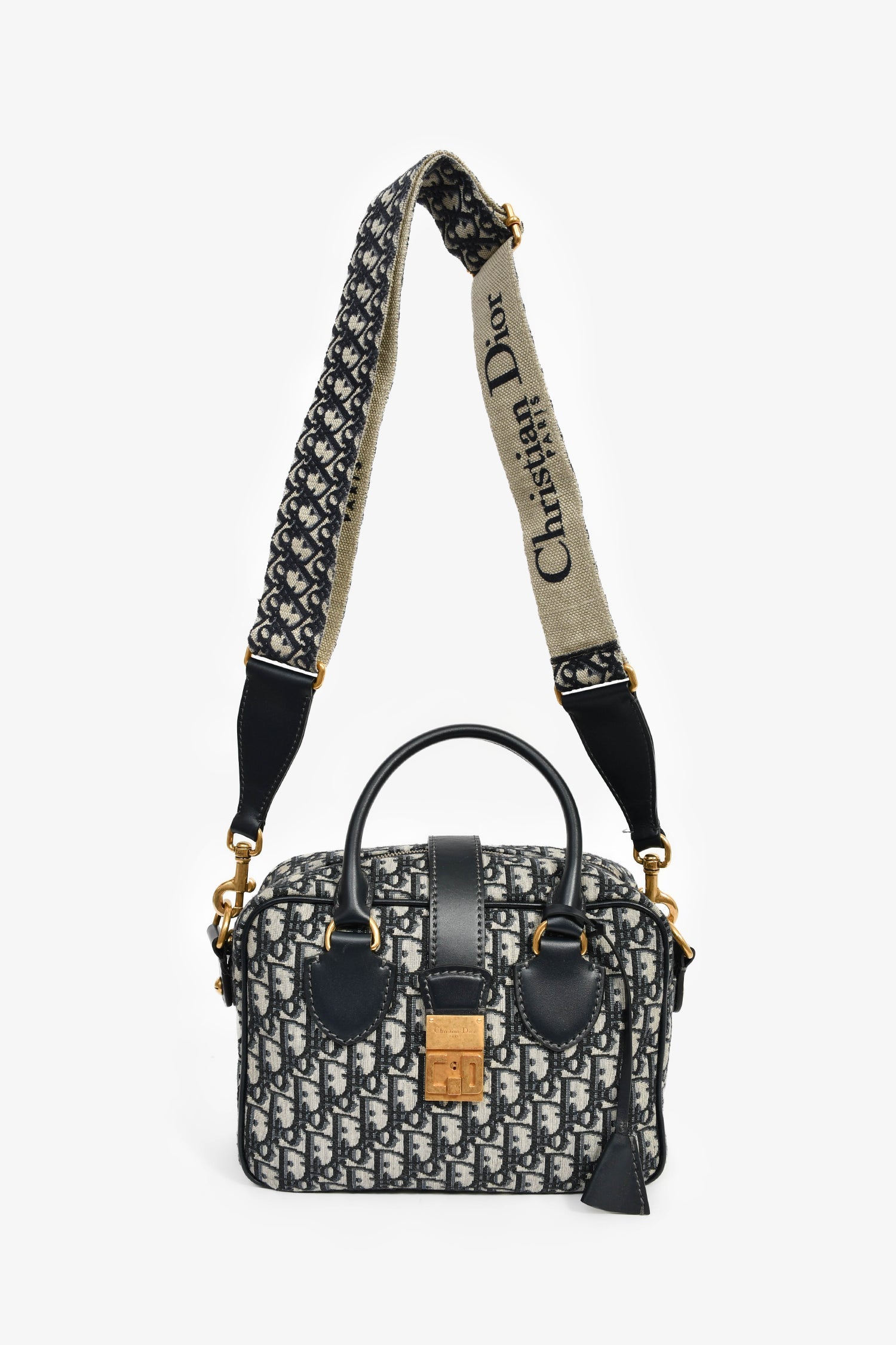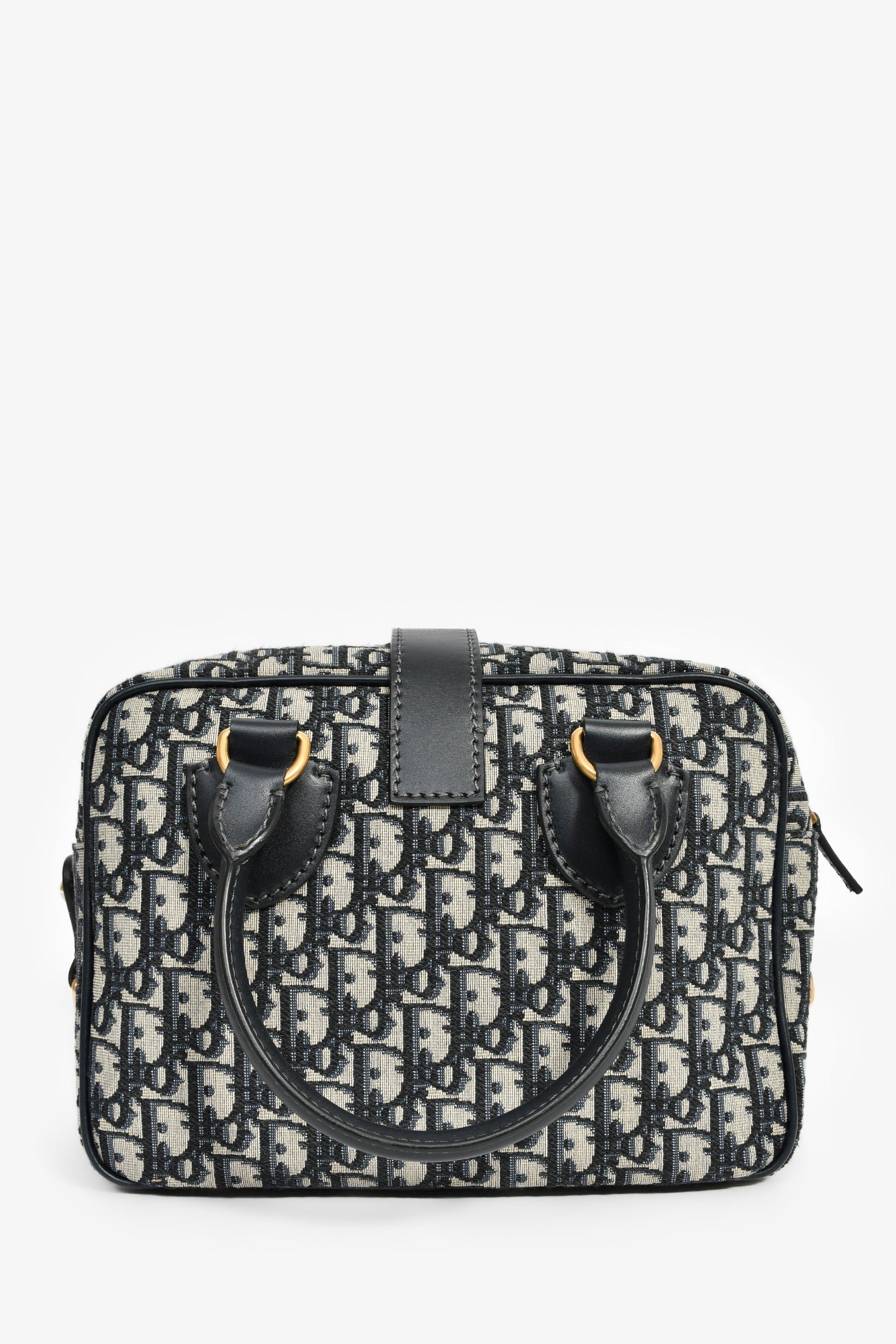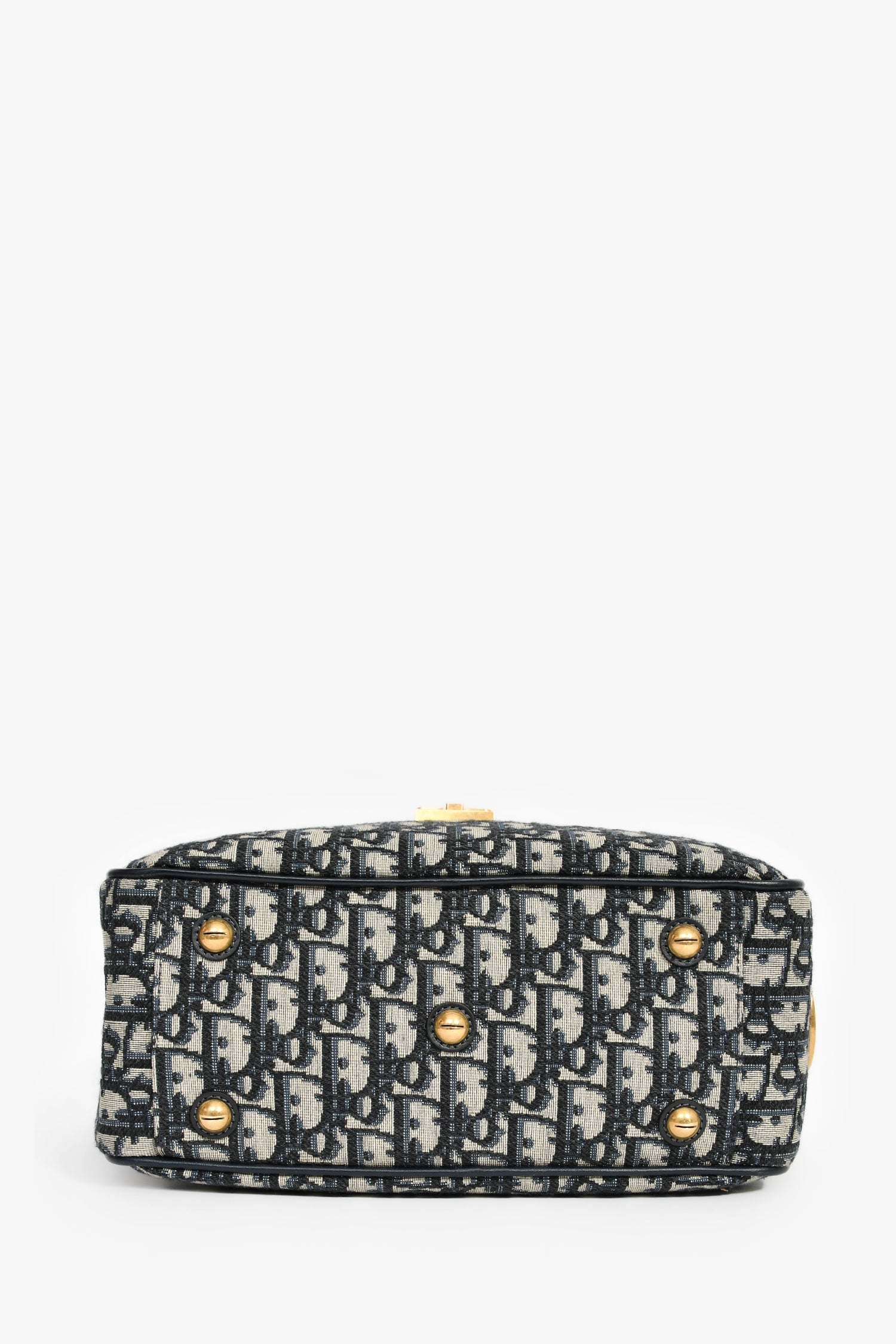 Christian Dior 2017 Navy Oblique Jacquard Bowling Bag with Strap