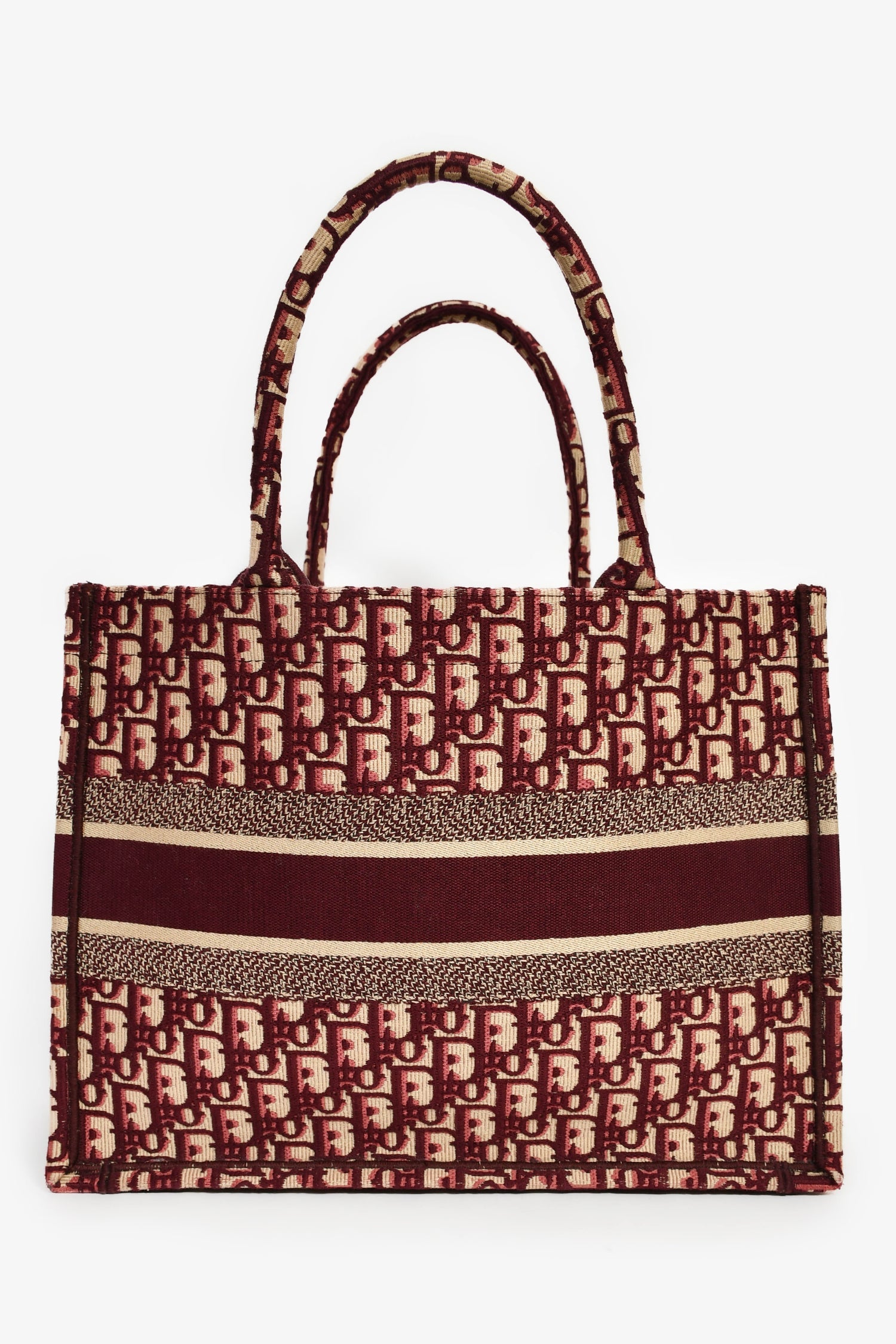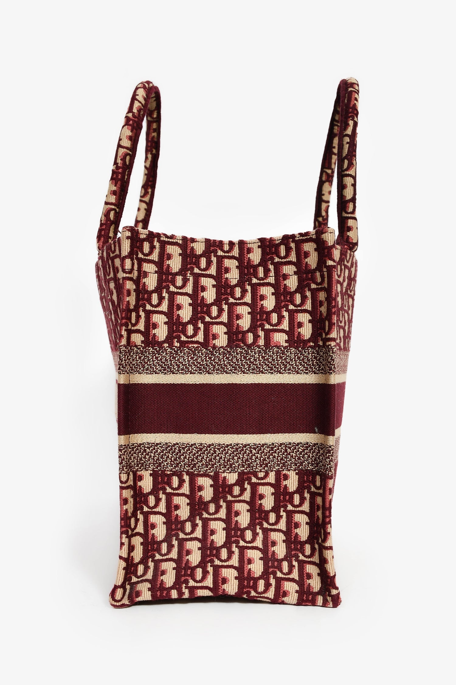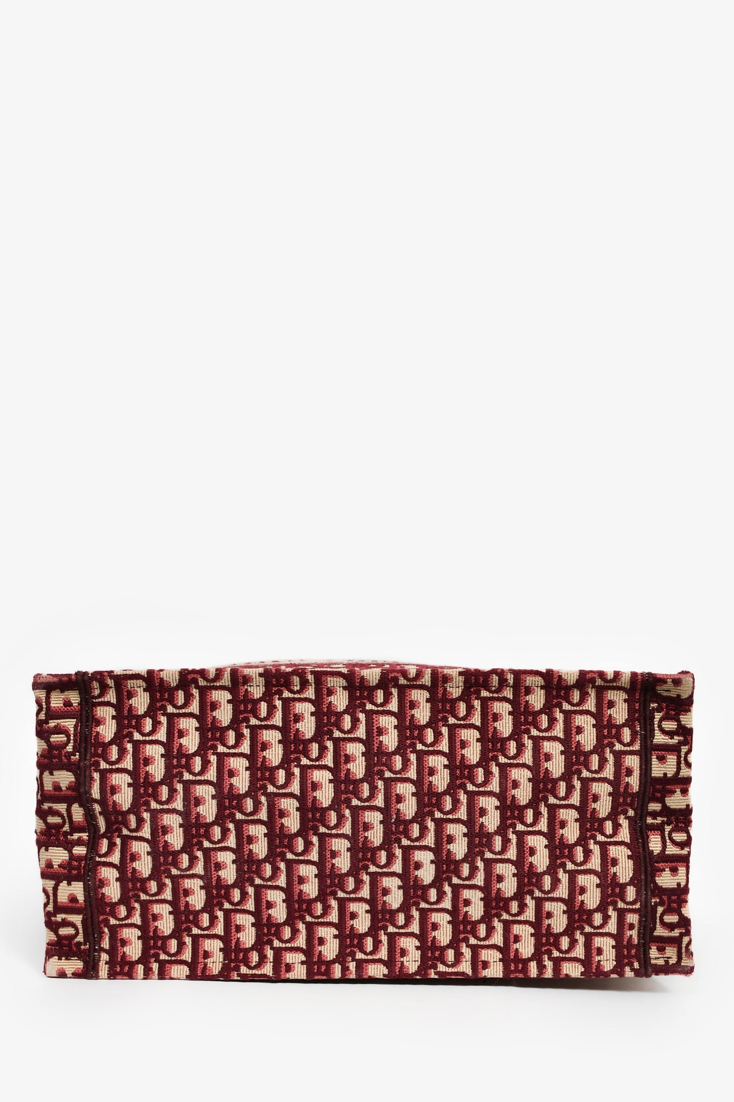 Christian Dior 2019 Burgundy Oblique Jacquard Medium Book Tote. Dual top handles. Open interior. Tonal stitching.