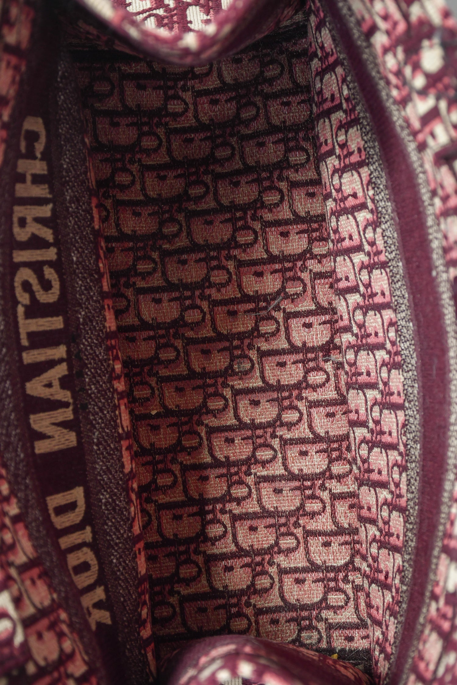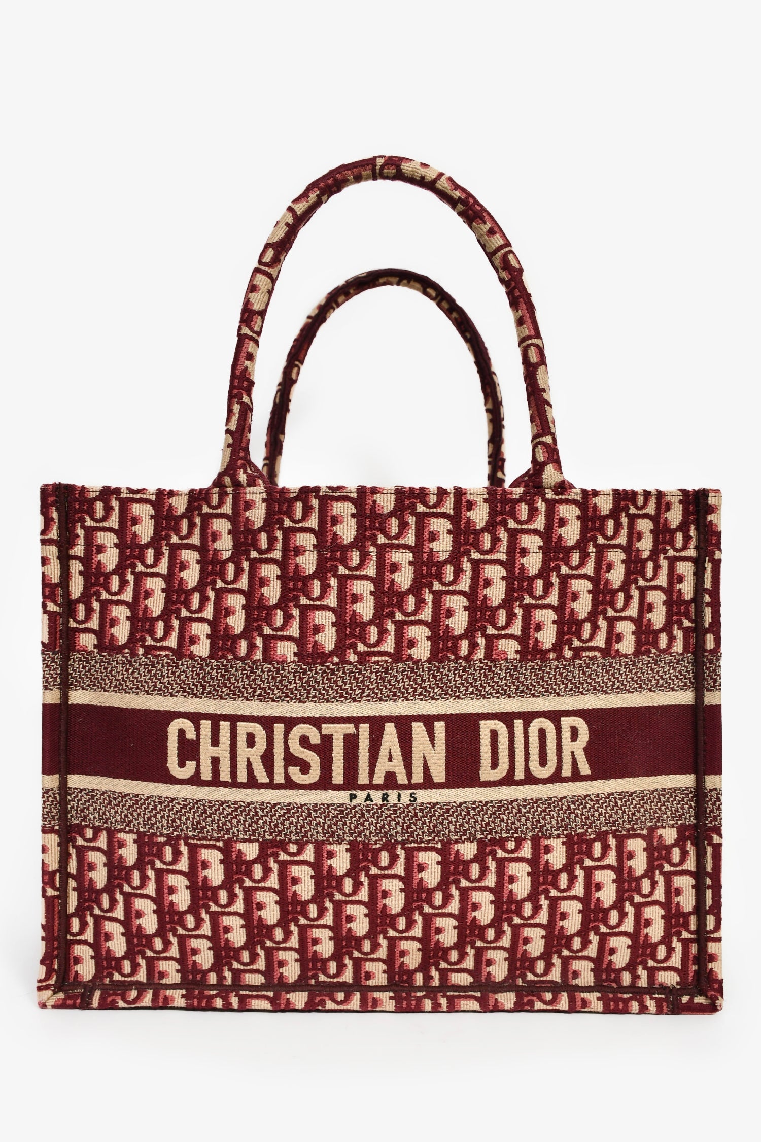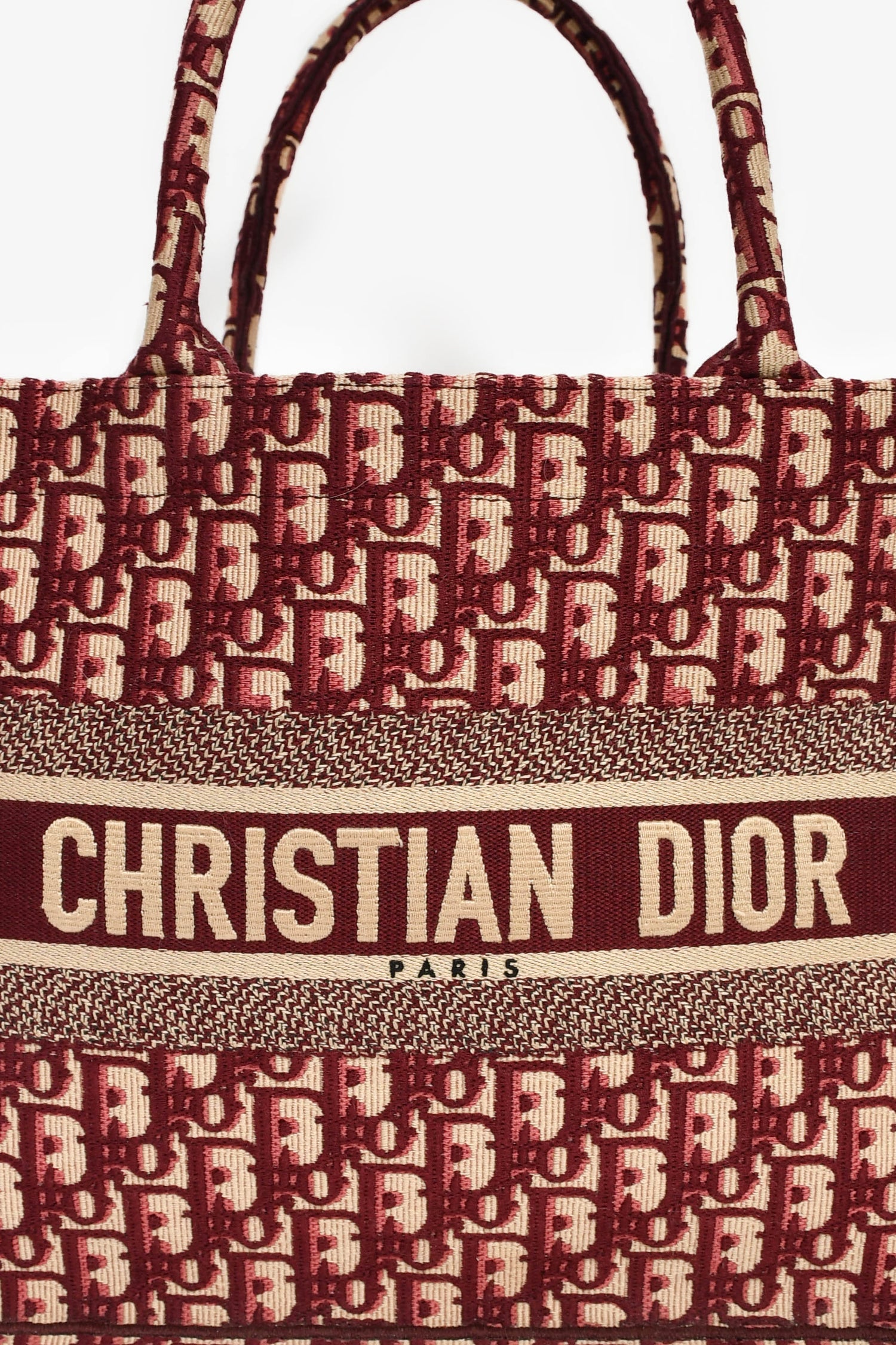 Christian Dior 2019 Burgundy Oblique Jacquard Medium Book Tote. Dual top handles. Open interior. Tonal stitching.