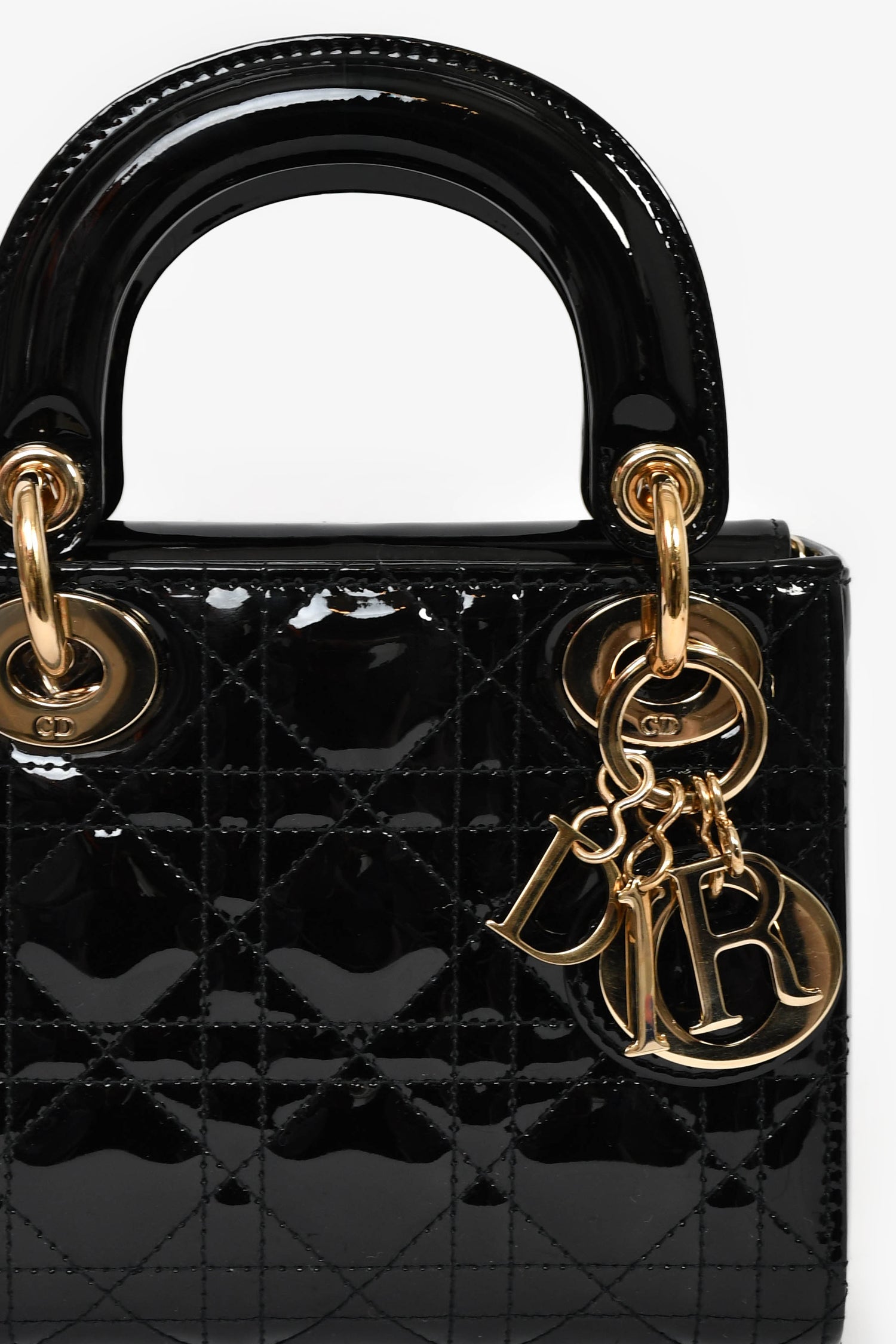 Christian Dior 2020 Black Patent Leather Mini Lady Dior Bag with Strap