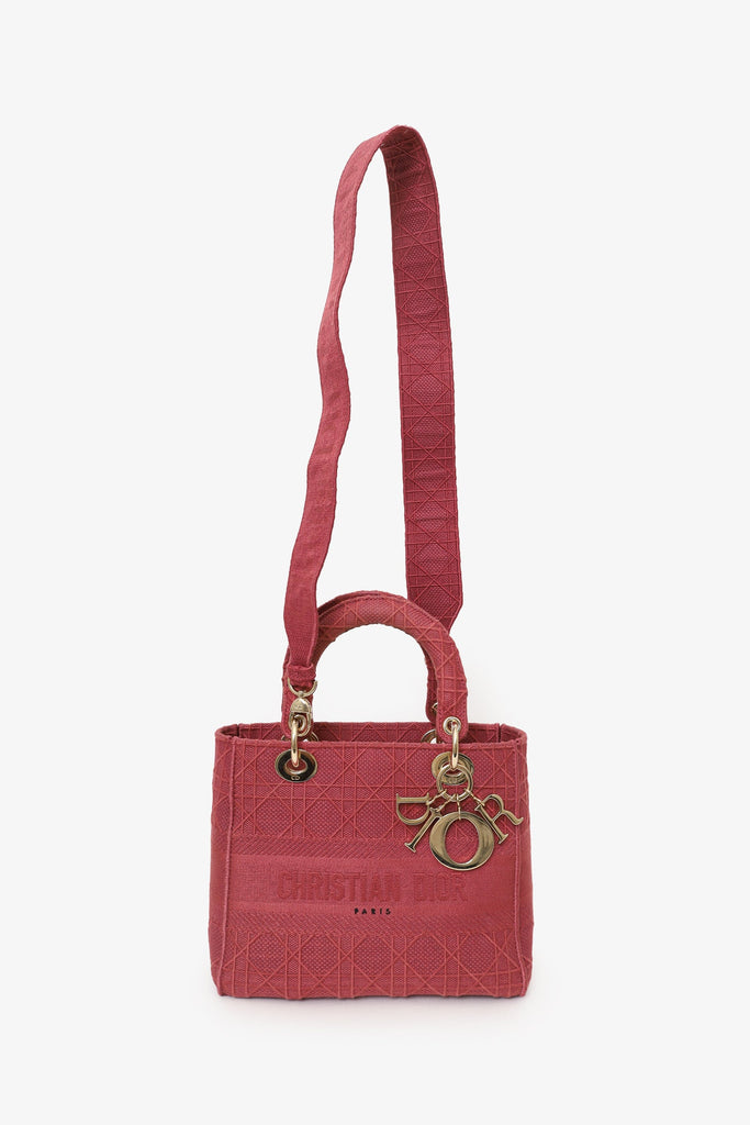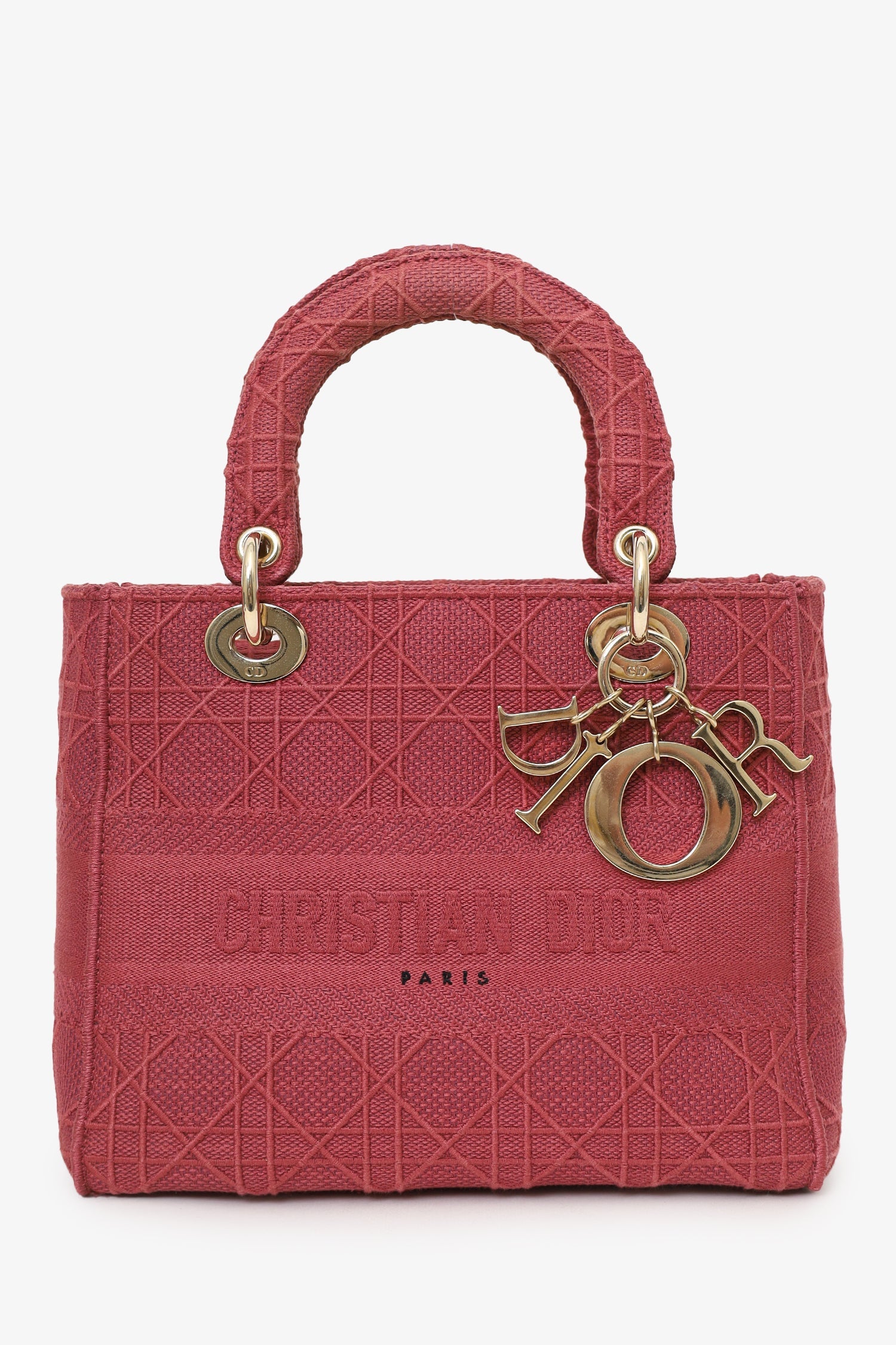 Christian Dior 2020 Pink Cannage Canvas Medium Lady D-Lite With Strap