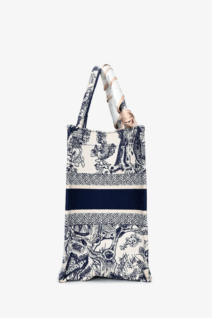 Christian Dior 2021 Navy/White Toile de Jouy Embroidered Medium Book Tote