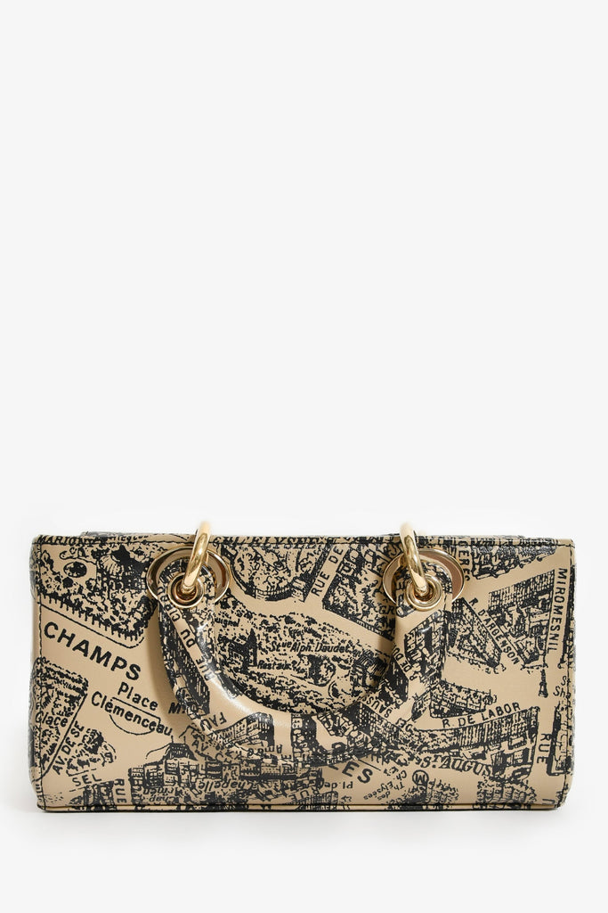 Christian Dior 2023 Taupe Leather 'Plan de Paris' Small Lady D-Joy Bag