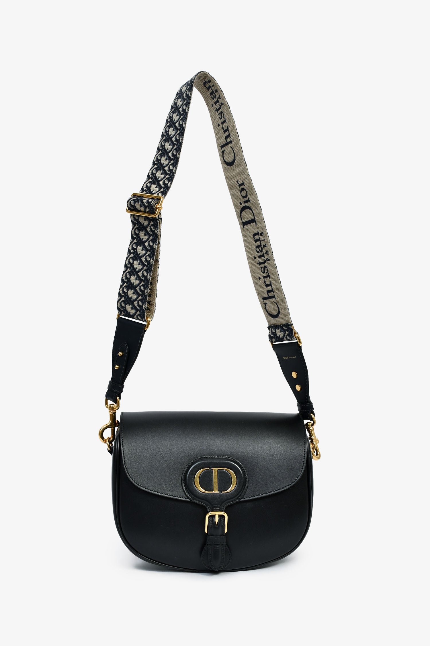 Christian Dior Black Leather Large Bobby Oblique Canvas Strap Crossbody Bag