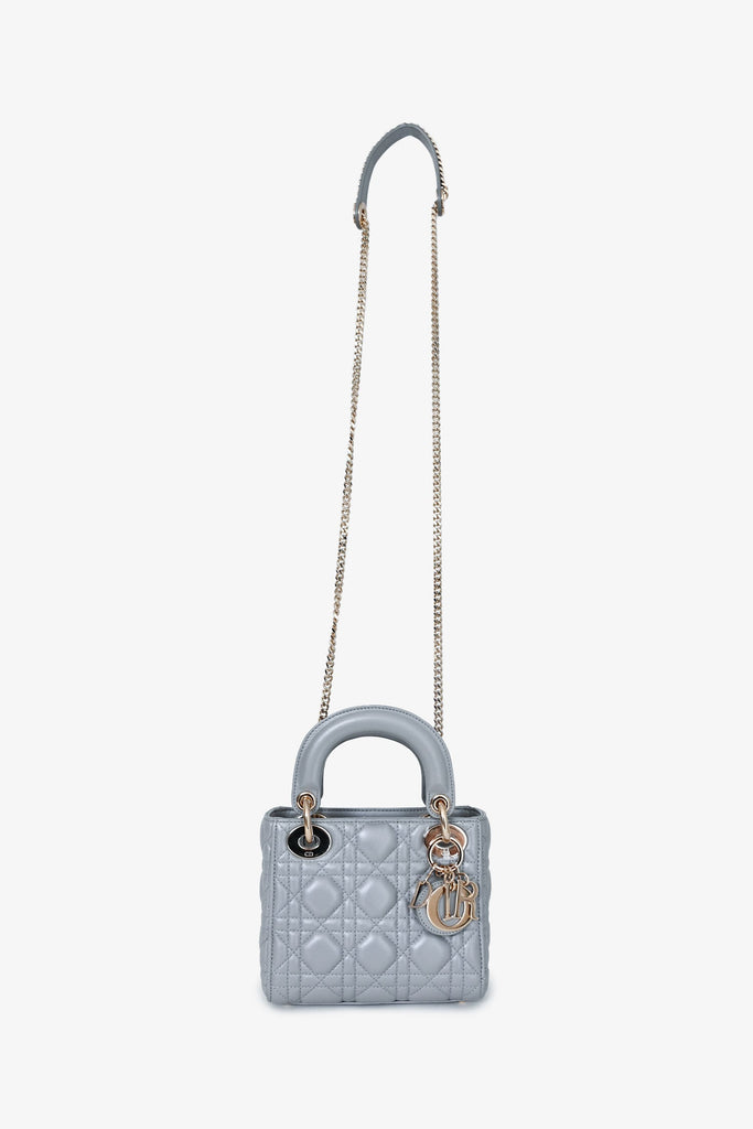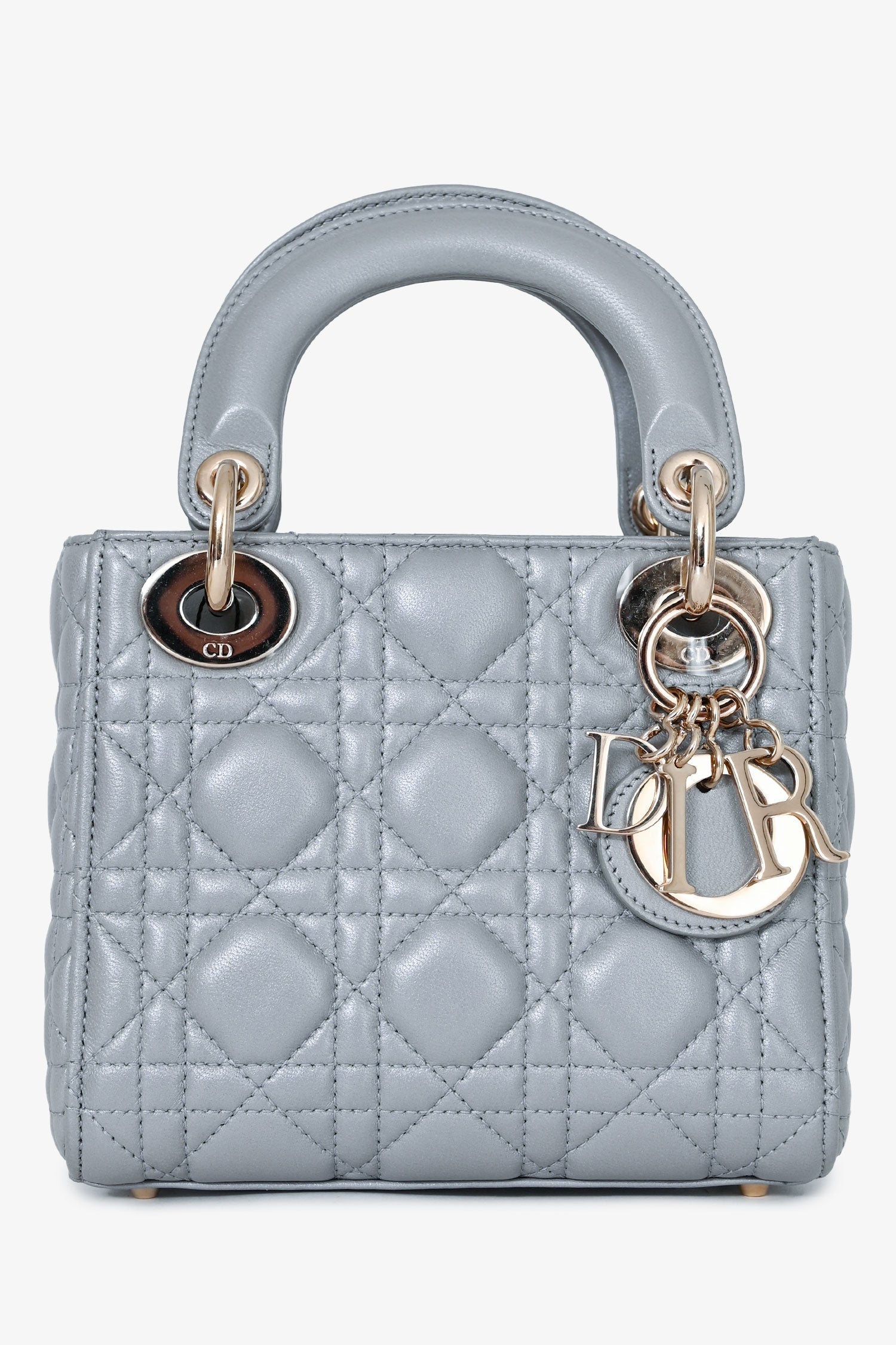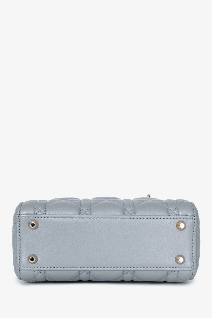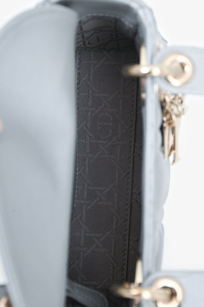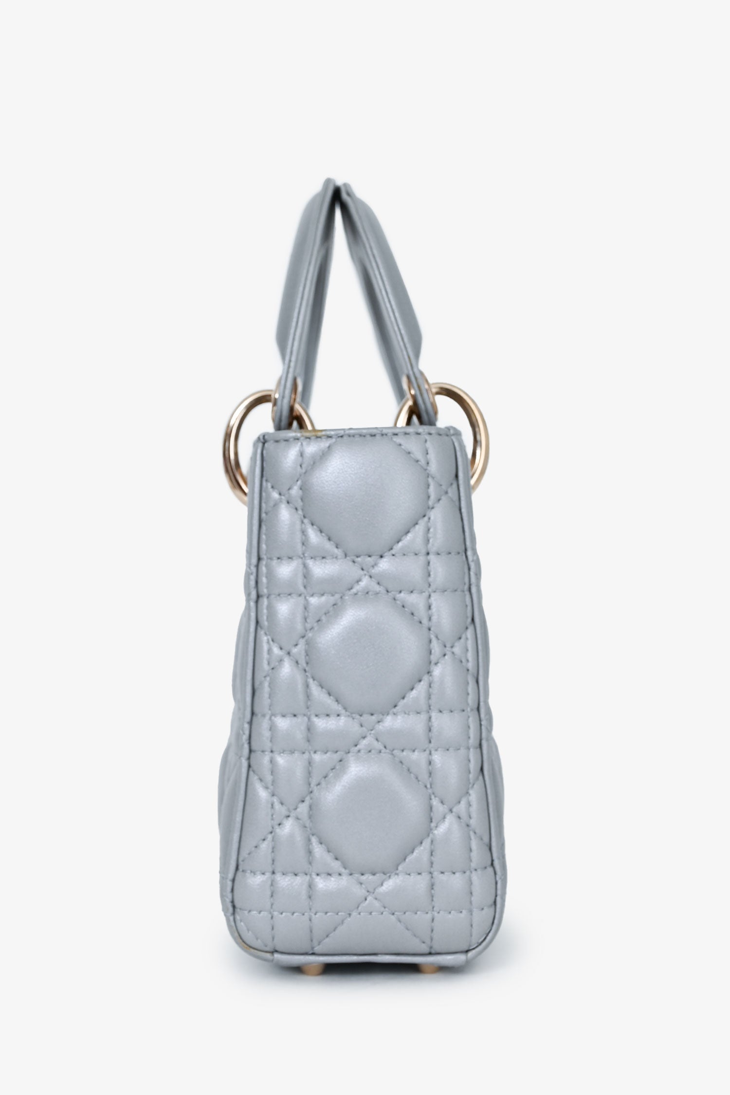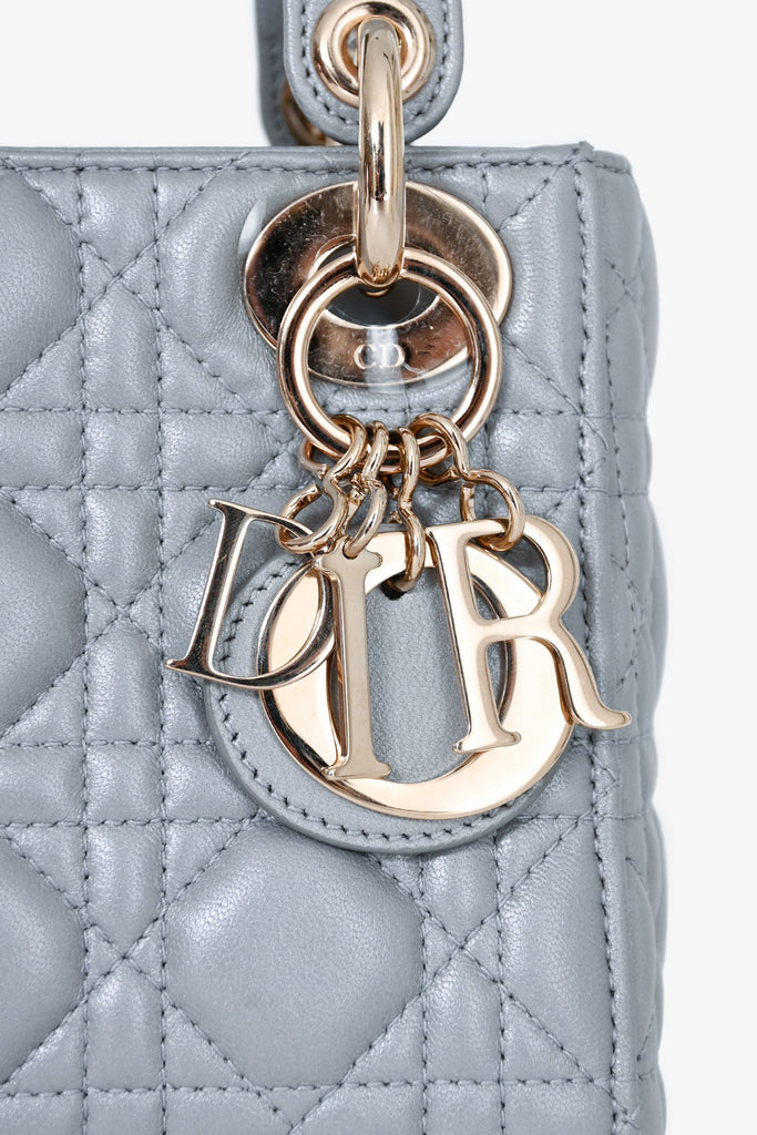 Christian Dior Grey Shimmer Leather Cannage Mini Lady Dior with Strap