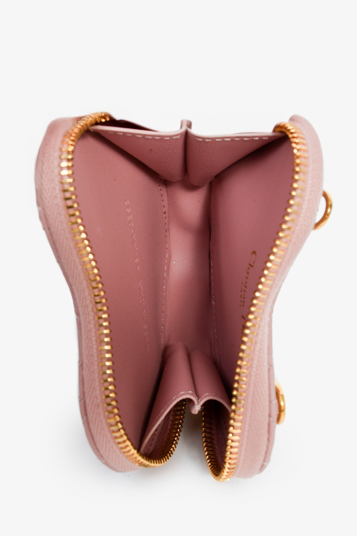 Christian Dior Pink Heart Cannage Caro Leather Heart Pouch on Chain