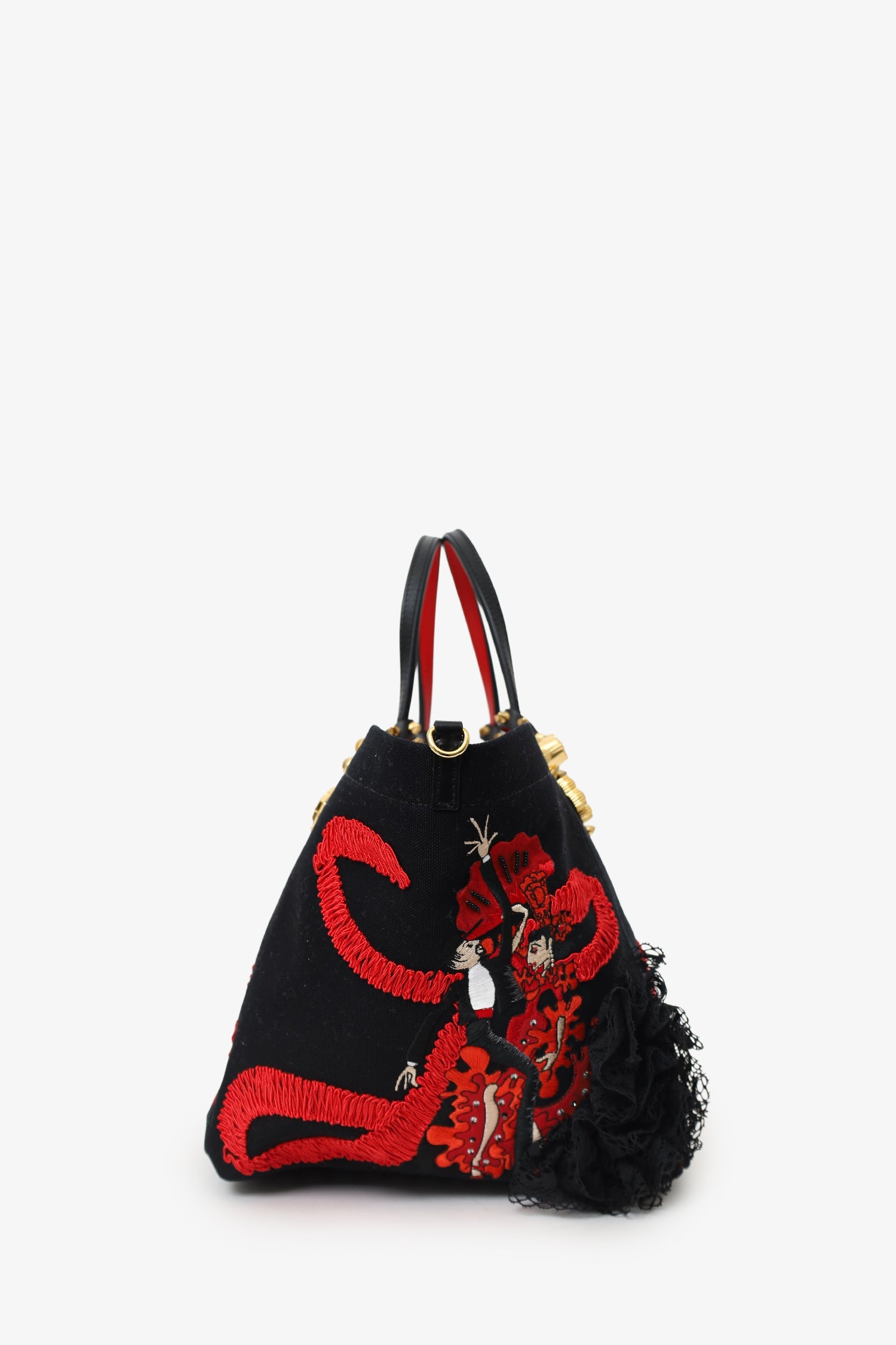 Christian Louboutin x Rossy de Palma Black/Red Flamenco Embroidered Tote Bag