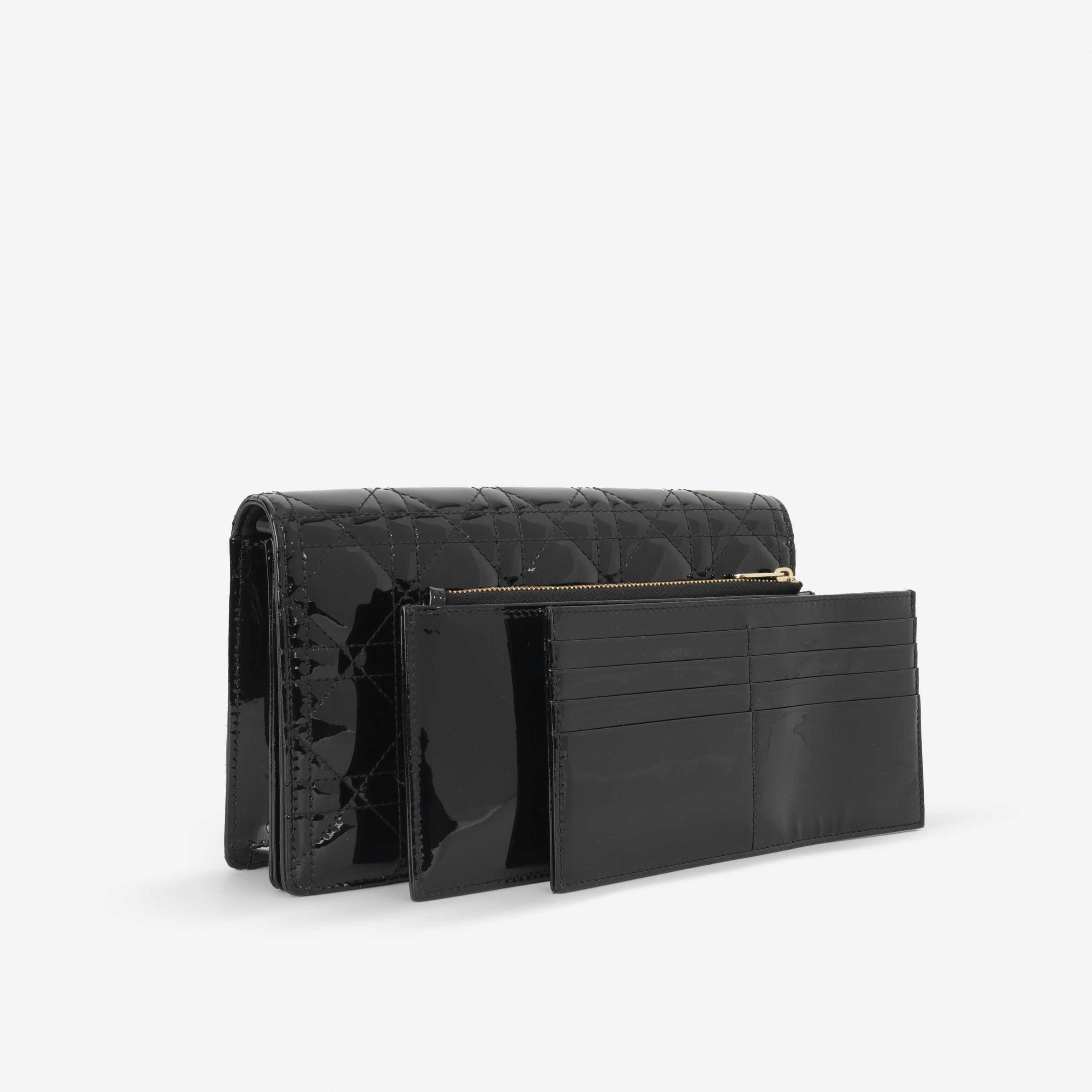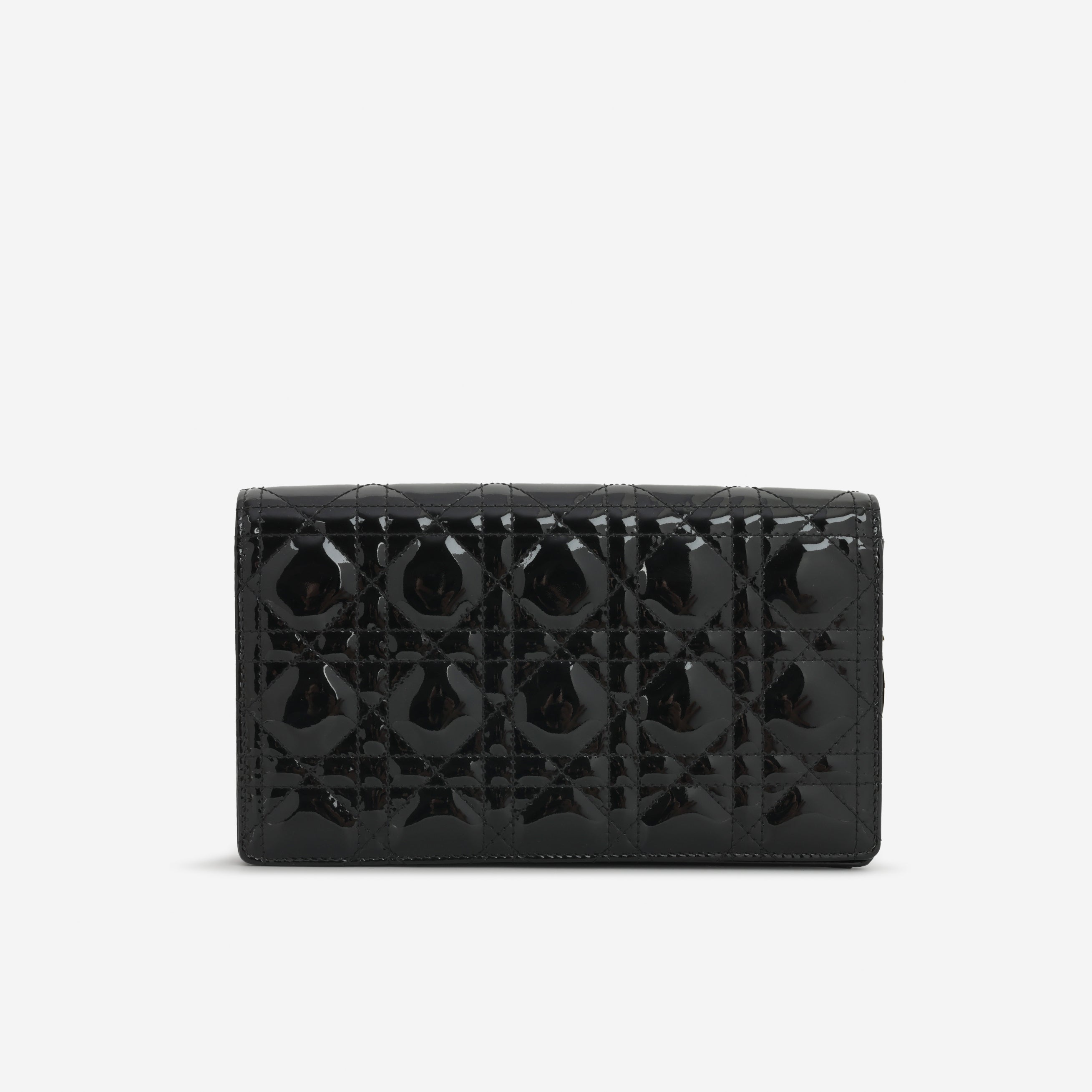 Dior Lady Dior Pouch - Black Patent Cannage | Champagne Gold Hardware