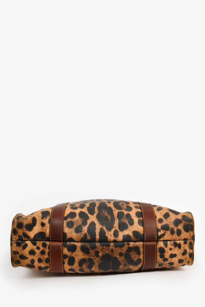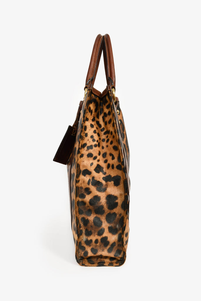 Dolce & Gabbana Brown Leopard Print Coated Canvas and Leather Shopper Tote