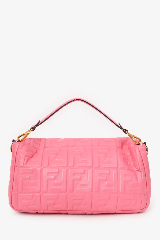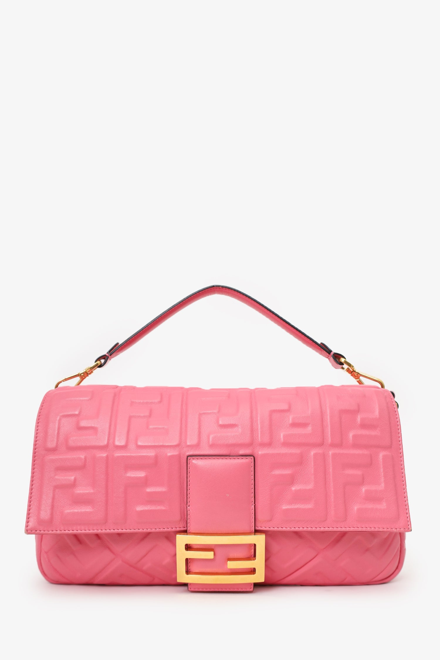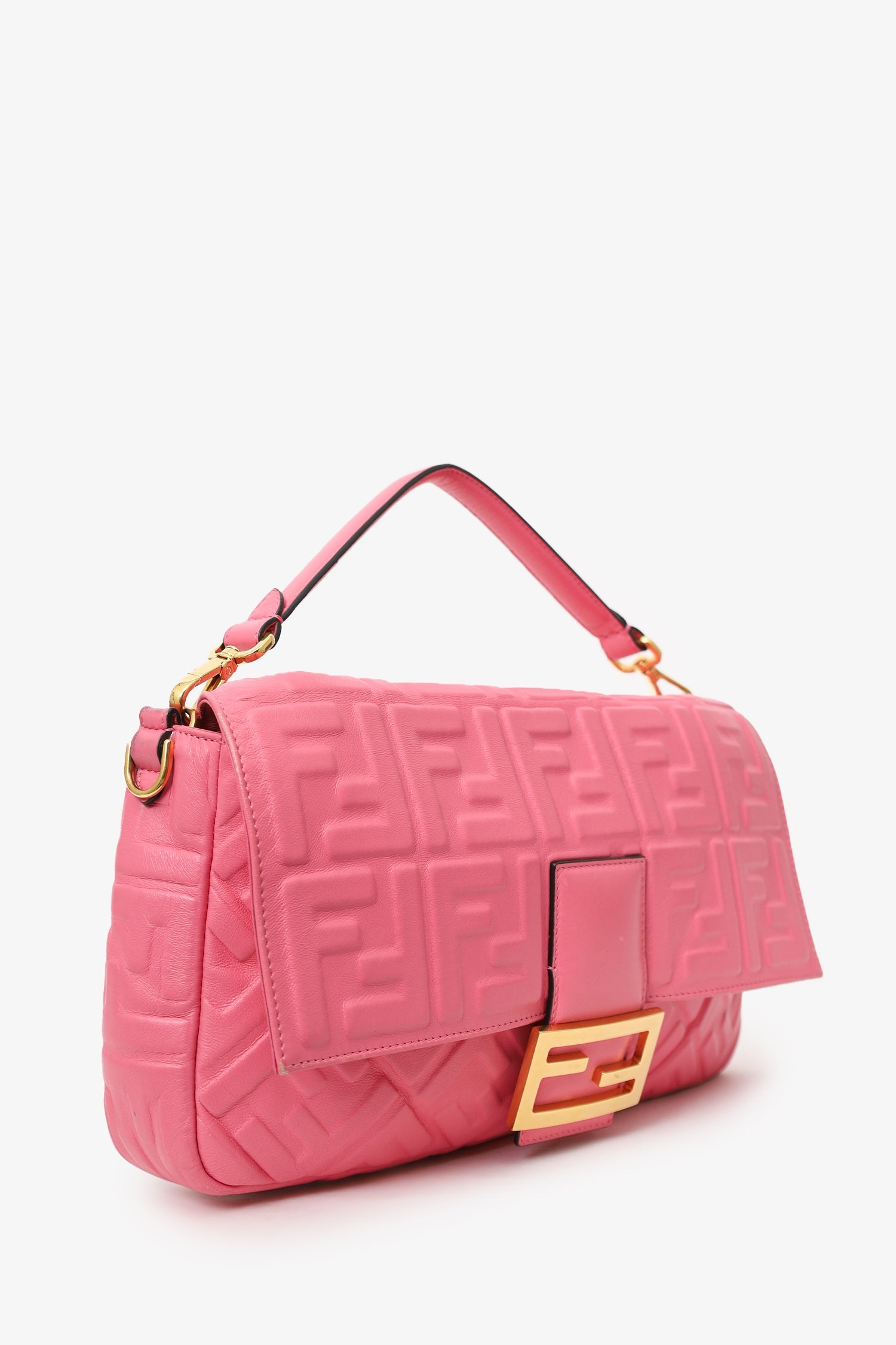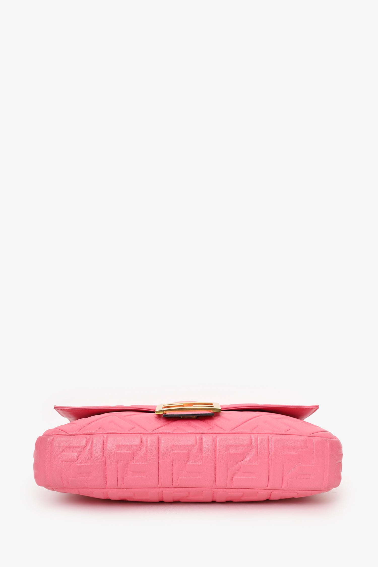 Fendi Pink Leather Nappa FF 1974 Embossed Large Baguette Bag with Strap
