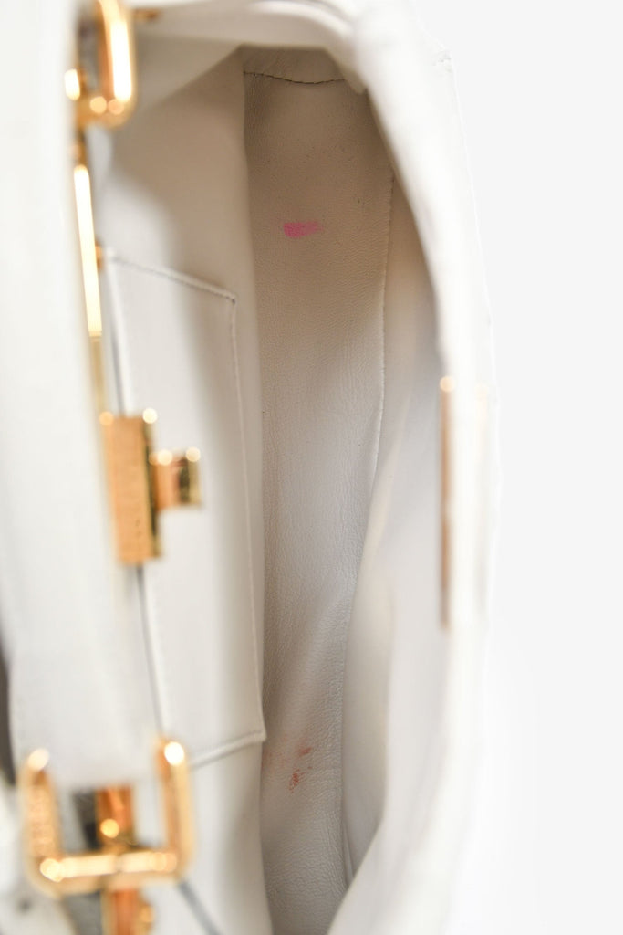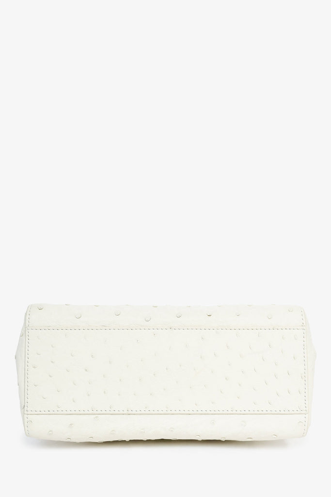 Fendi White Ostrich Leather Mini Peekaboo Bag with Strap