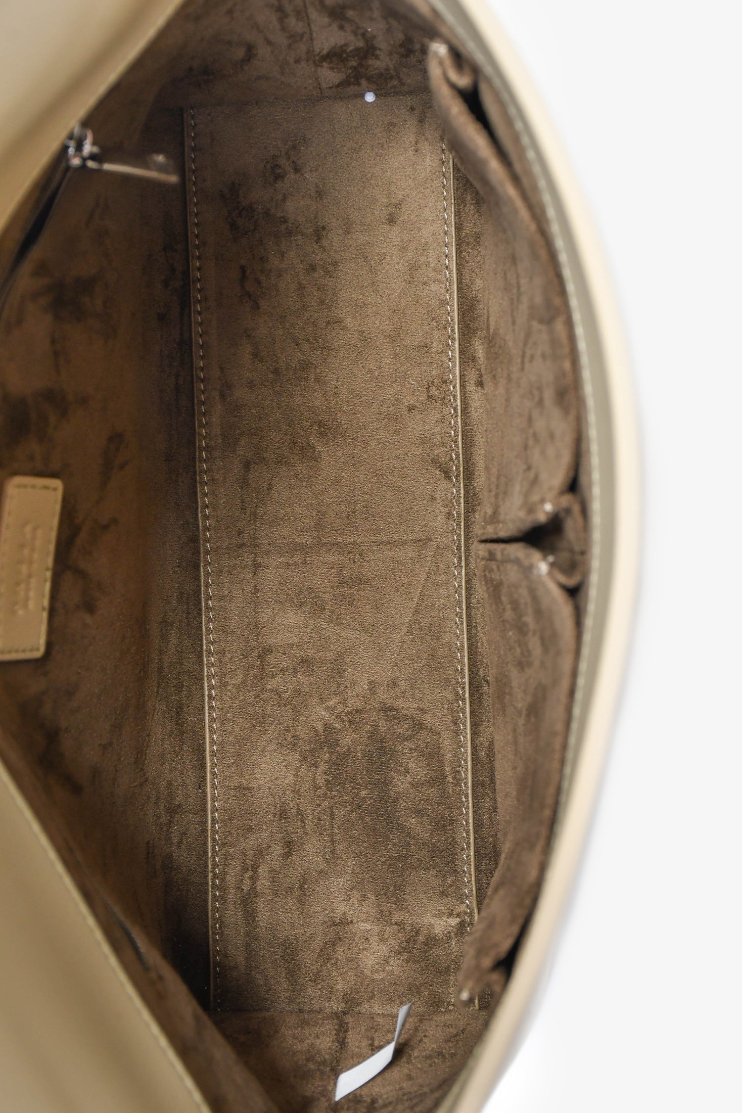 Freya New York 'Sand' 'Seamed' Fold Clutch. Fold-over flap with concealed magnetic closures. Suede-lined interior with 4 main compartments: 1 main, 2 pockets, and 1 zip. Tonal stitching.