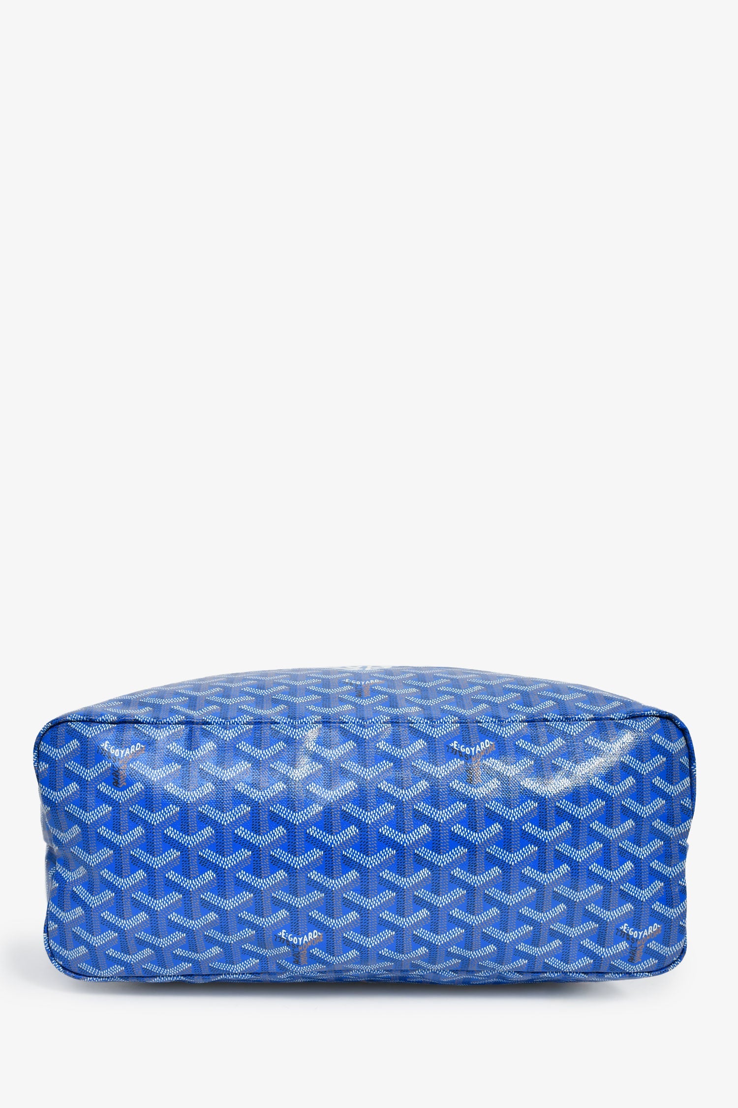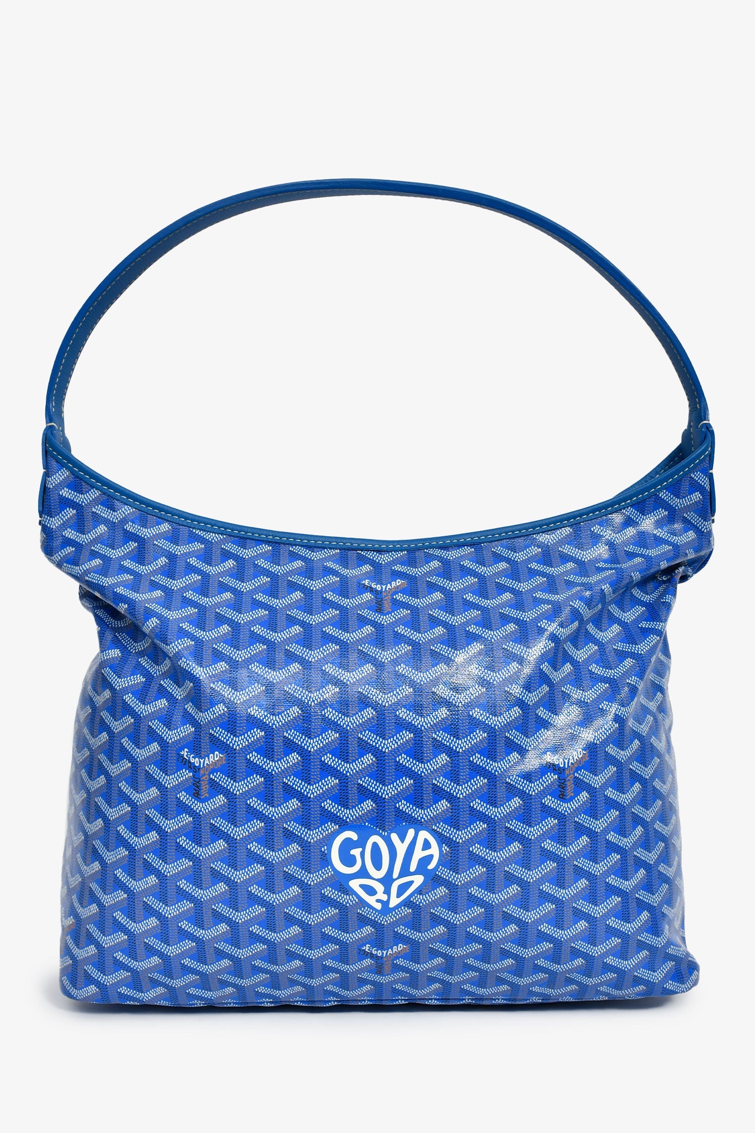 Goyard 2024 Sky Blue Goyardine Bohème Hobo Bag with Pouch. Top zip closure. Lined interior. Detachable interior pouch with snap-button closure. Contrast stitching.