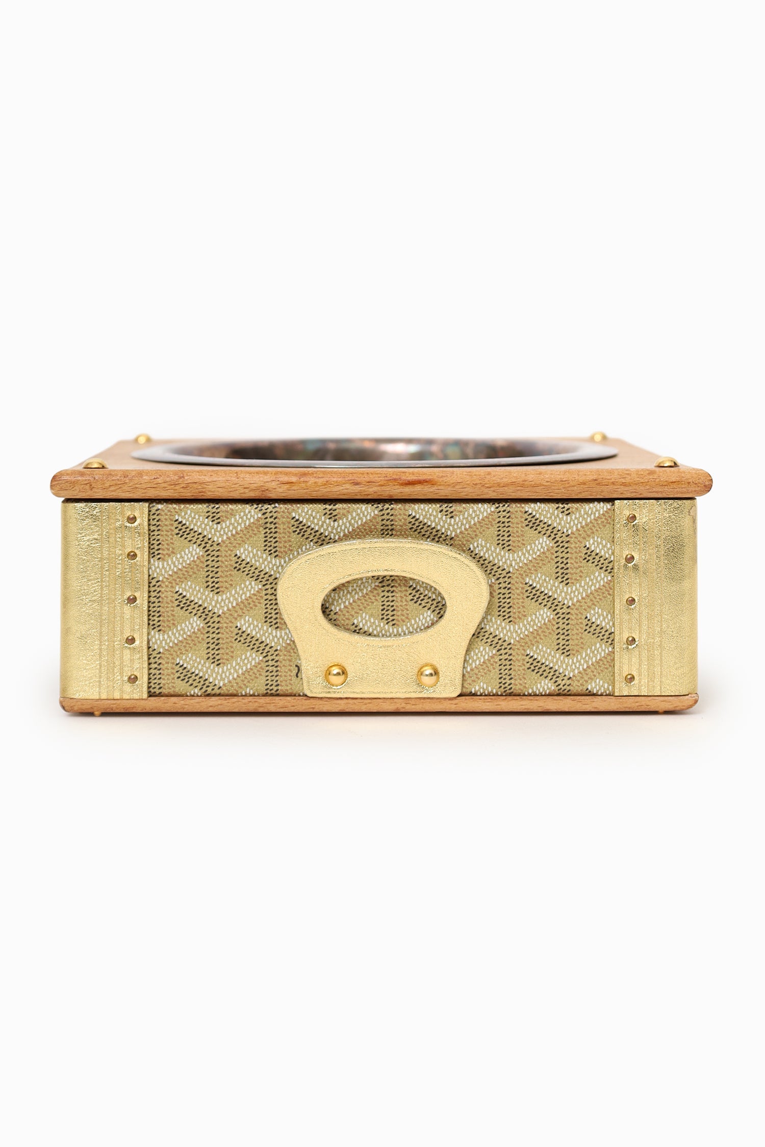 Goyard Gold Canvas Goyardine Travel Pet Bowl 'Ecuelle Edmond' Trunk