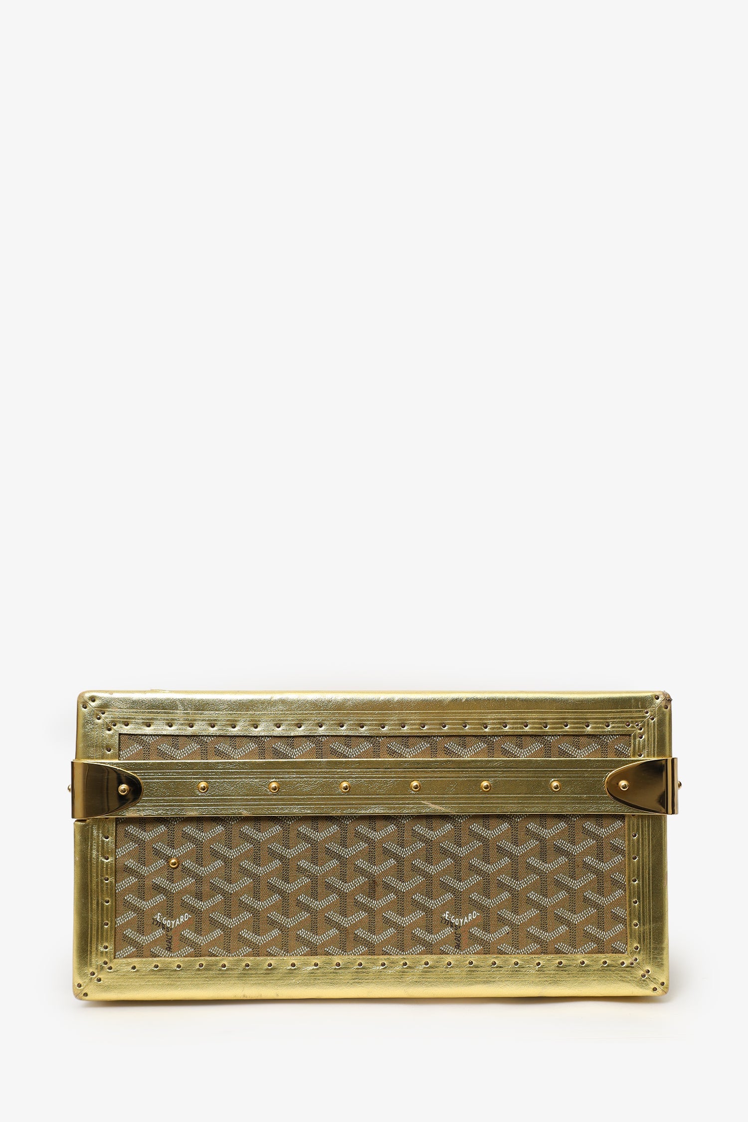 Goyard Gold Gold Goyardine Coated Canvas 'Grand Hotel 50' Trunk