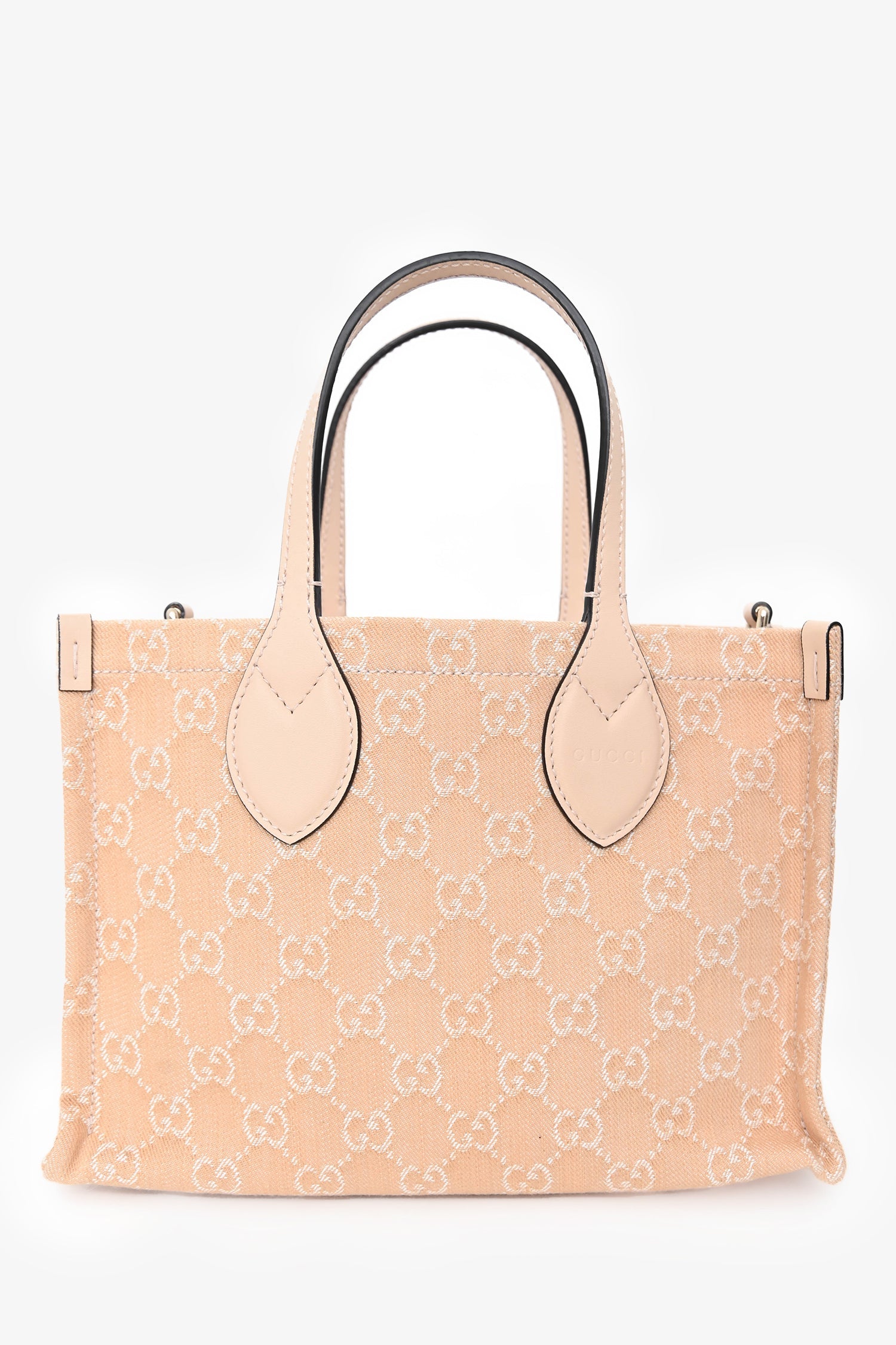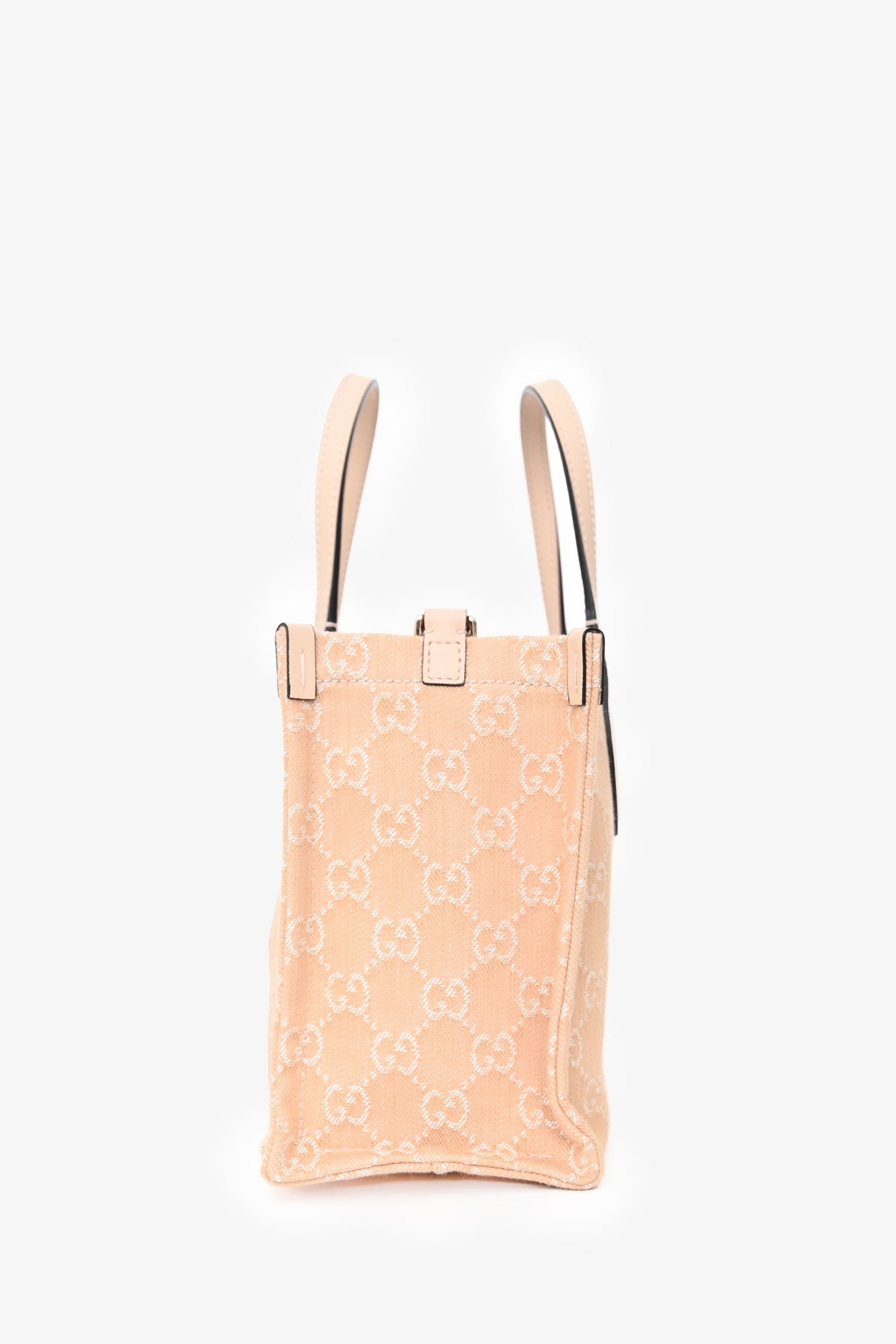 Gucci Beige Monogram Denim Ophidia Medium Shopper Tote with Strap + Pouch