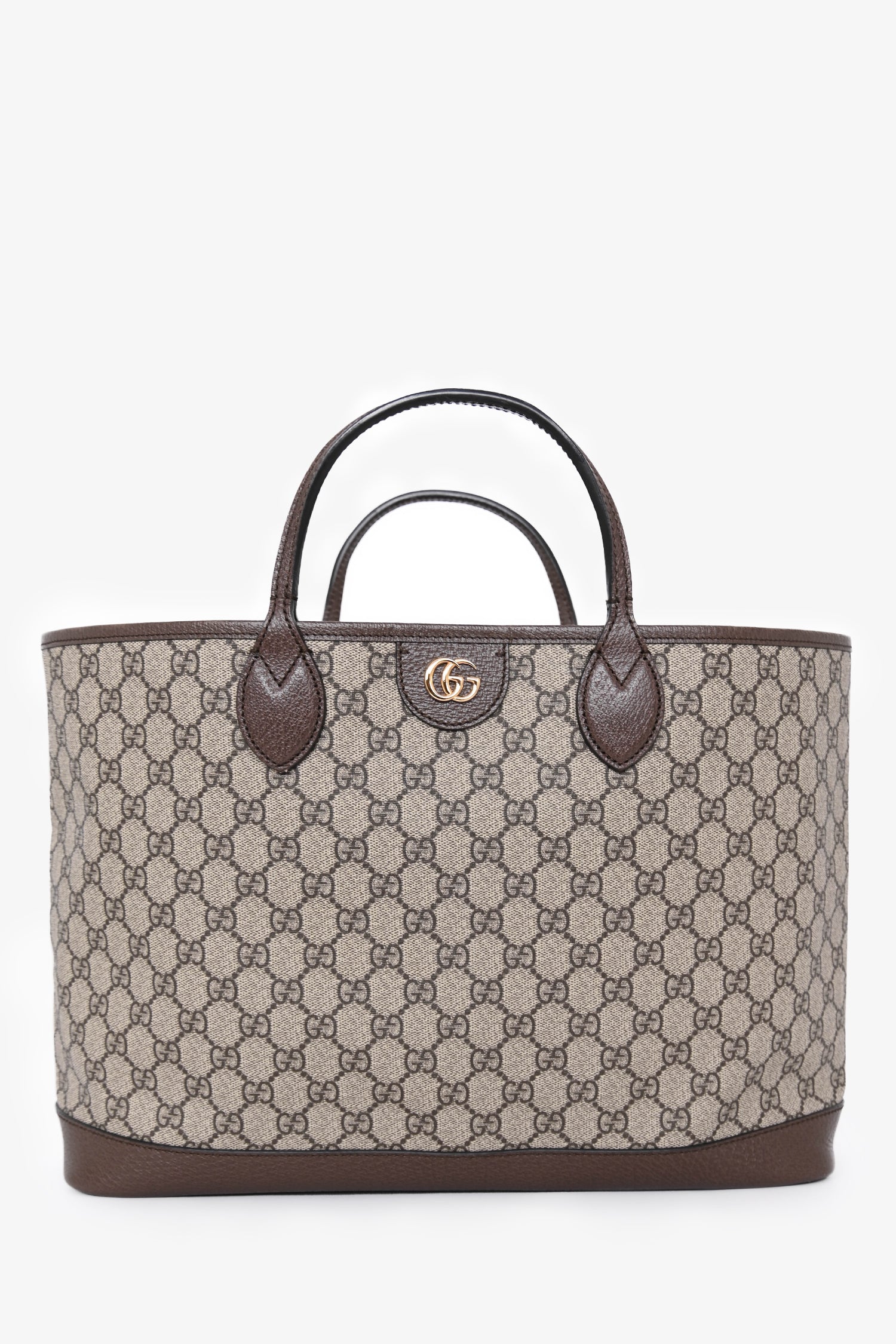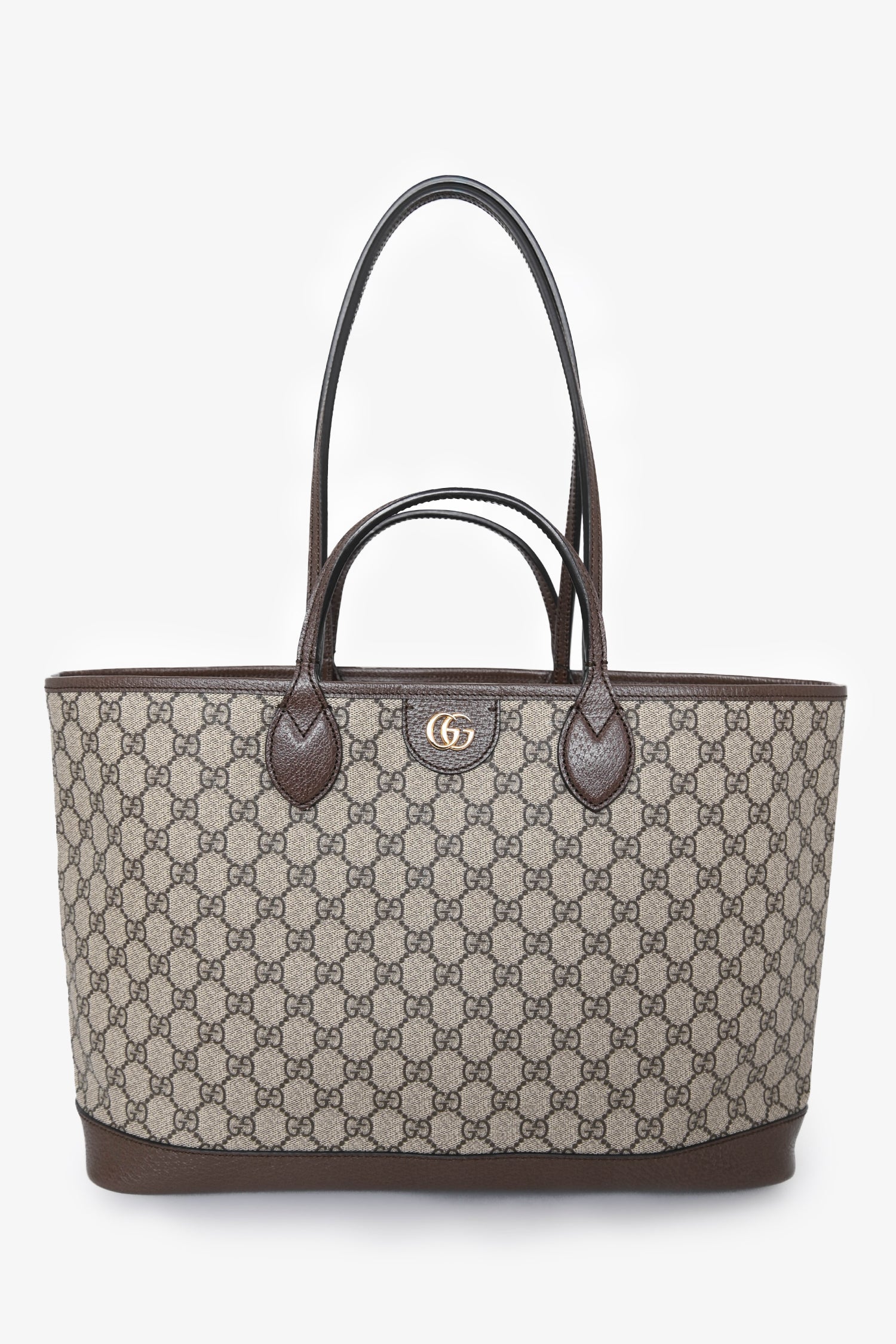 Gucci Brown Canvas GG Supreme Tote Bag with Double Handles
