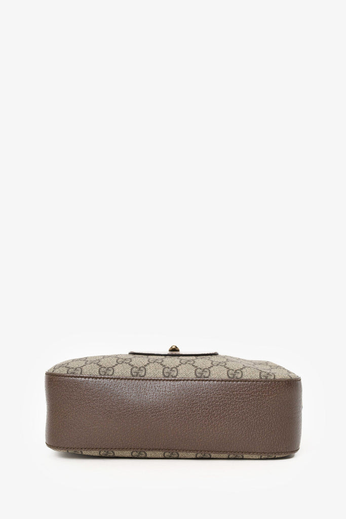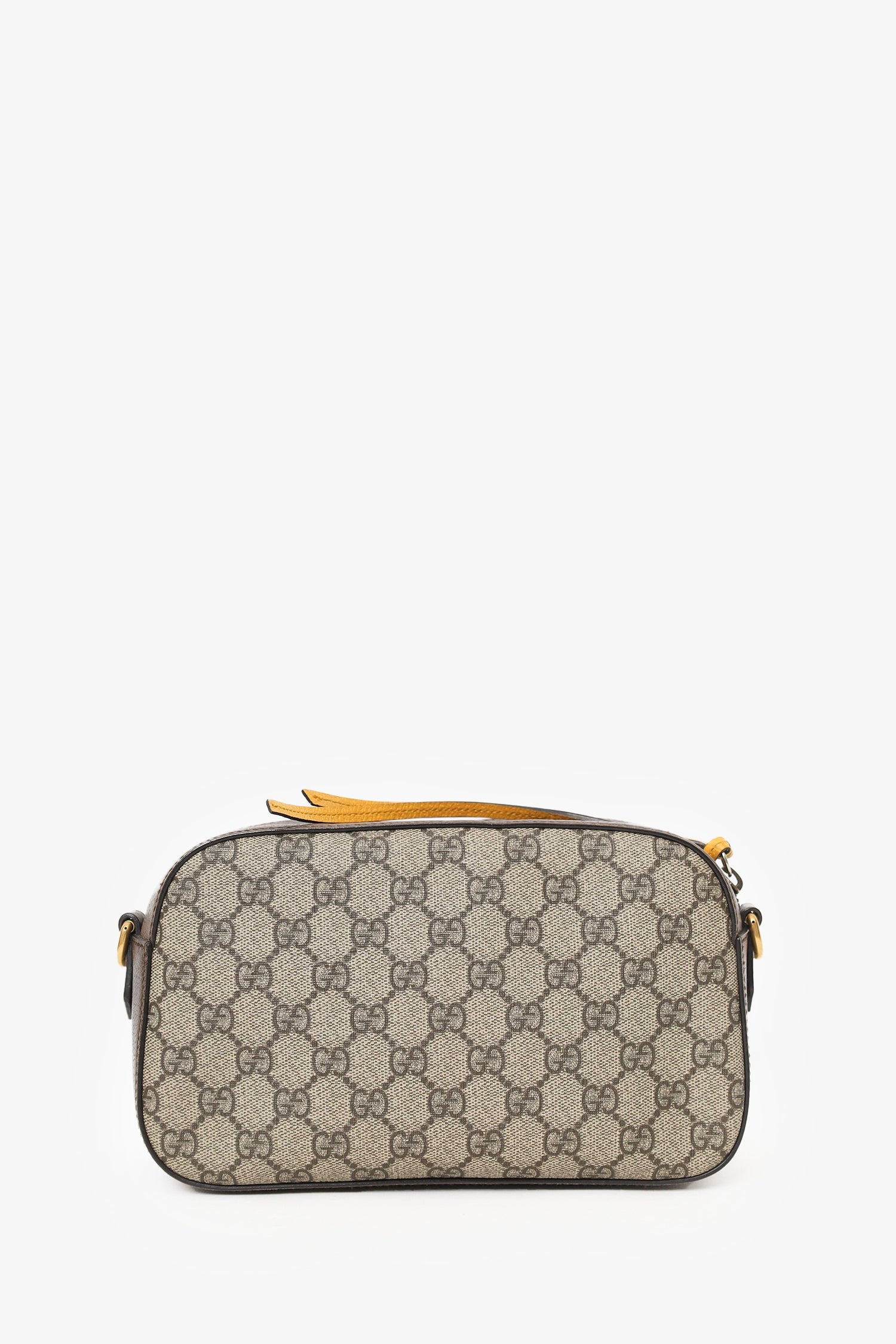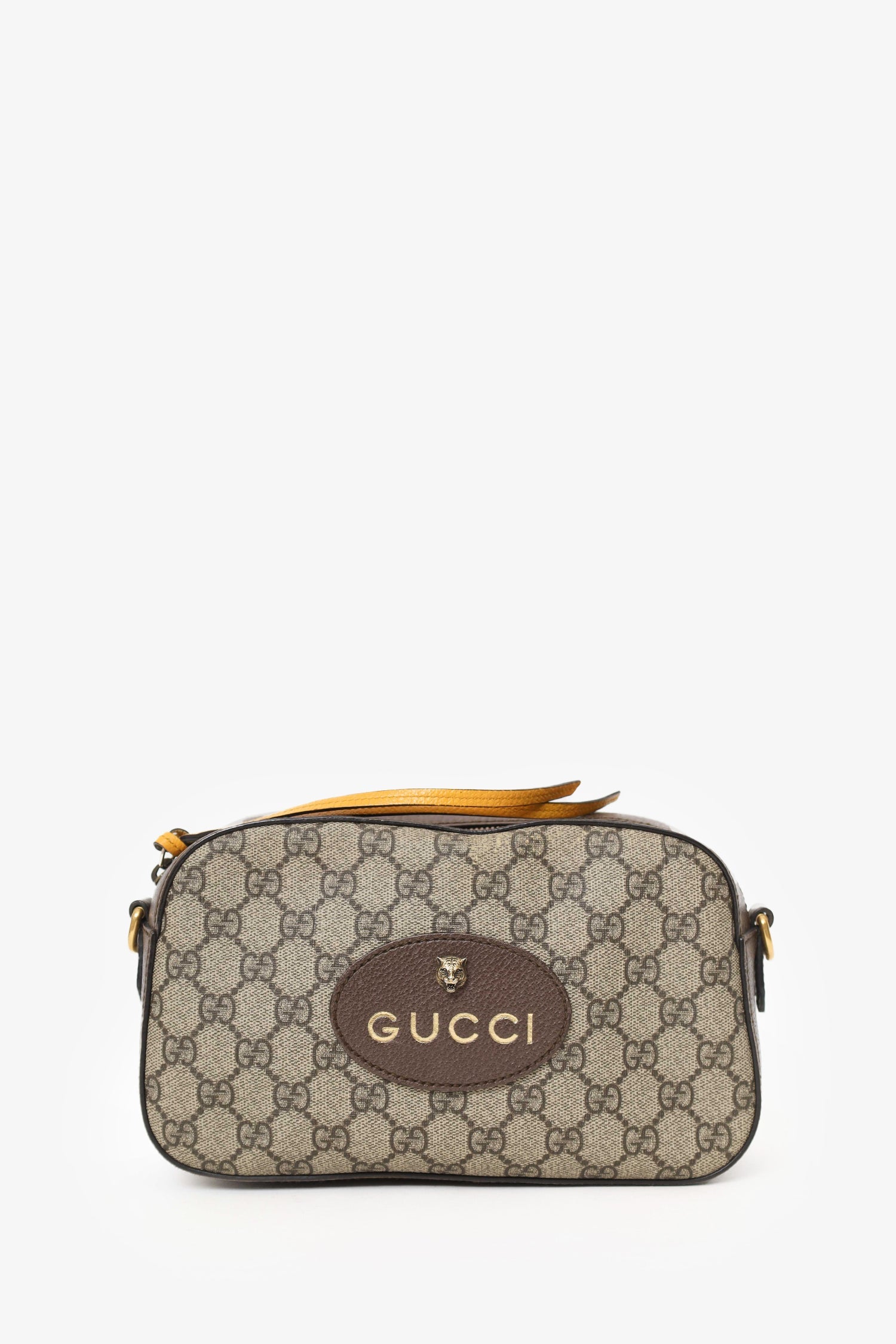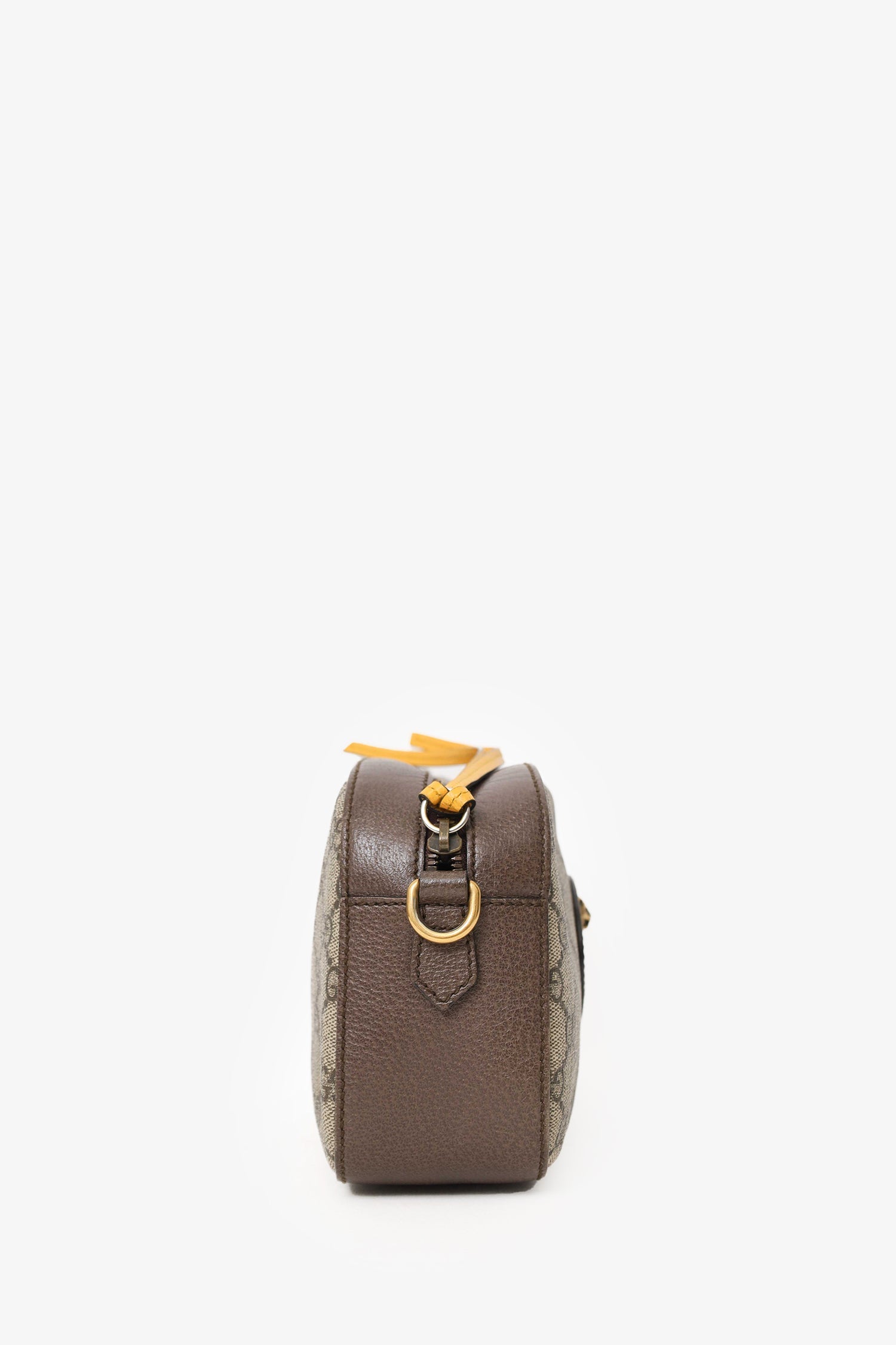 Gucci Brown Neo Vintage Messenger Bag With Web Strap. Top zip closure. Removable canvas strap. Lined interior. Single interior slip pocket. Gold-tone hardware. Tonal stitching.