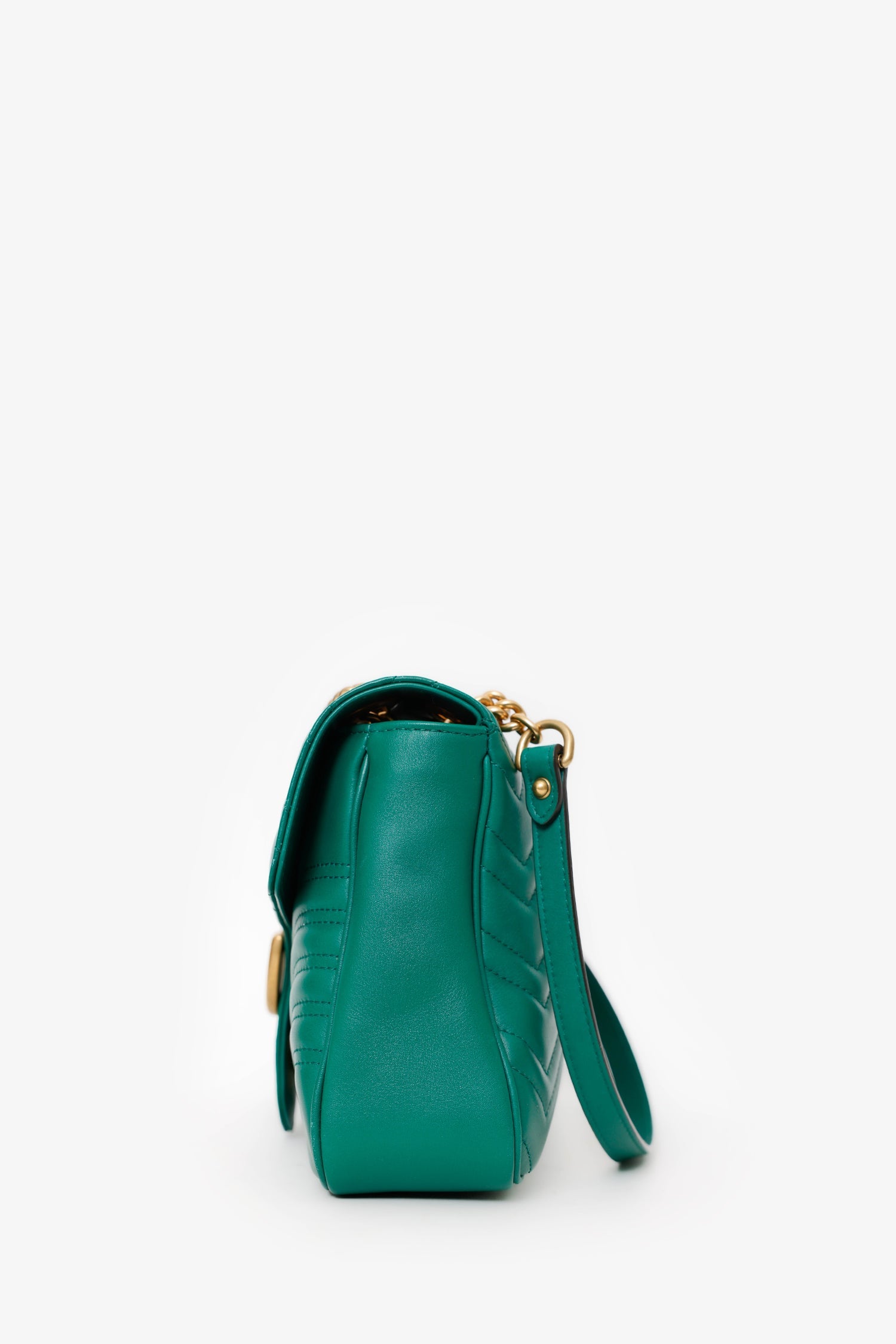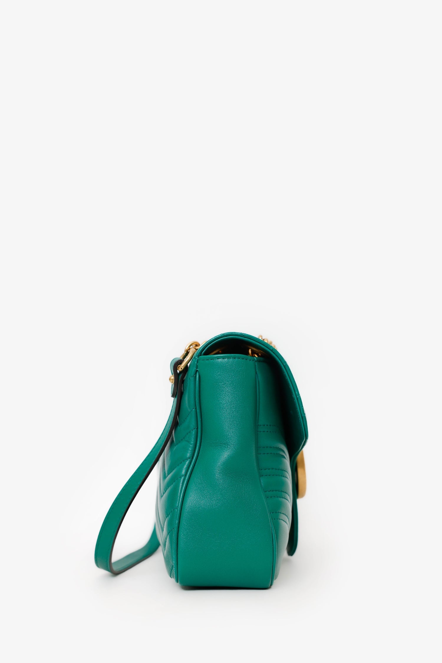 Gucci Green Chevron Leather Medium Marmont Shoulder Bag