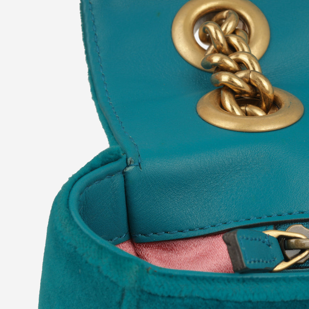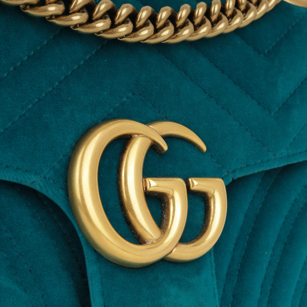 Gucci Marmont Bag Medium - Turquoise Velvet | Gold Hardware