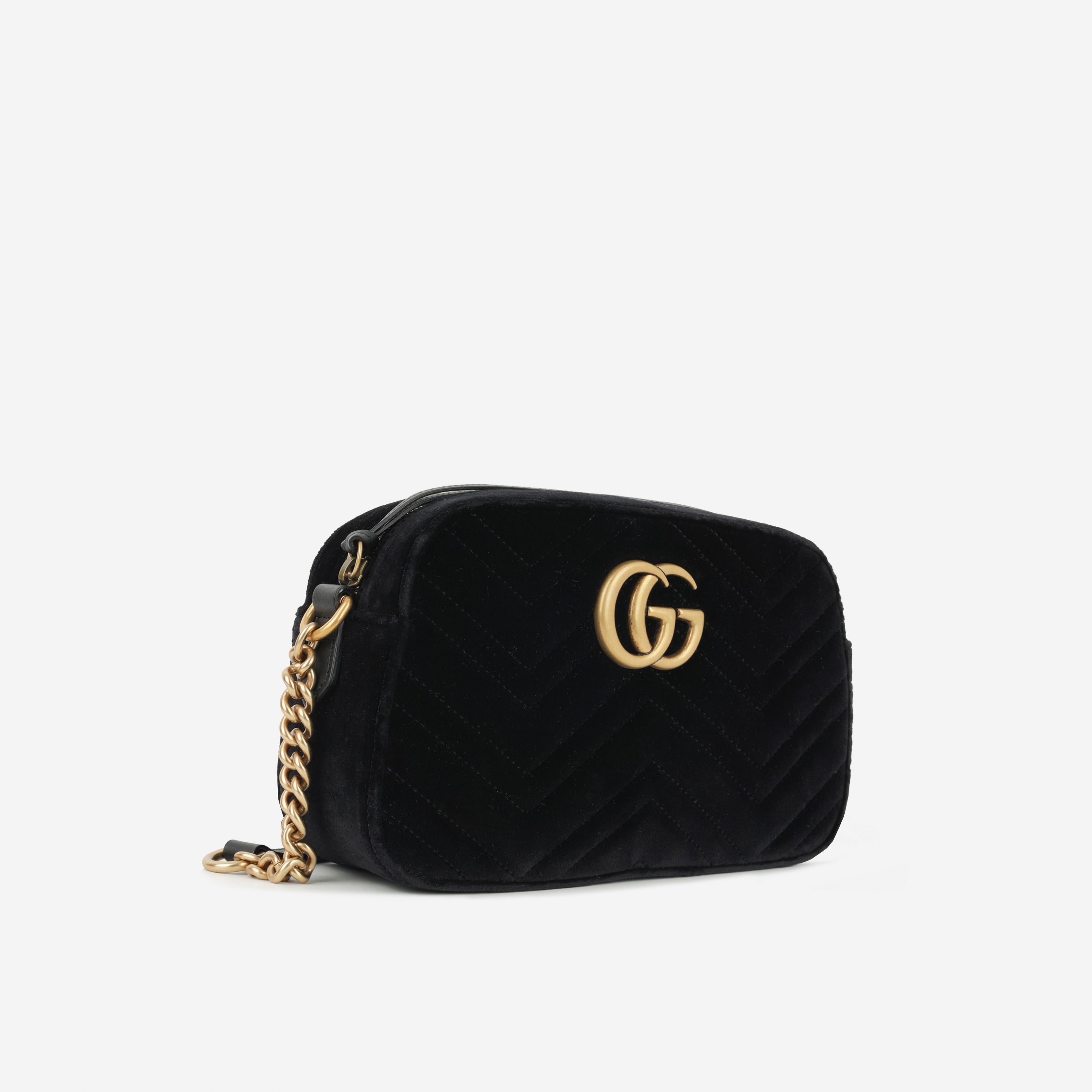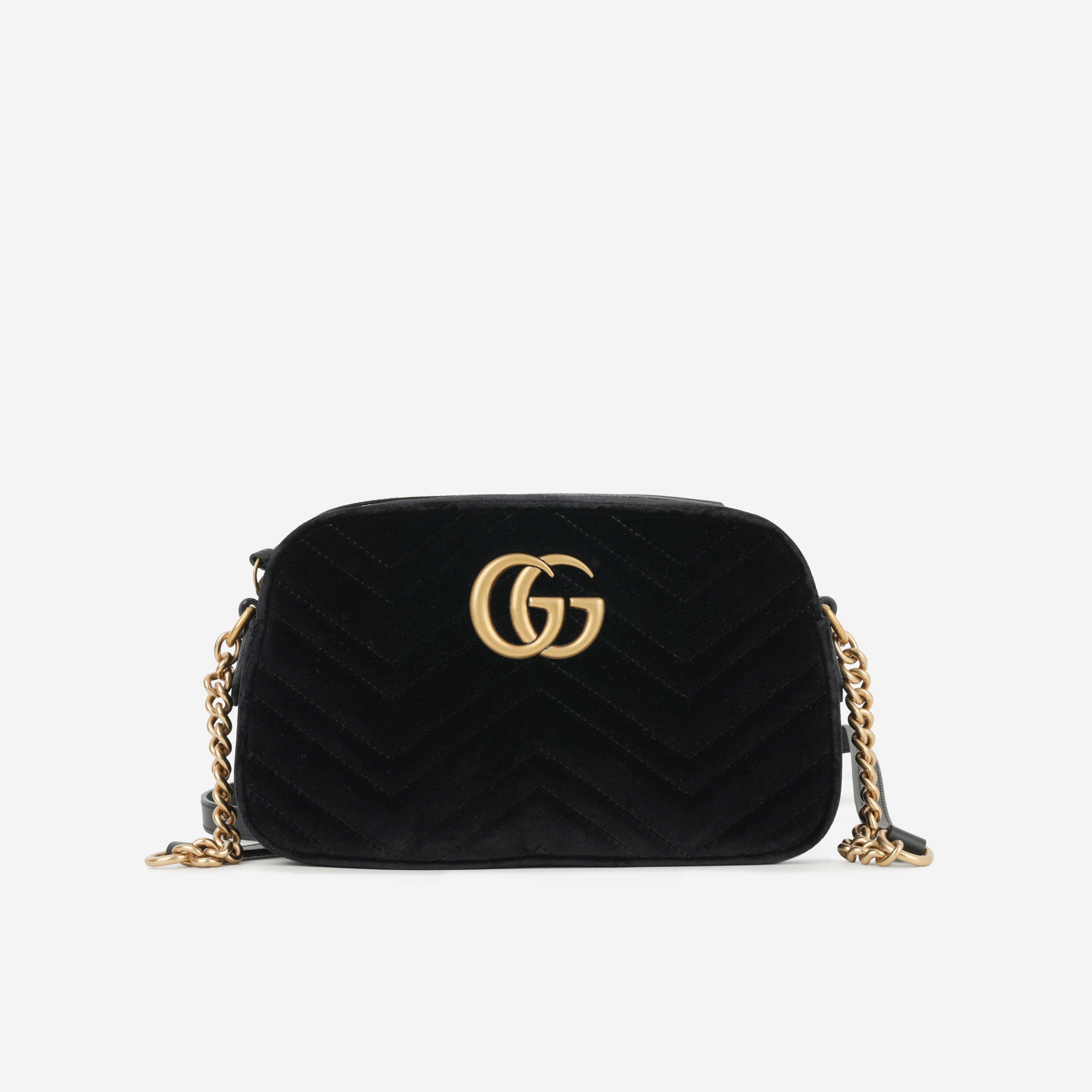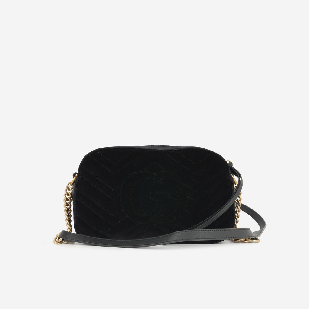 The Gucci Medium GG Marmont Shoulder Bag in black velvet is a striking blend of vintage-inspired design and modern sophistication. Crafted in plush black matelassé velvet, this bag is accented with the iconic double G gold-tone hardware, symbolising Gucci’s timeless heritage. Its elegant silhouette and soft texture make it a standout statement piece that transitions seamlessly from day to night.