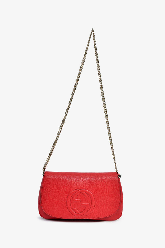 Gucci Red Grained Leather Soho Chained Shoulder Bag