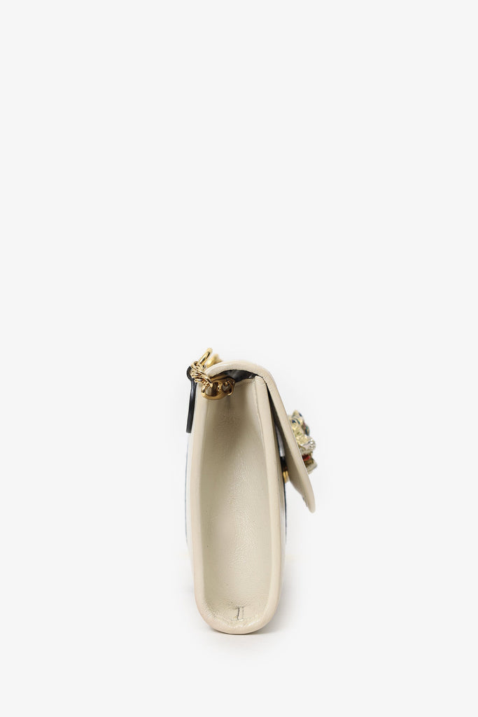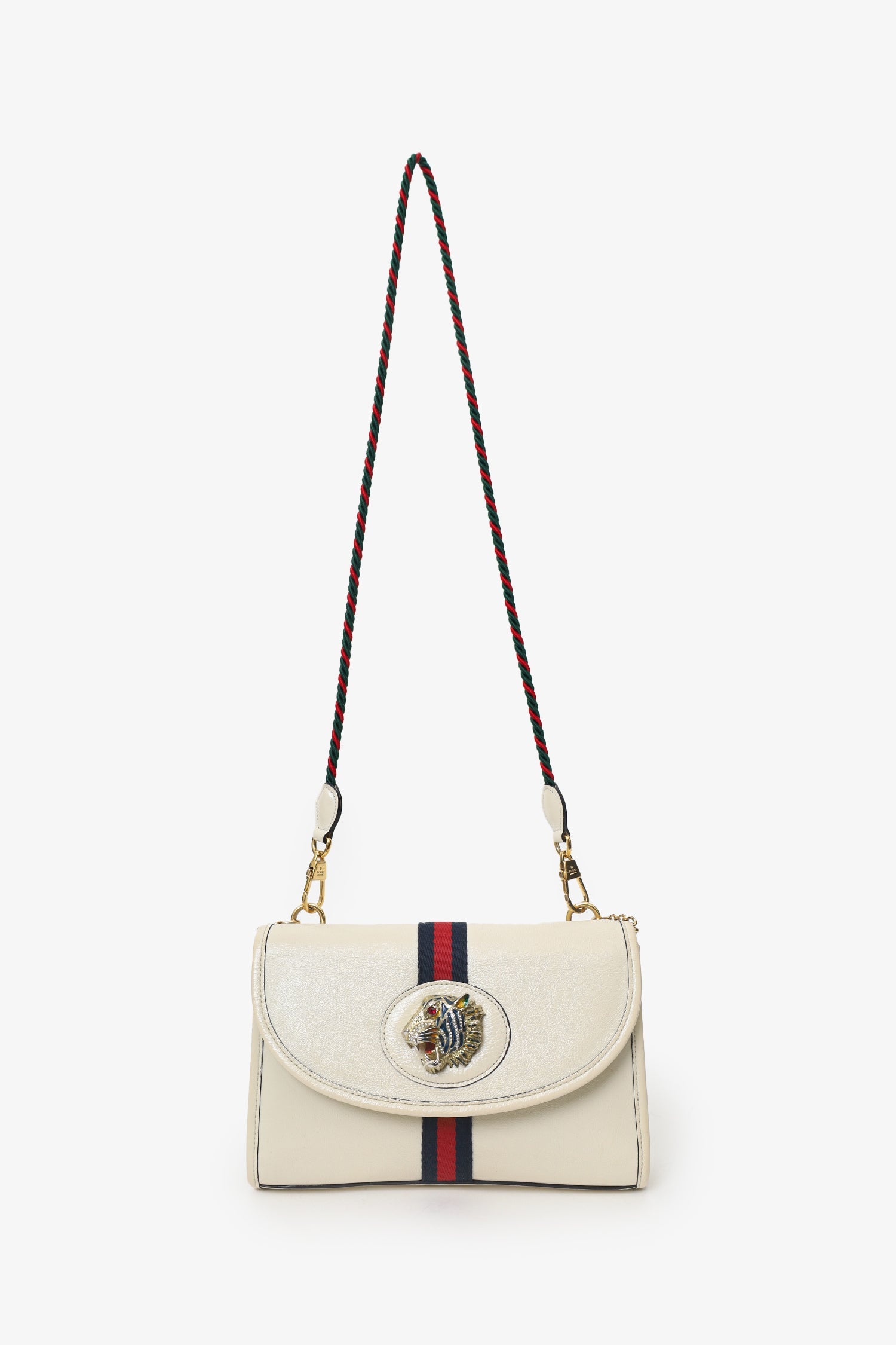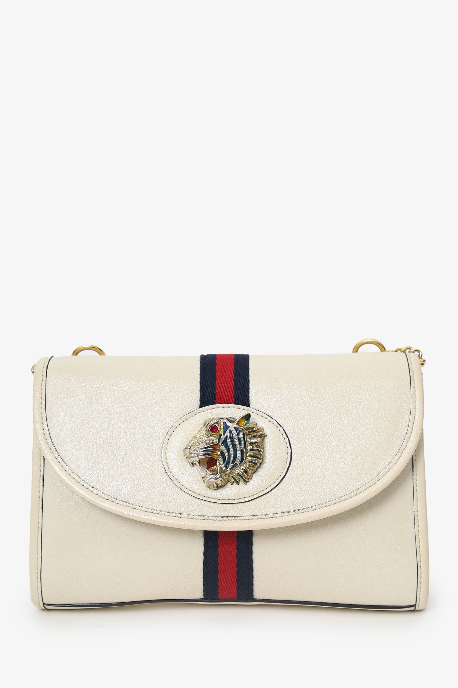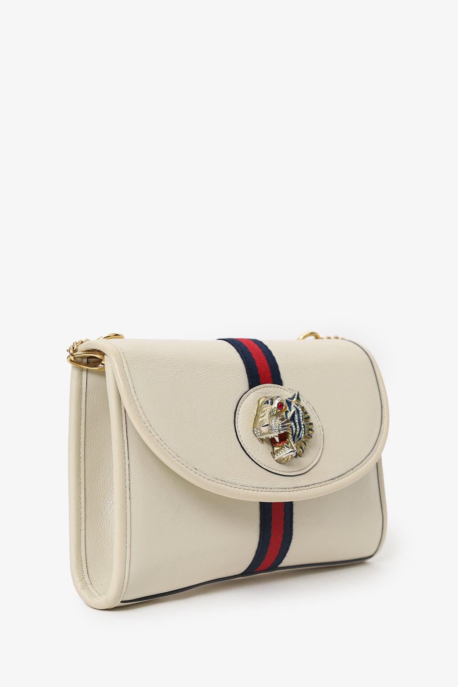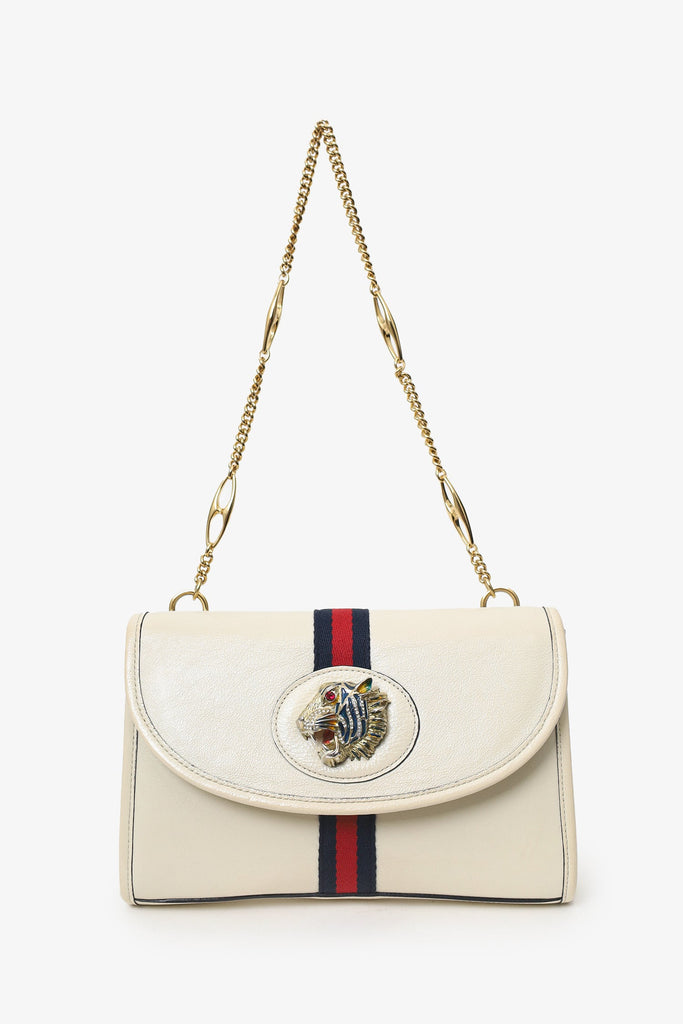 Gucci White Leather Small Sylvie Web Rajah Chain Bag With Extra Robe Strap