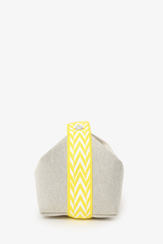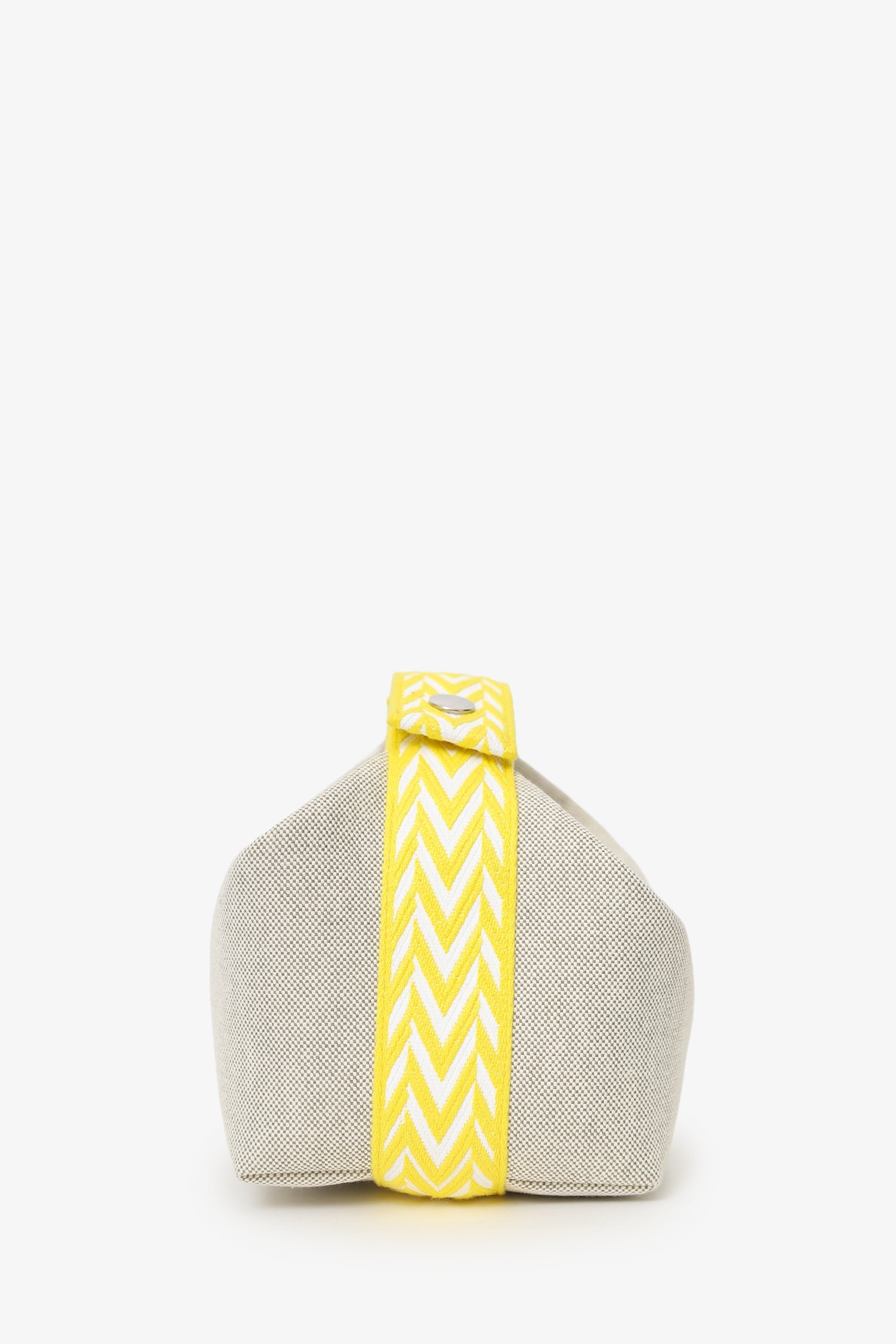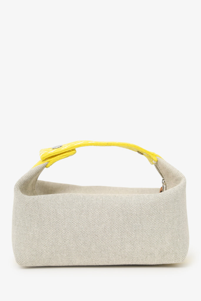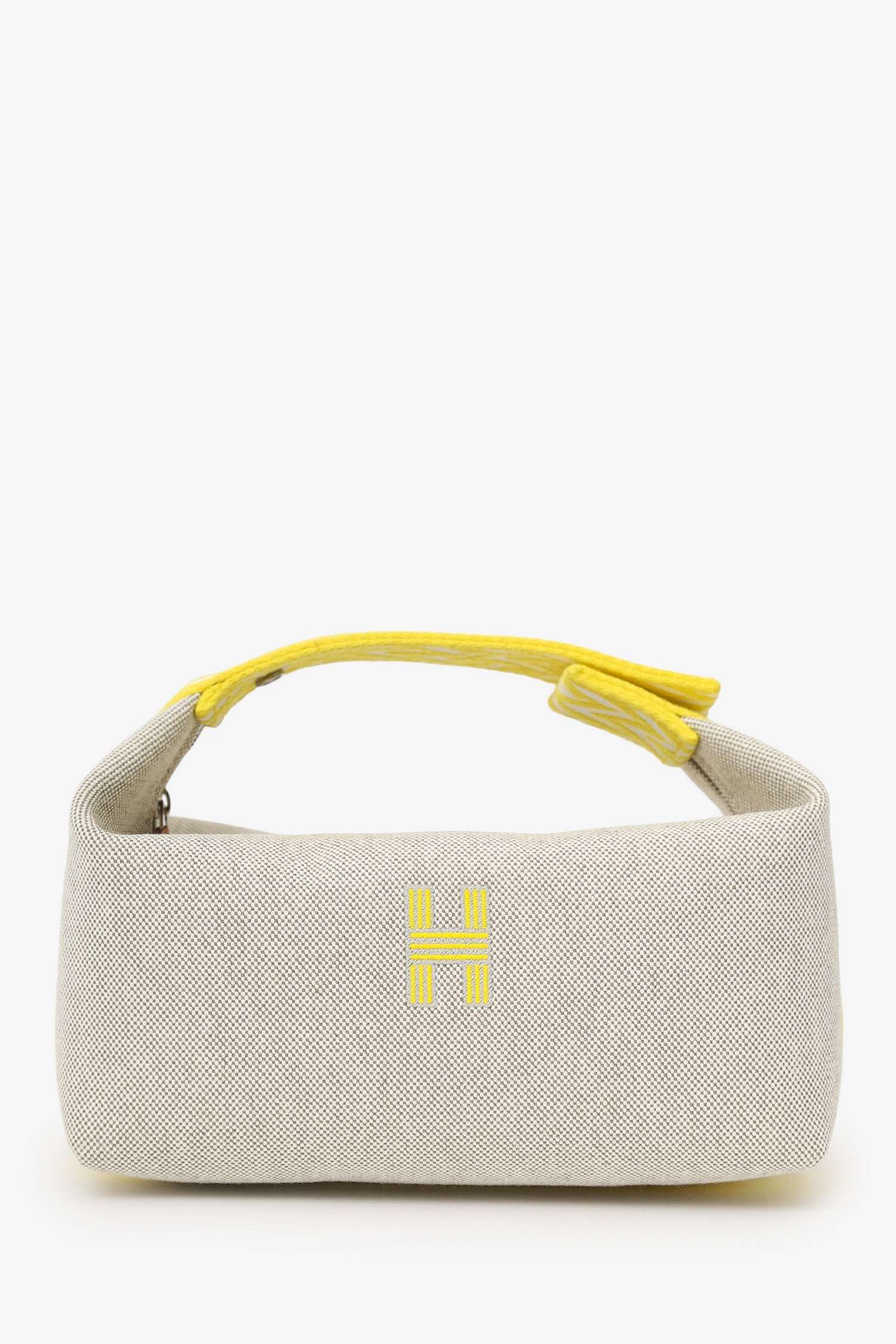Hermès Beige/Yellow Canvas Bride-A-Brac Small Case. Top zip closure. Top handle with snap button-up closure. Lined interior with 3 slip pockets. Silver-tone hardware. Tonal stitching.