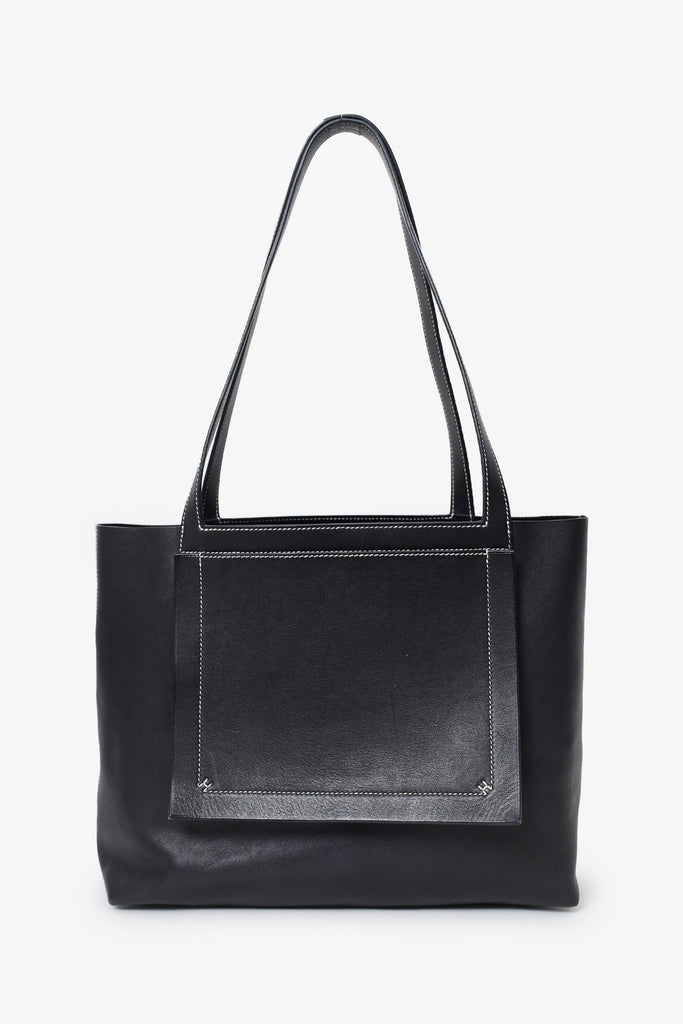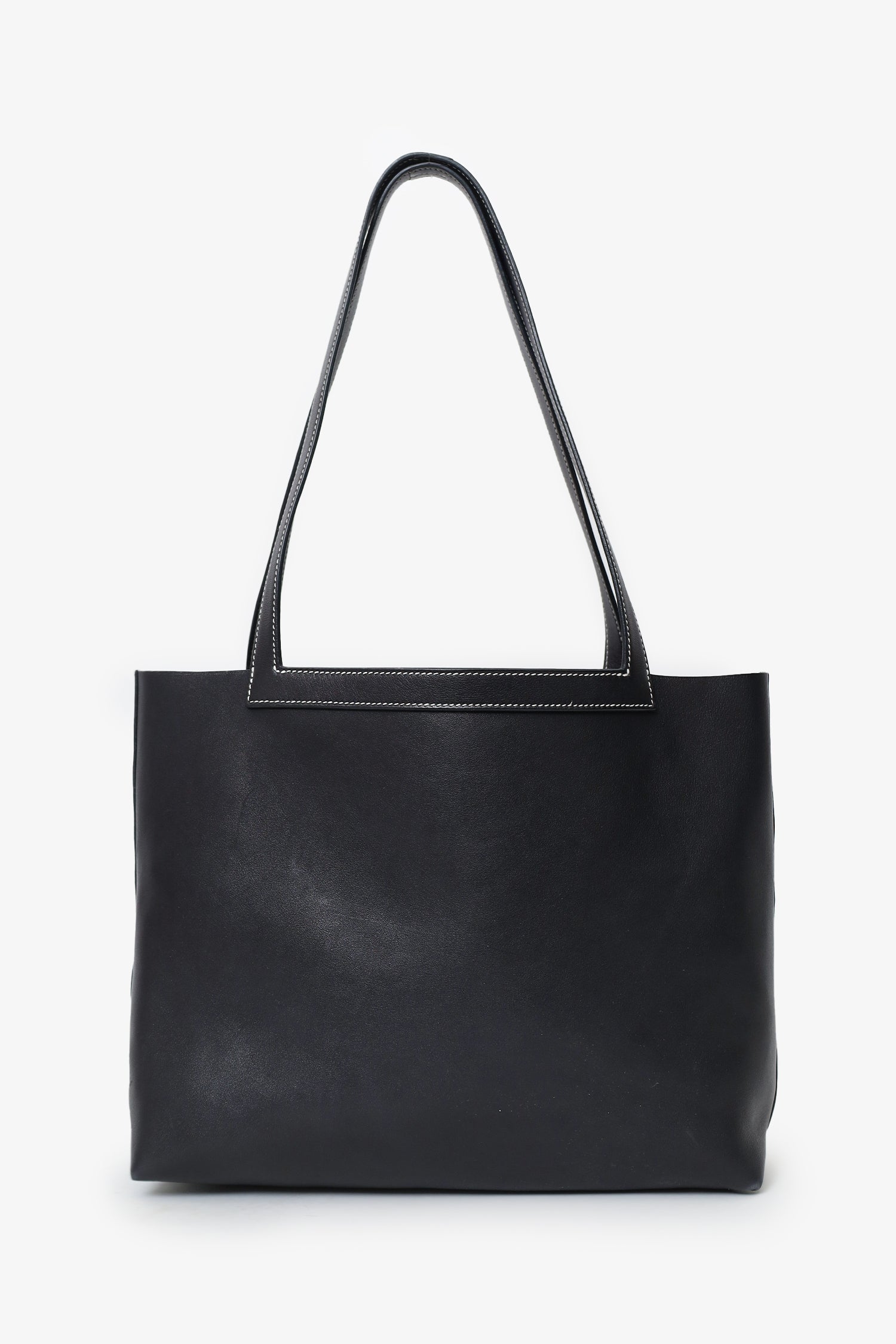 Hermès Black Swift Cabasellier 31 Tote. Open top. Twin straps. Single exterior slip pocket. Open suede-lined interior. Contrast stitching.