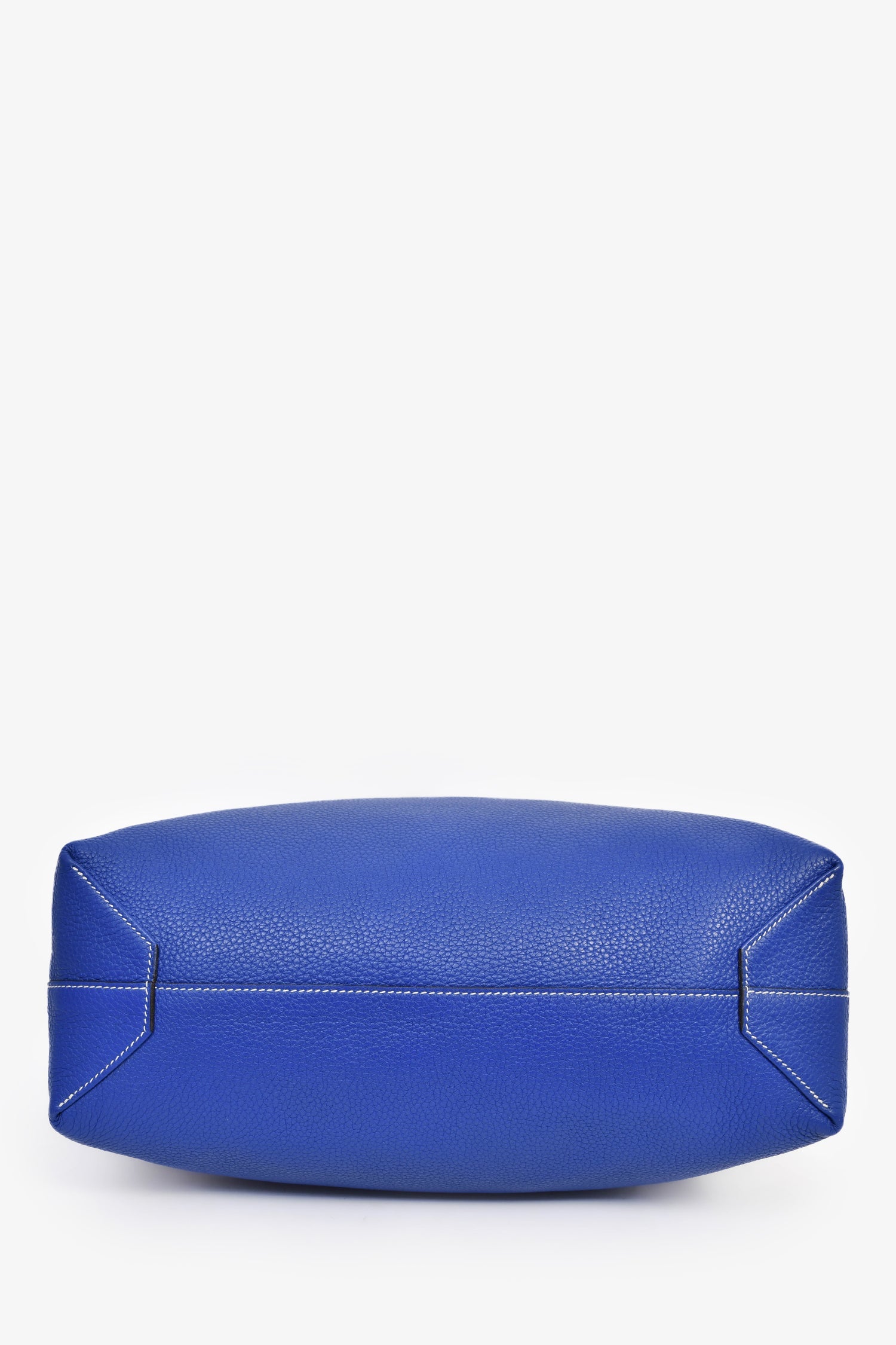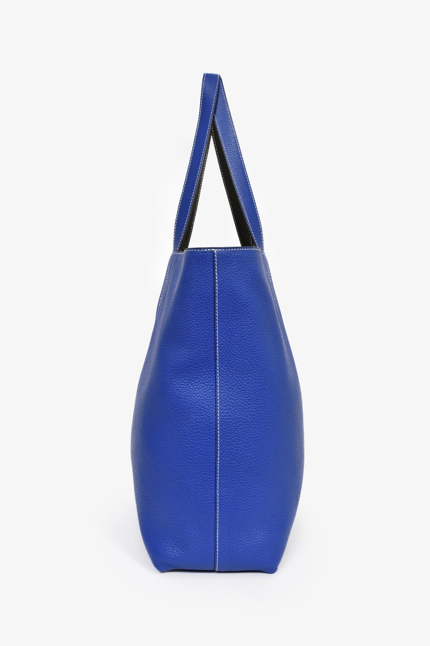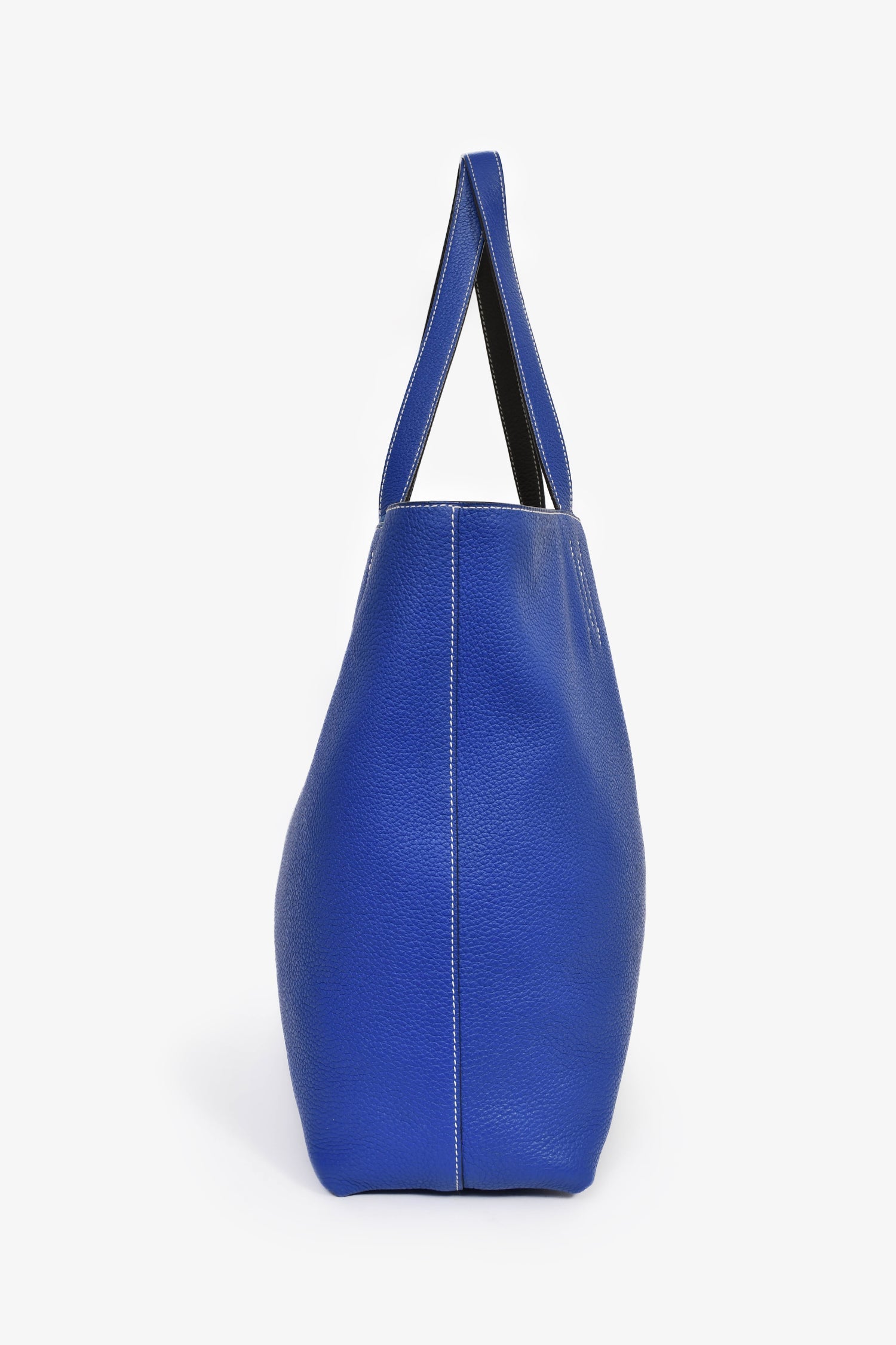 Hermès Blue/Grey Leather Reversible Tote. Open interior. Dual shoulder straps. Contrast stitching.