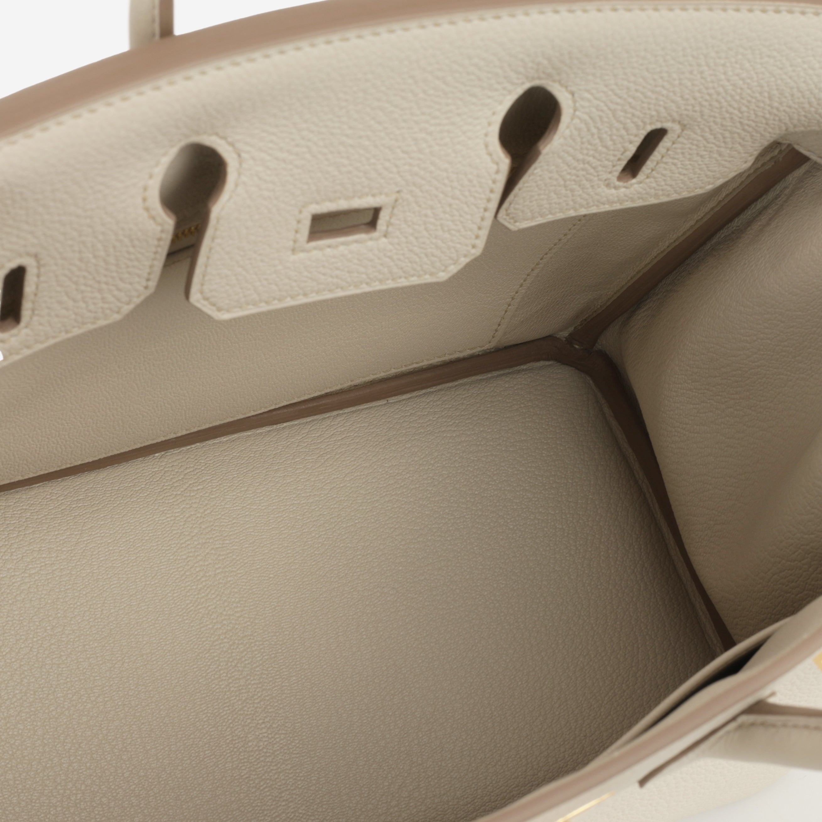 Beton is a sophisticated and neutral colour, pairing beautifully with gold hardware, making this Birkin 25 a highly sought-after piece for collectors and everyday use.