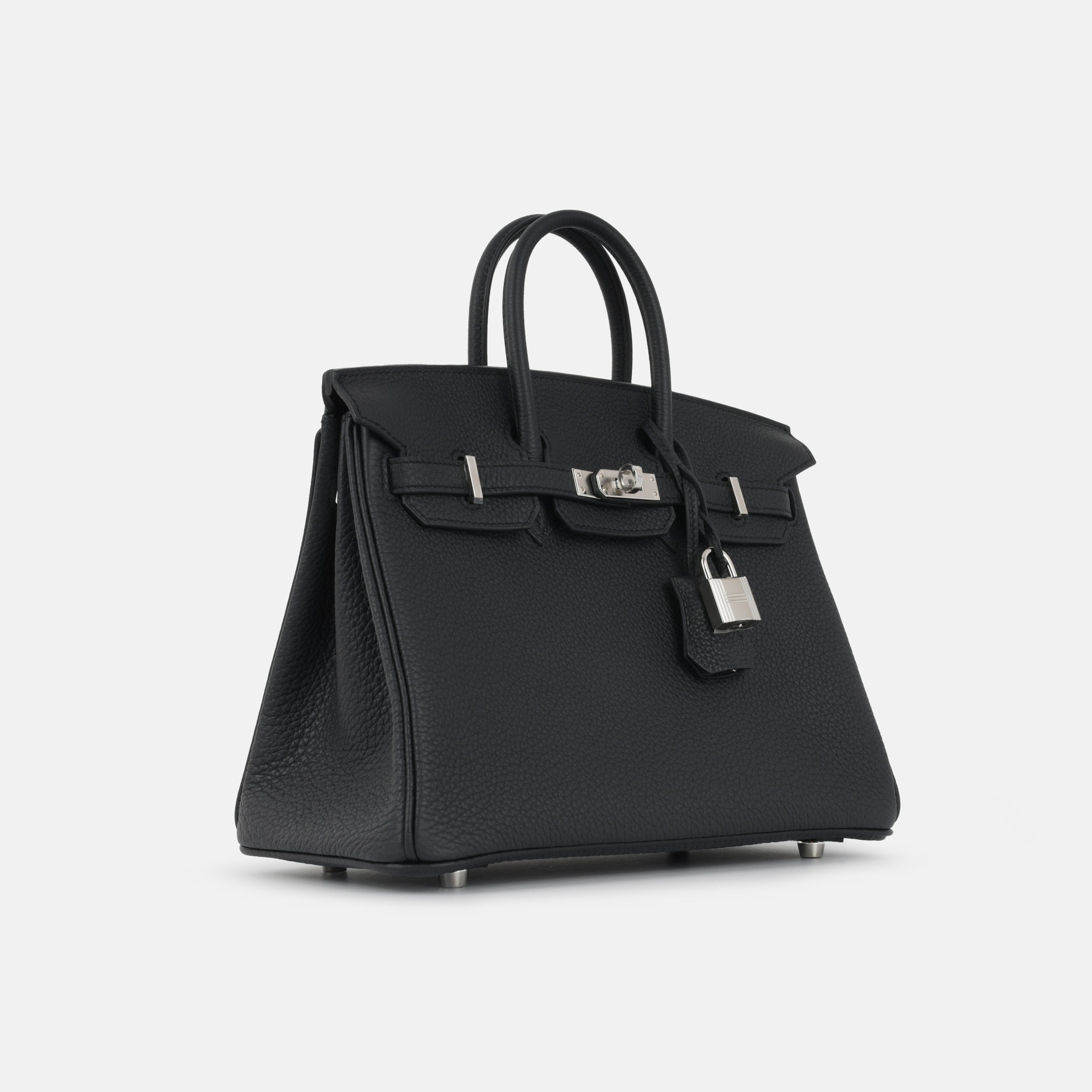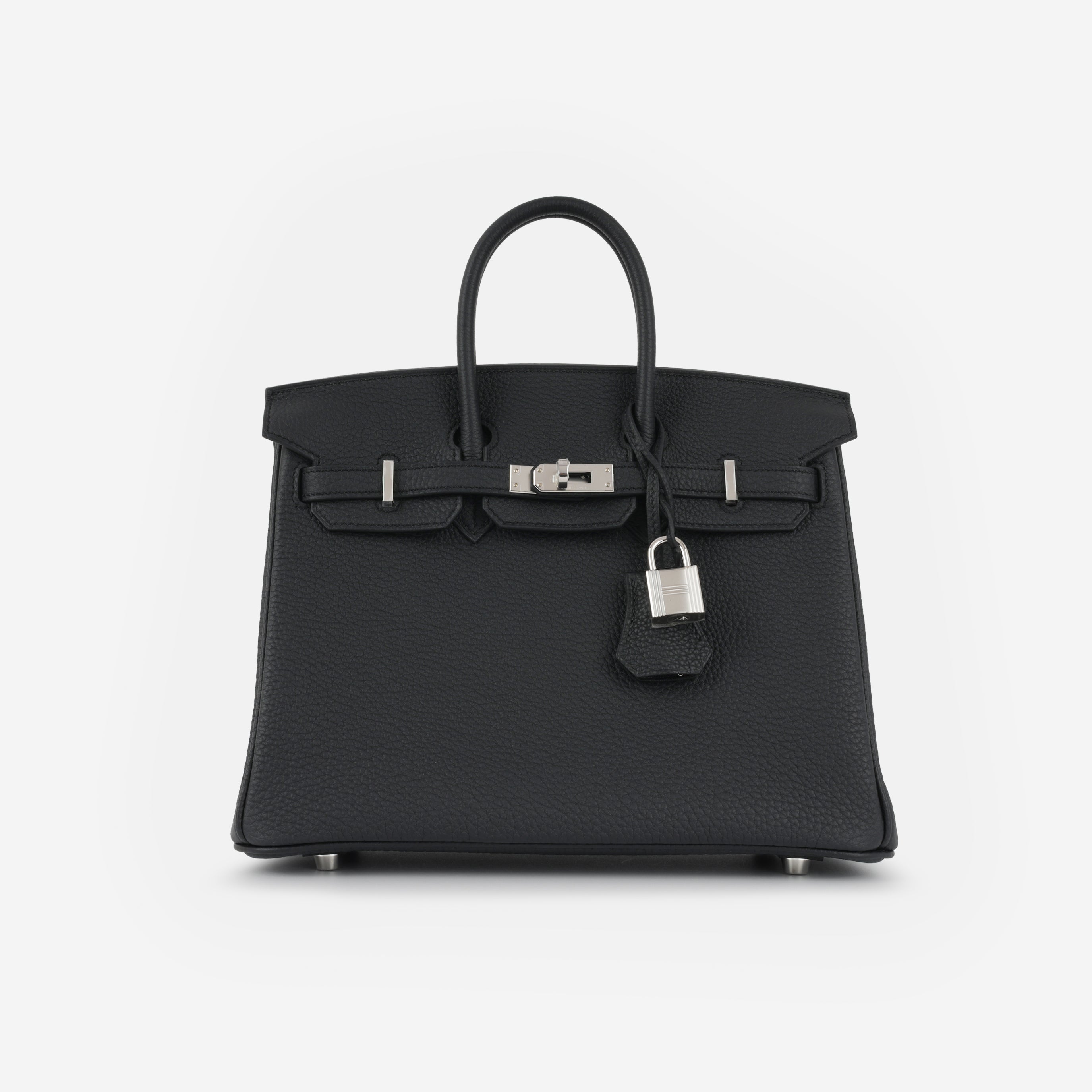 Crafted from durable, softly grained Togo leather, the Birkin 25 features a structured silhouette with timeless elegance. Its black tone and palladium hardware offer a versatile, sophisticated look suitable for everyday or special occasions.