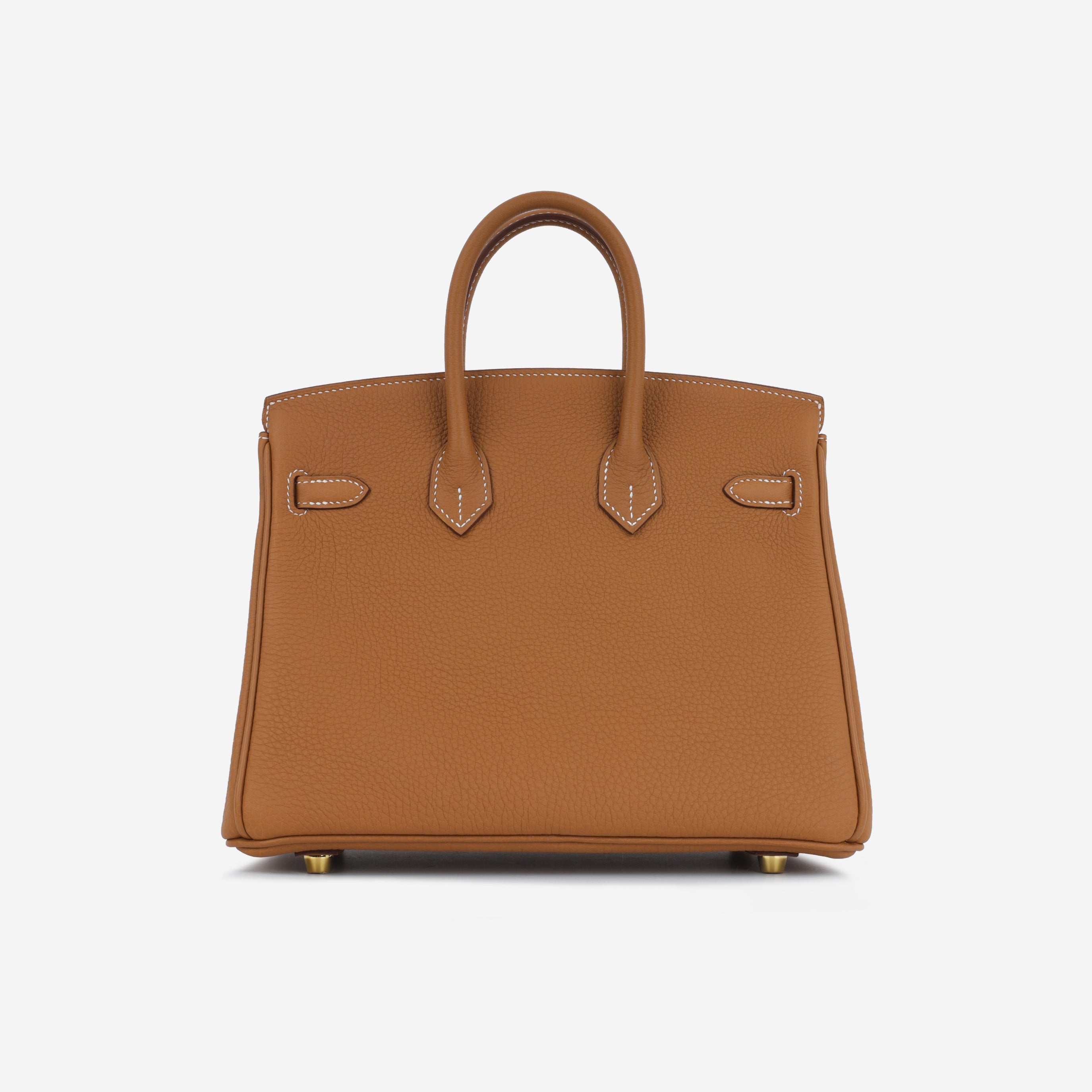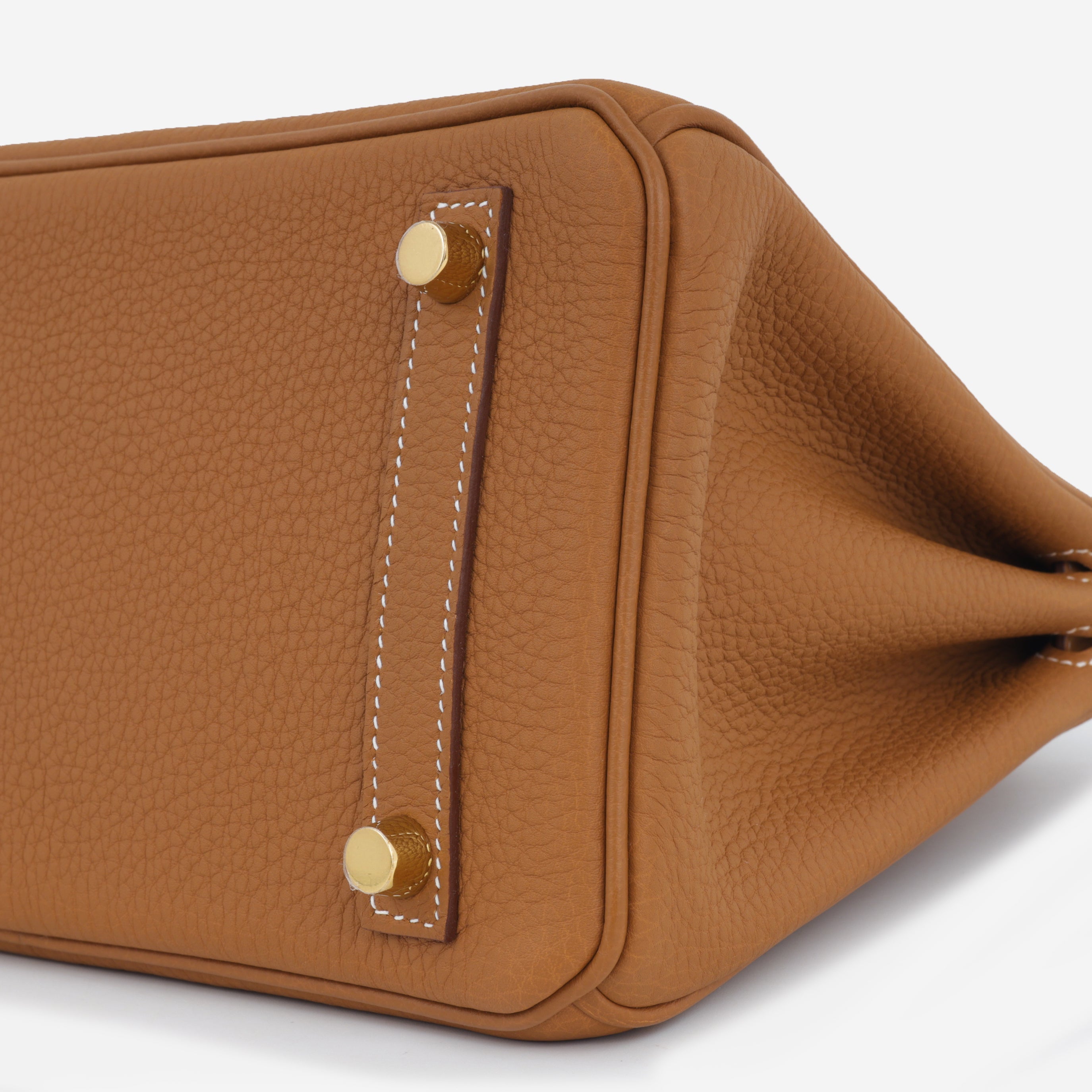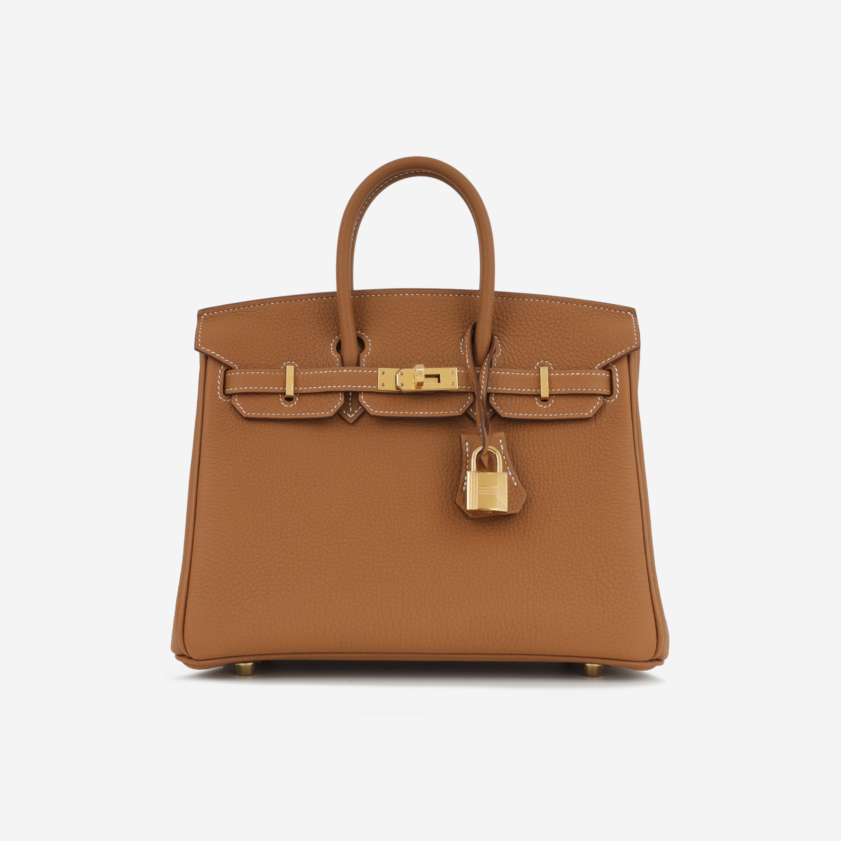 The Hermès Birkin 25 in Gold Togo leather with gold hardware features a structured silhouette in durable grained leather with the classic Gold colourway. G stamp (2026 production), presented in store fresh condition.