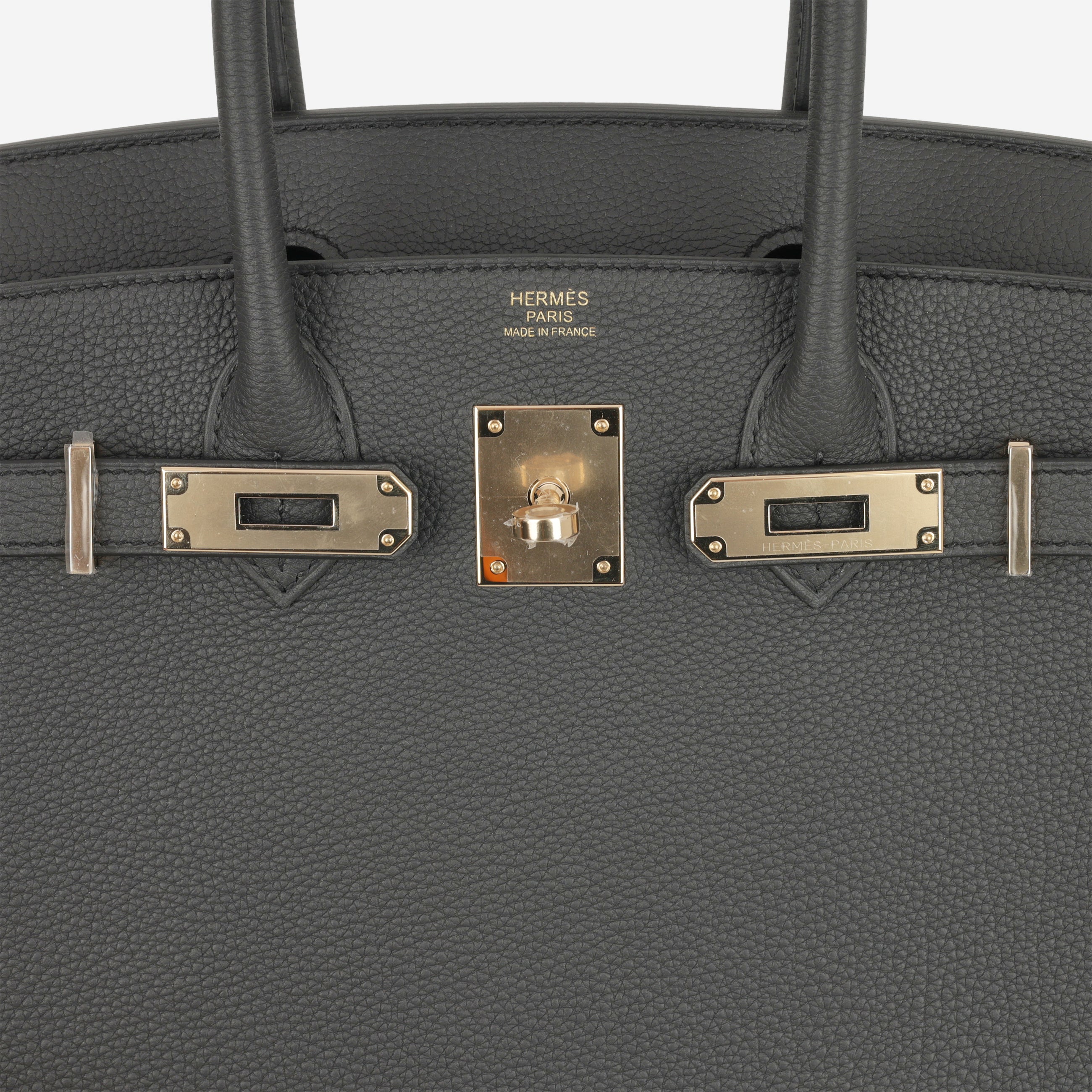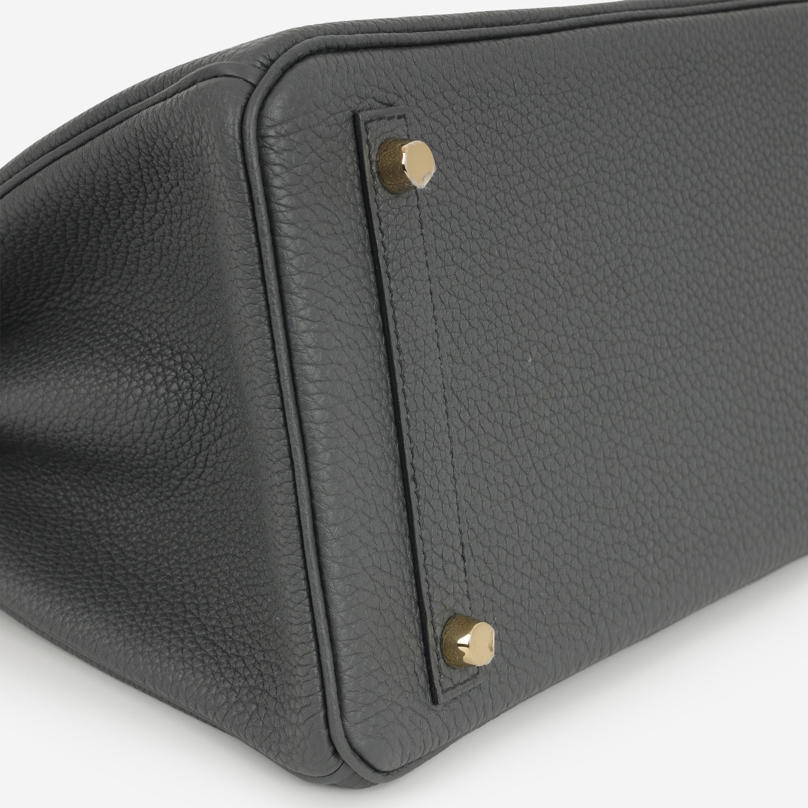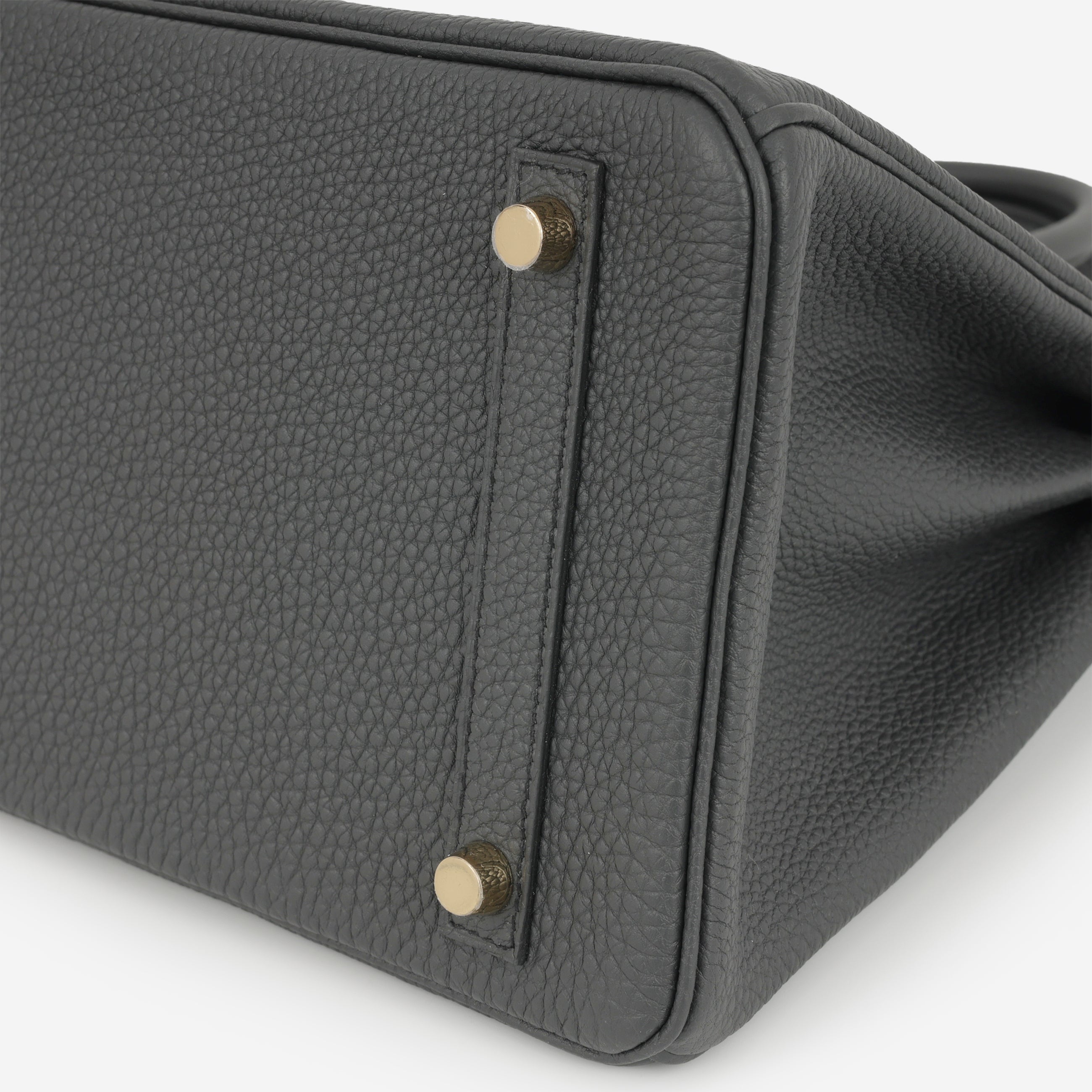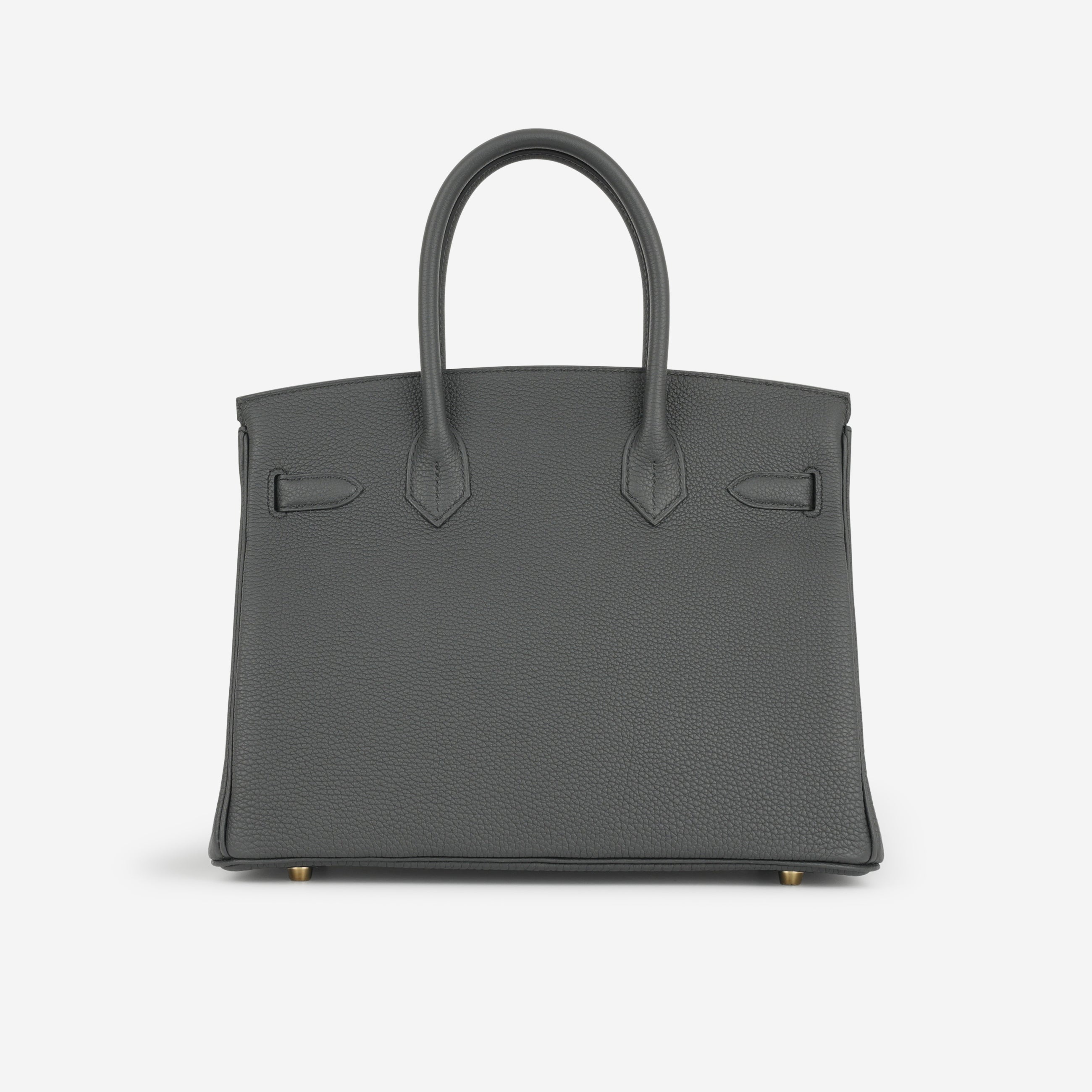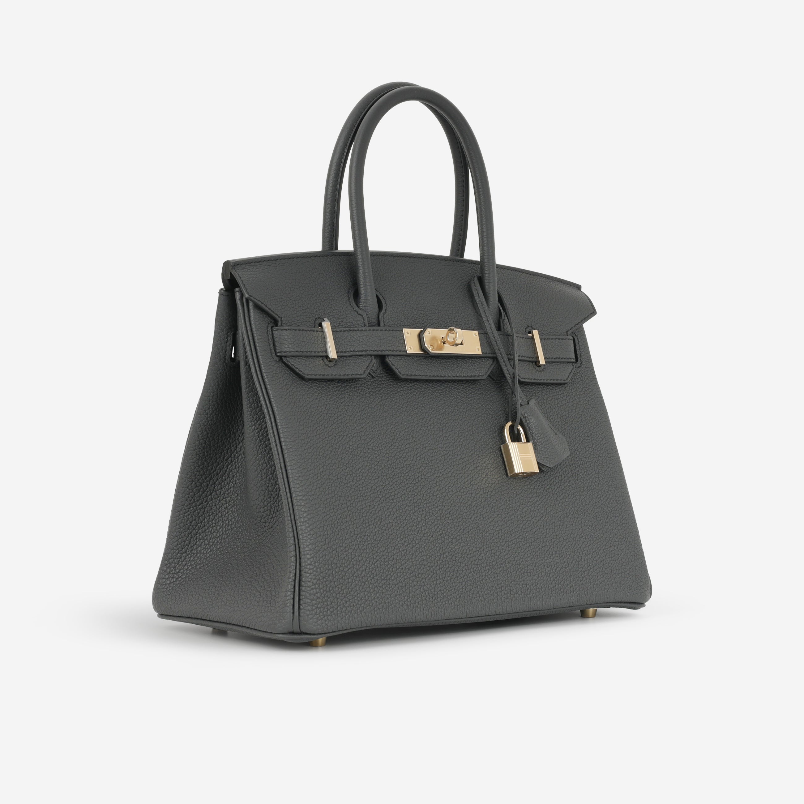 The Hermès Birkin 30 in Plomb Togo with Permabrass Hardware is a sophisticated statement of timeless luxury and impeccable craftsmanship. Handcrafted in France from durable Togo leather, this iconic Birkin features the rich Plomb shade - a deep, charcoal grey that offers a modern, versatile alternative to black.