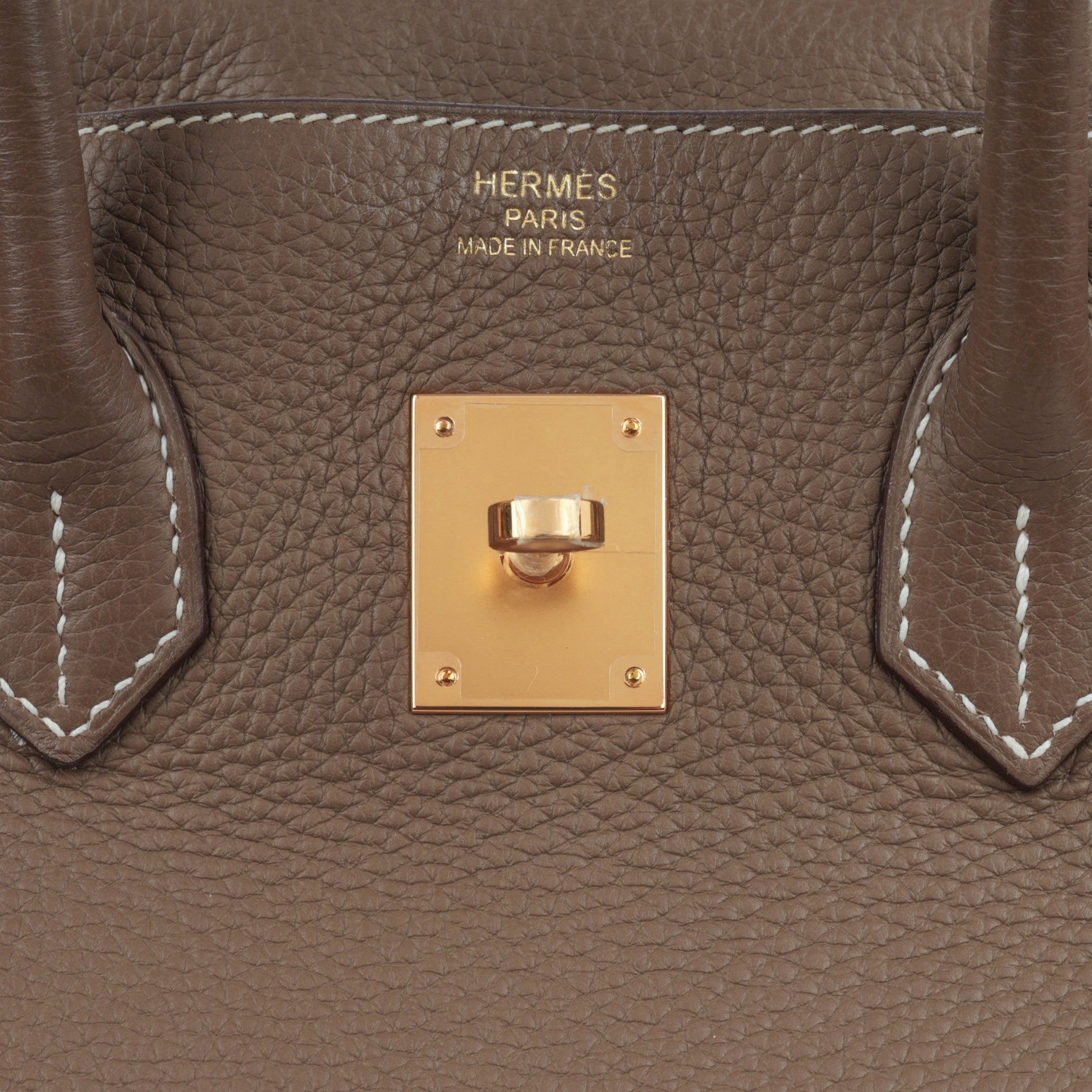 The Hermès Birkin 35 in Etoupe Clemence leather with Gold hardware is the ultimate expression of luxury and timeless elegance. Crafted from textured Togo leather with a subtle sheen, this iconic bag offers spacious functionality while showcasing Hermès’ legendary craftsmanship — a statement piece for collectors and fashion connoisseurs alike.