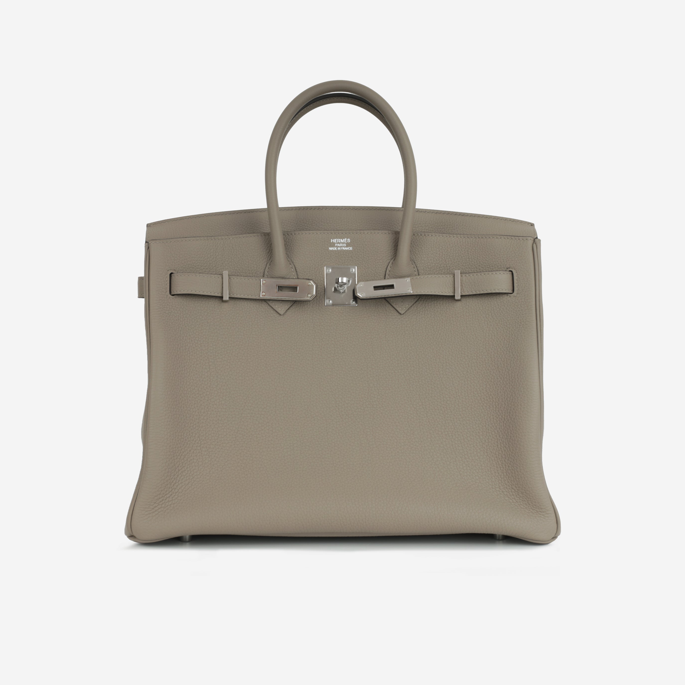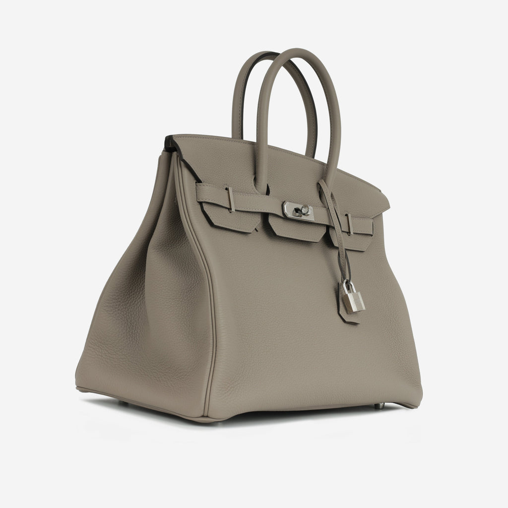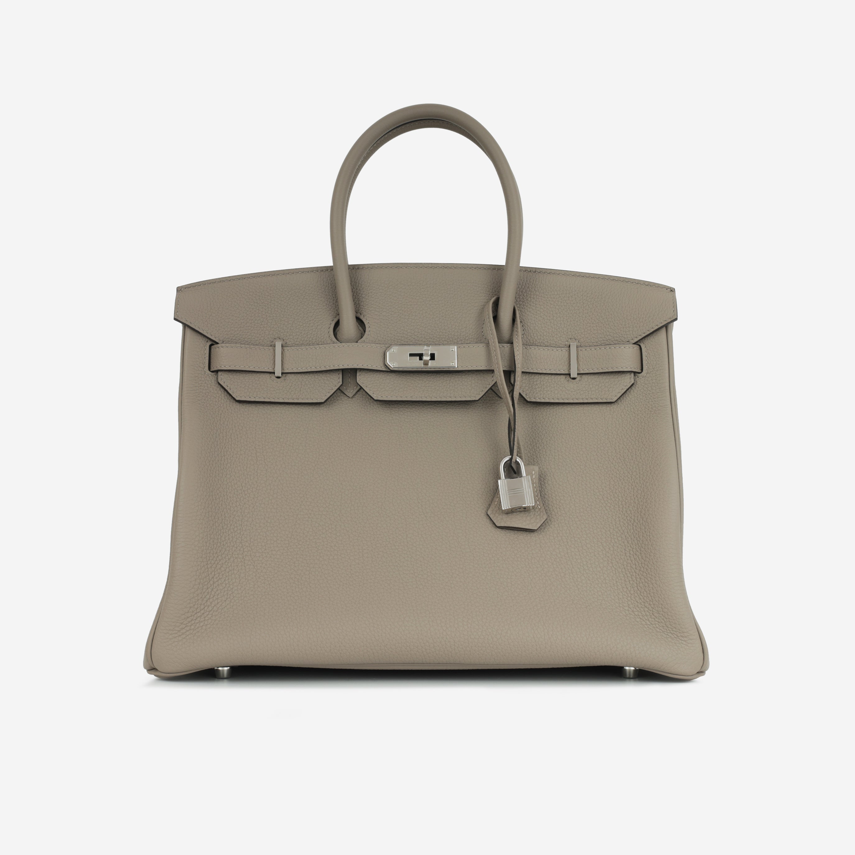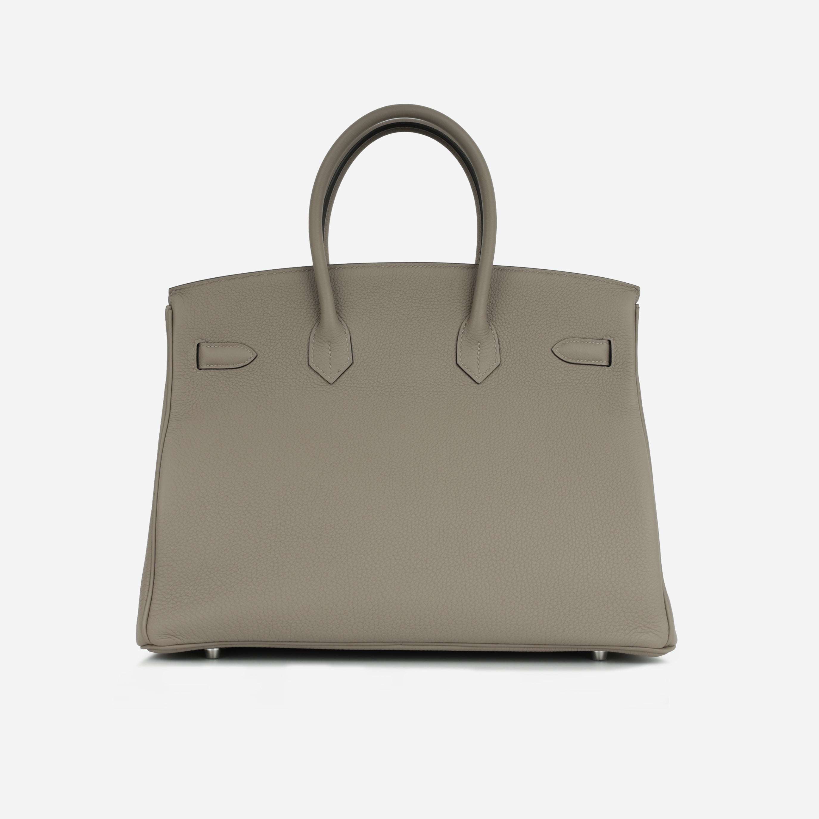 The Hermès Birkin 35 in Gris Asphalt Togo leather with palladium hardware is a highly sought-after and timeless classic.