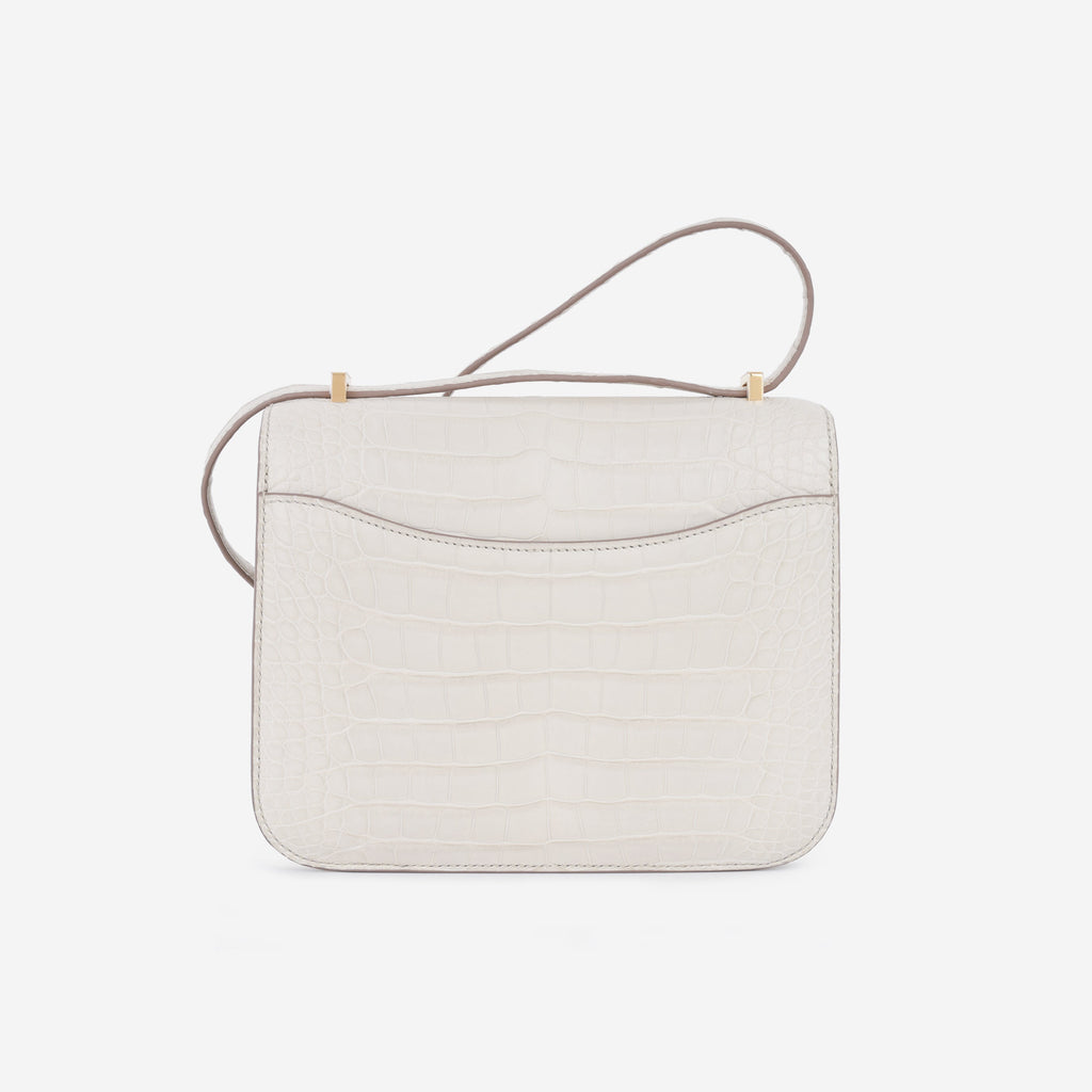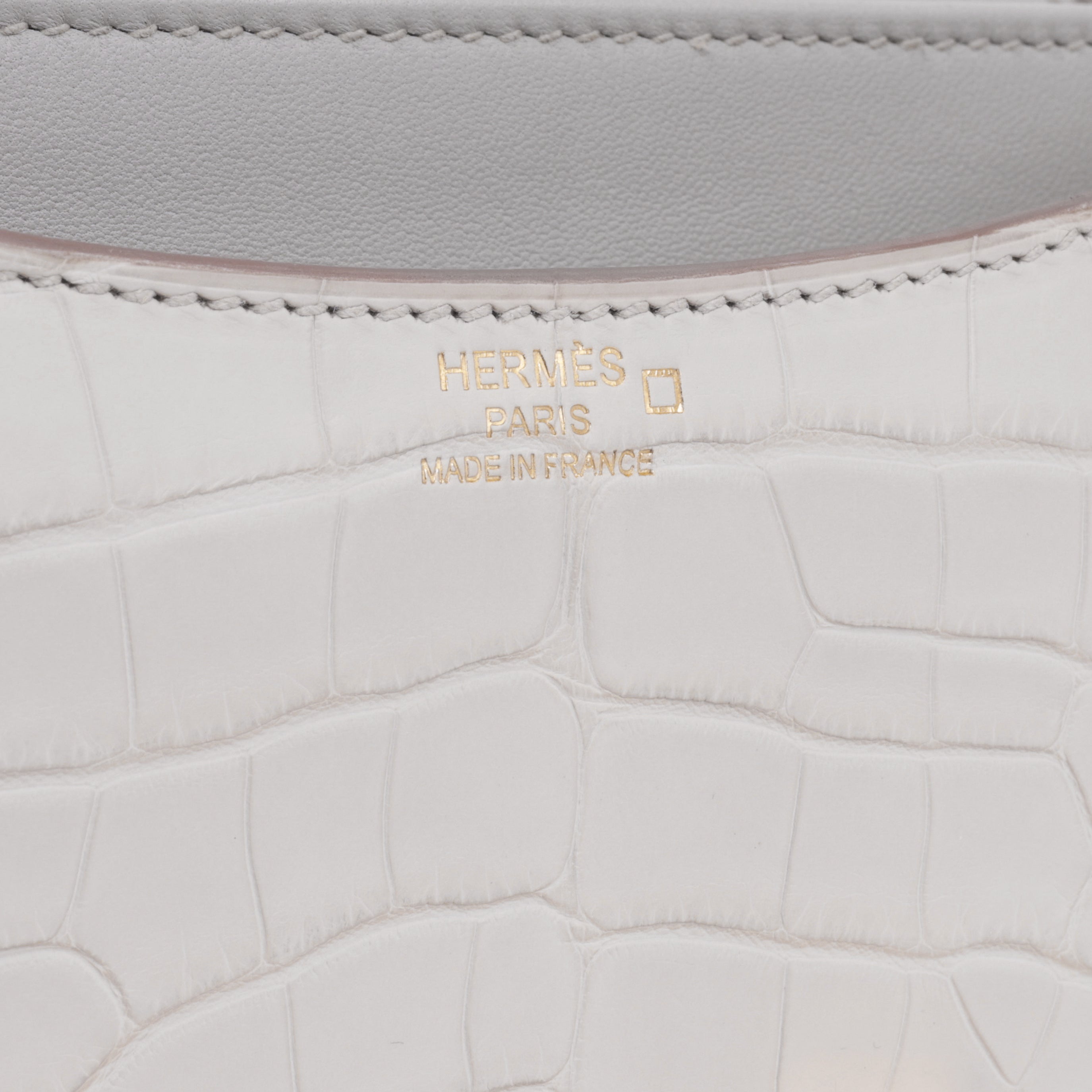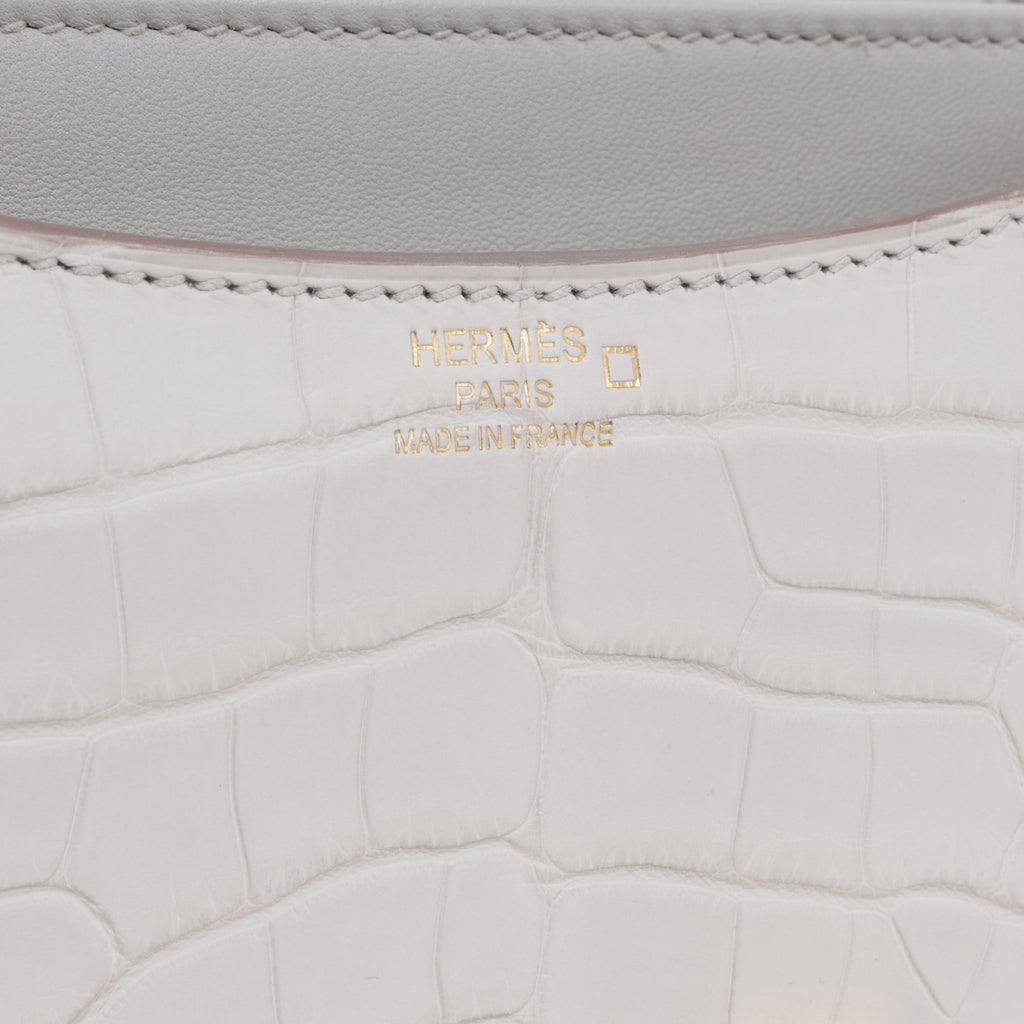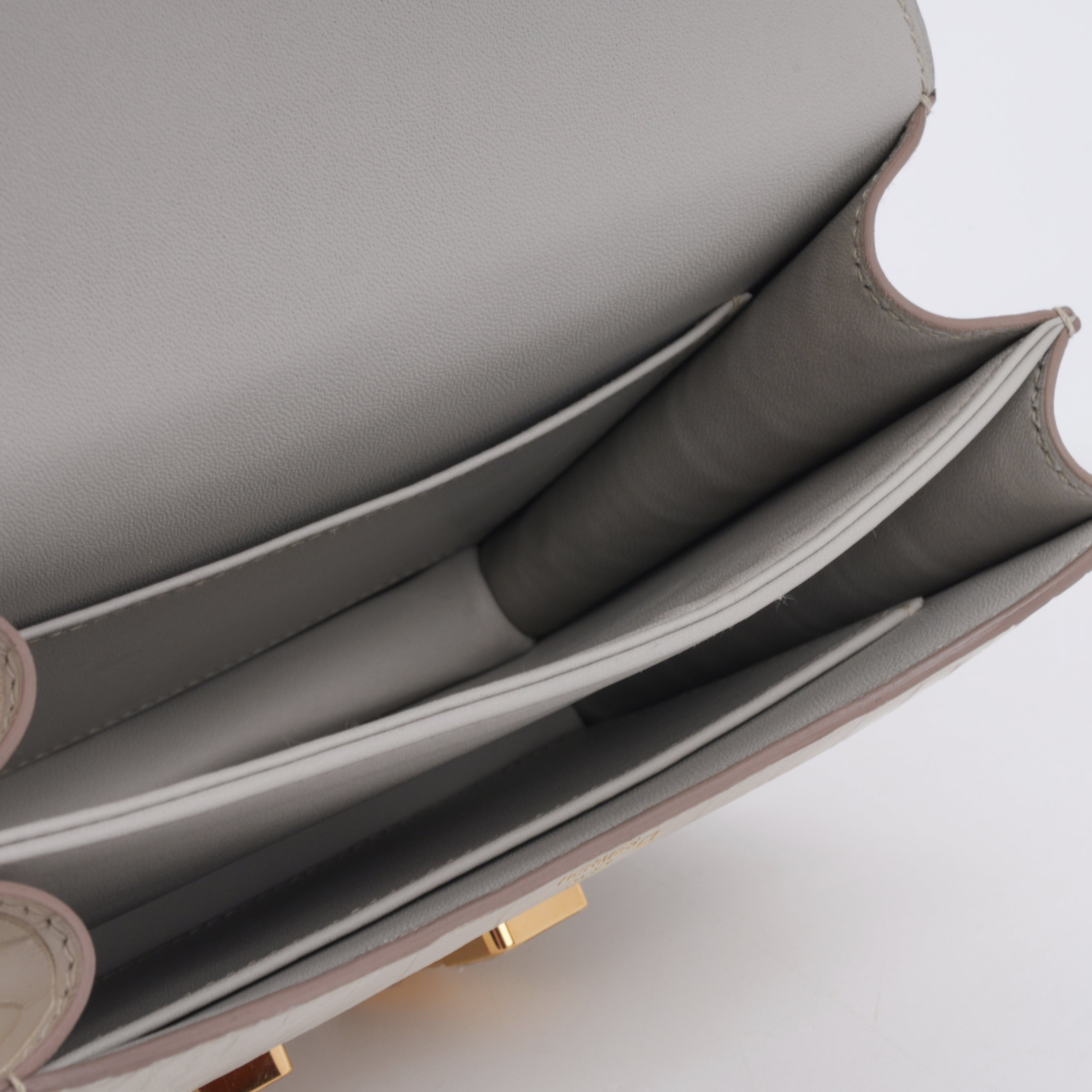 Exude pure sophistication with the Hermès Constance 18 in Beton alligator leather, adorned with gold hardware. A true symbol of understated luxury, this exquisite piece combines the allure of exotic craftsmanship with the timeless elegance that defines Hermès.