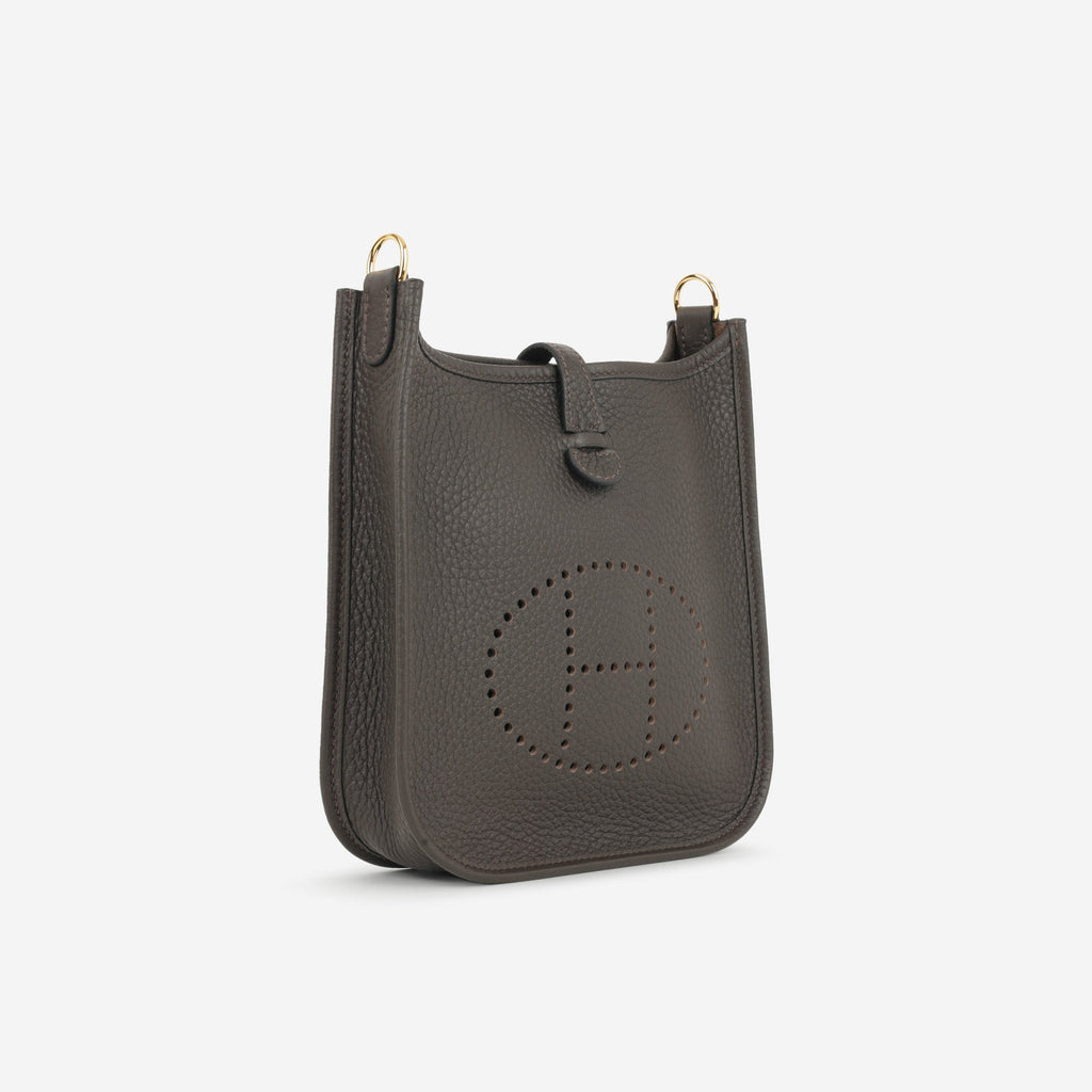 Hermès Evelyne TPM - Ebene Clemence / Gris Pale / Etoupe Strap | Gold Hardware