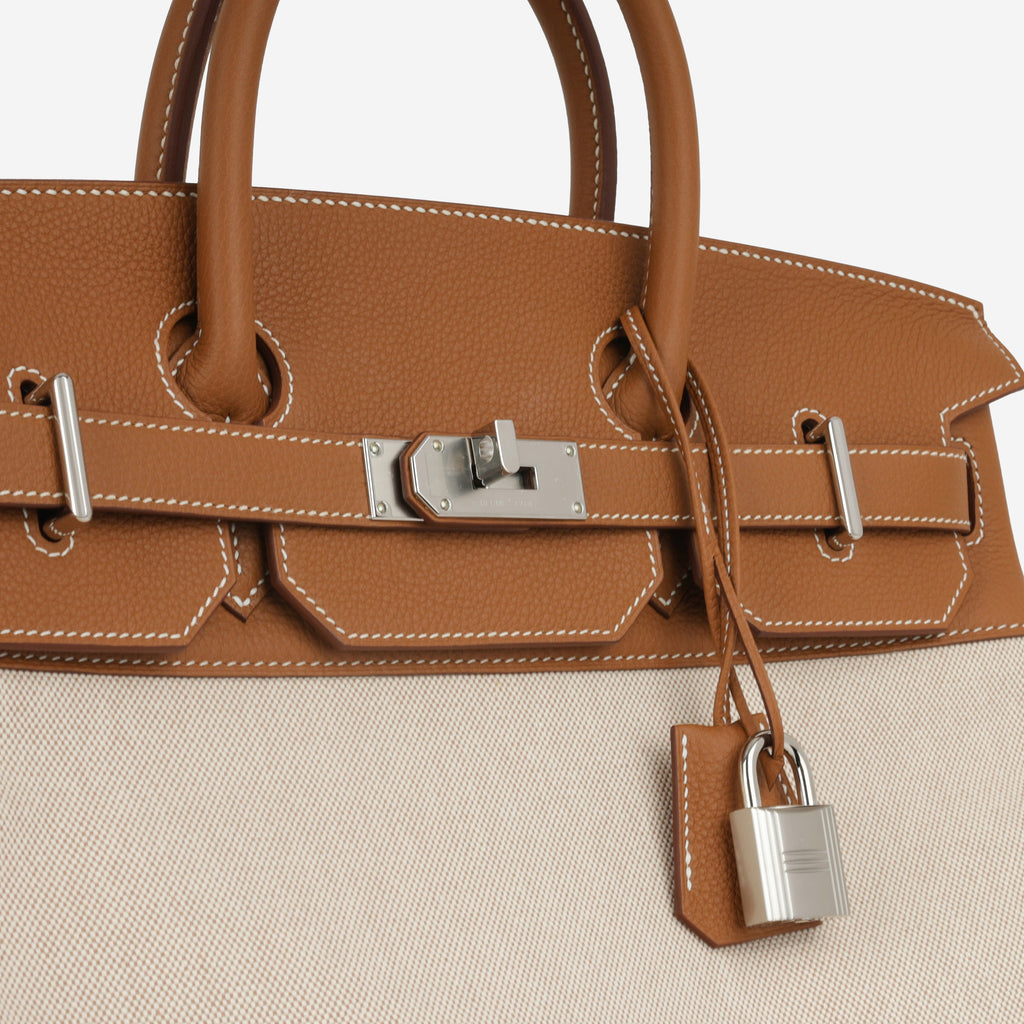 Hermès HAC 40 - Gold Togo / Ecru-Beige Toile | Palladium Hardware
