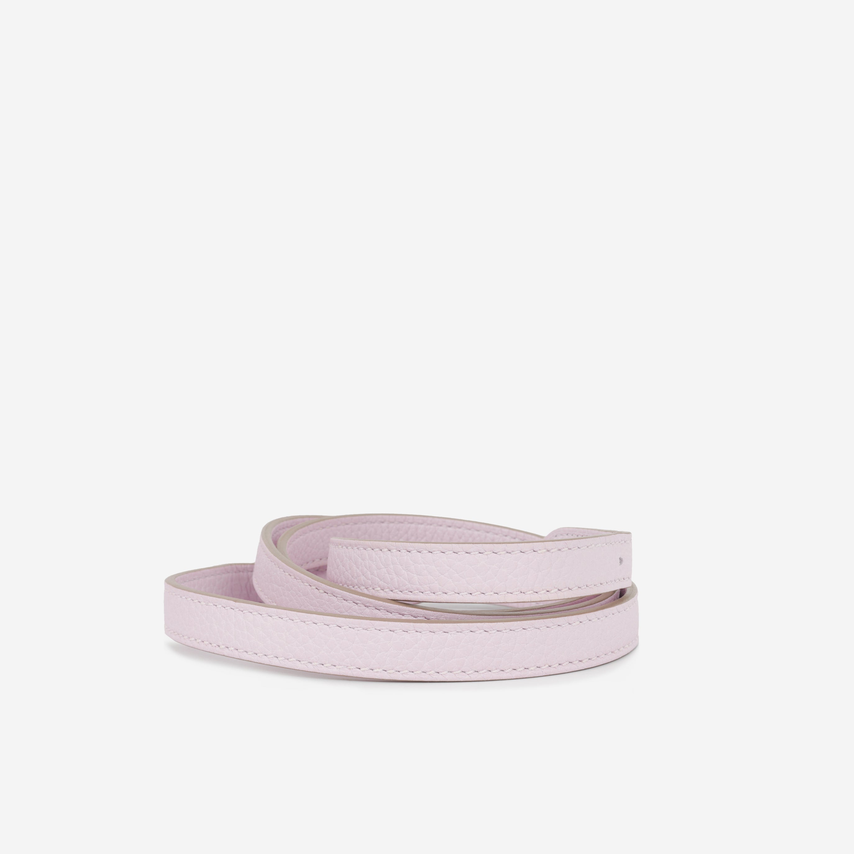 The Hermès Halzan 22 is a versatile and understatedly chic design, celebrated for its ability to be styled in multiple ways. This 2023 edition is beautifully crafted in Mauve Pale Clemence leather, paired with a contrasting Gold Swift leather inside the lining, and finished with sleek palladium hardware for a modern, polished touch.