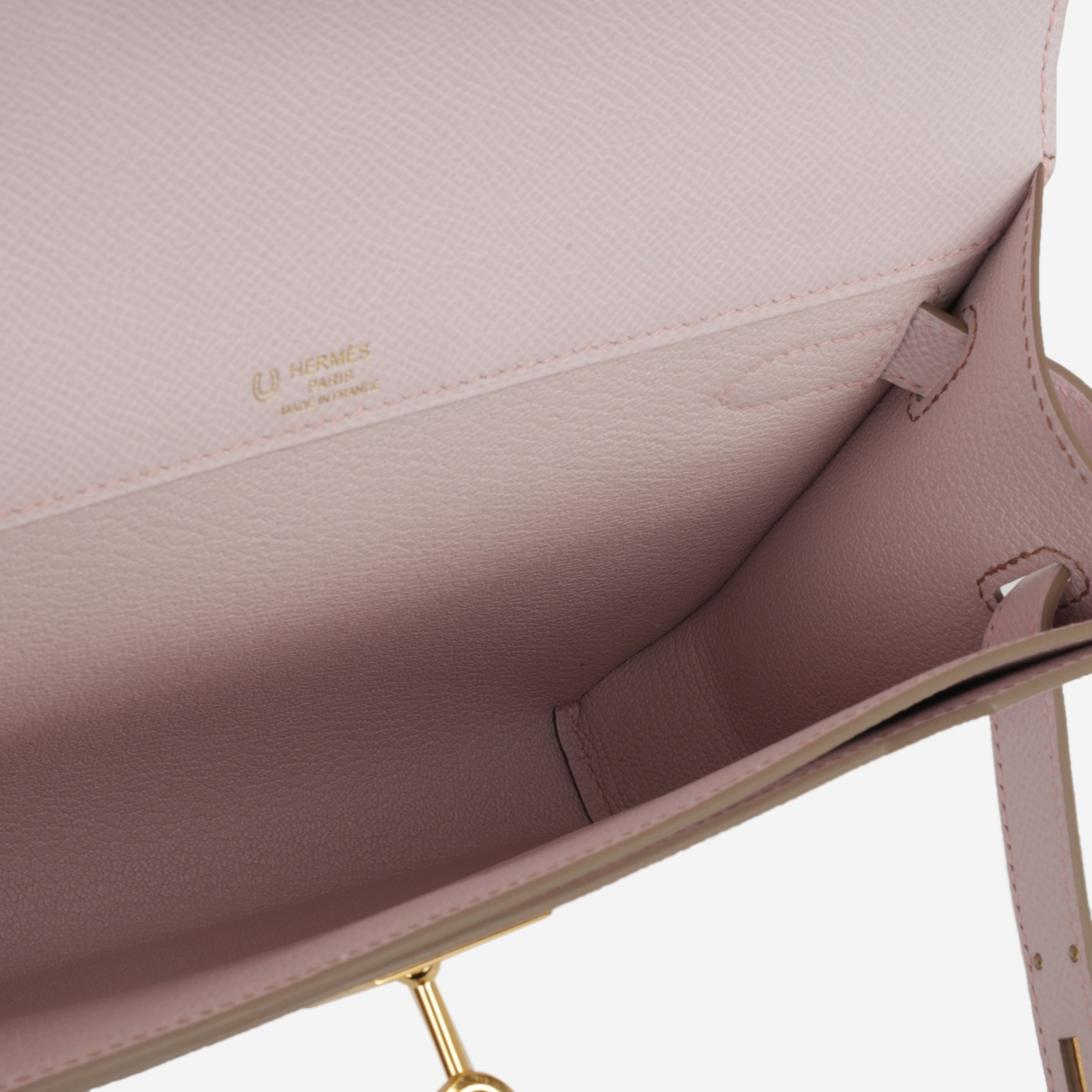 The Hermès HSS Kelly Dépêches 25 in Mauve Pale Epsom with Rose Sakura stitching and Palladium hardware is an exceptionally rare and elegant colour combination. Stamped W (2025 receipt), this piece is highly collectible and ideal for enthusiasts seeking a distinctive Hermès style.
