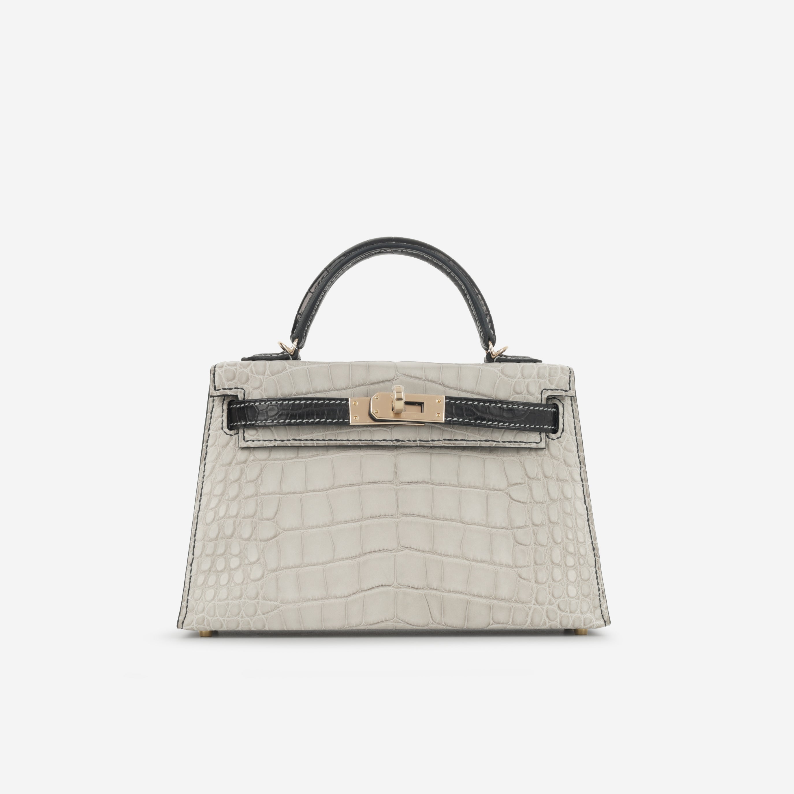 Hermès HSS Mini Kelly - Gris Perle / Black Matte Alligator | Permabrass Hardware