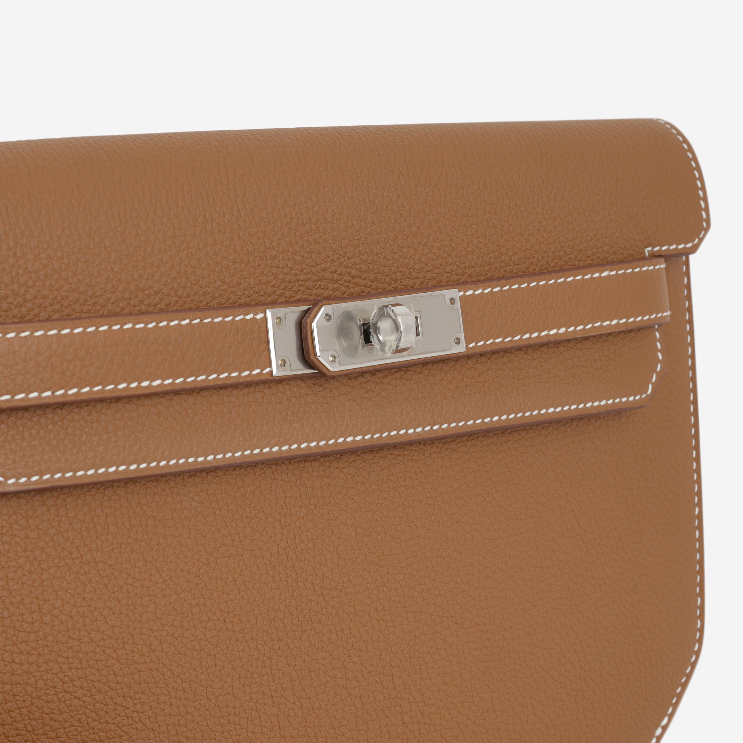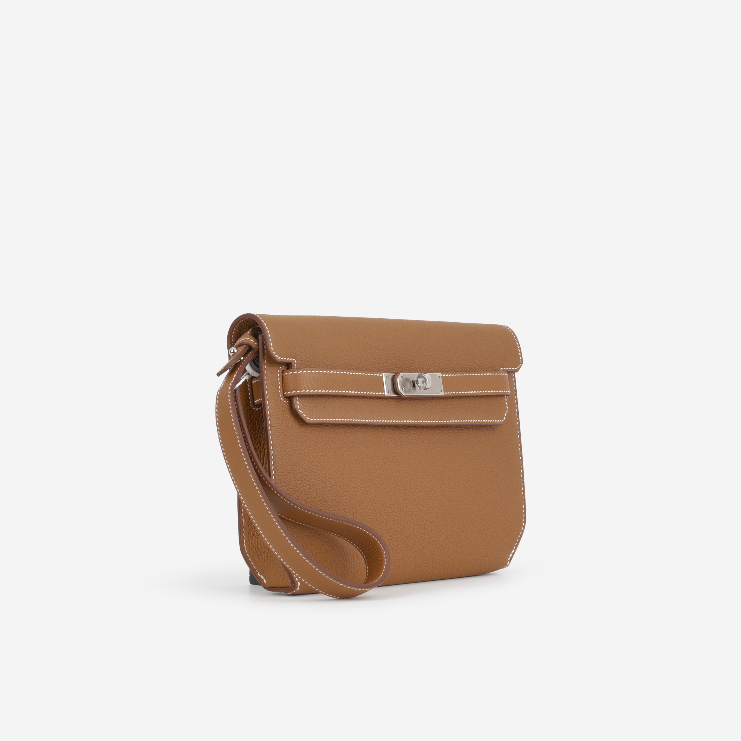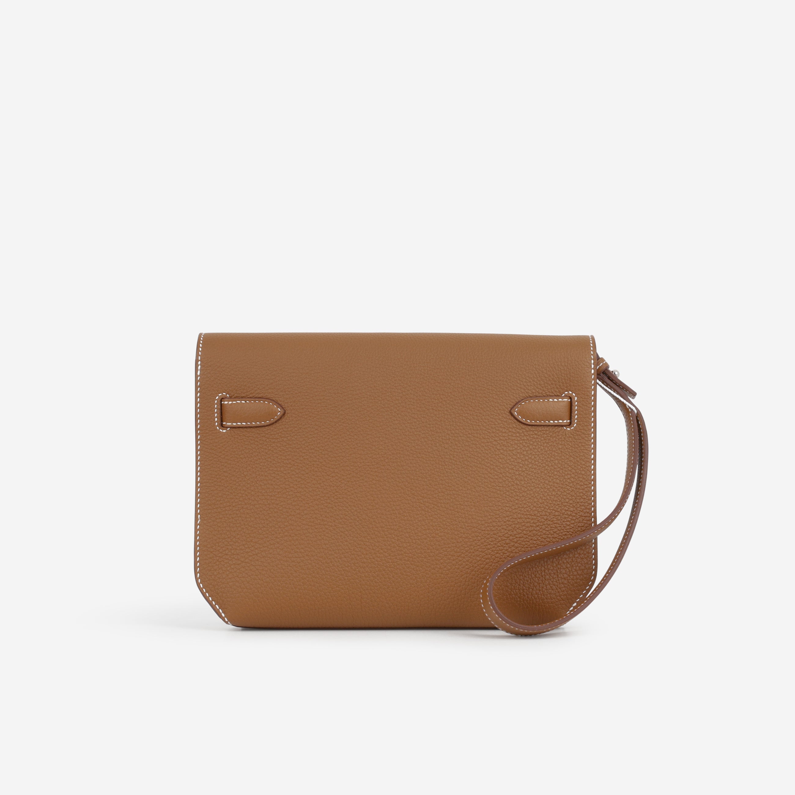 The Kelly Dépêches captures the masculine elements of the Kelly handbag. This variation was initially created as a document holder, yet featuring the clean lines and angles of the Kelly. It can be worn as a clutch or by the wristlet strap attached, making it completely versatile and functional.