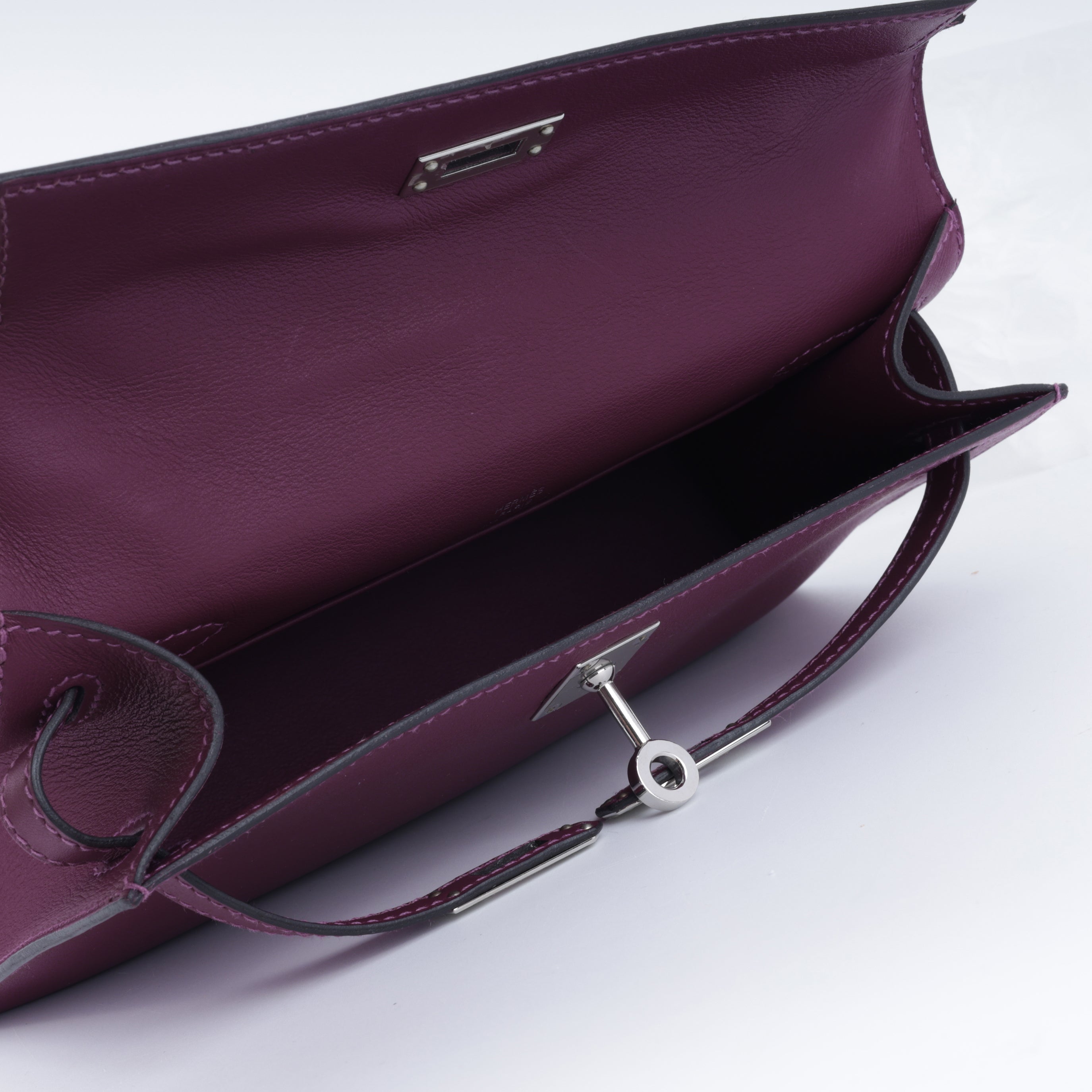 The Hermès Kelly Pochette in Anemone Swift leather with Palladium Hardware is a vibrant and rare gem in the Hermès world. Known for its saturated, jewel-toned purple hue, Anemone is a standout colour that adds a pop of bold sophistication to the timeless Kelly Pochette silhouette.
