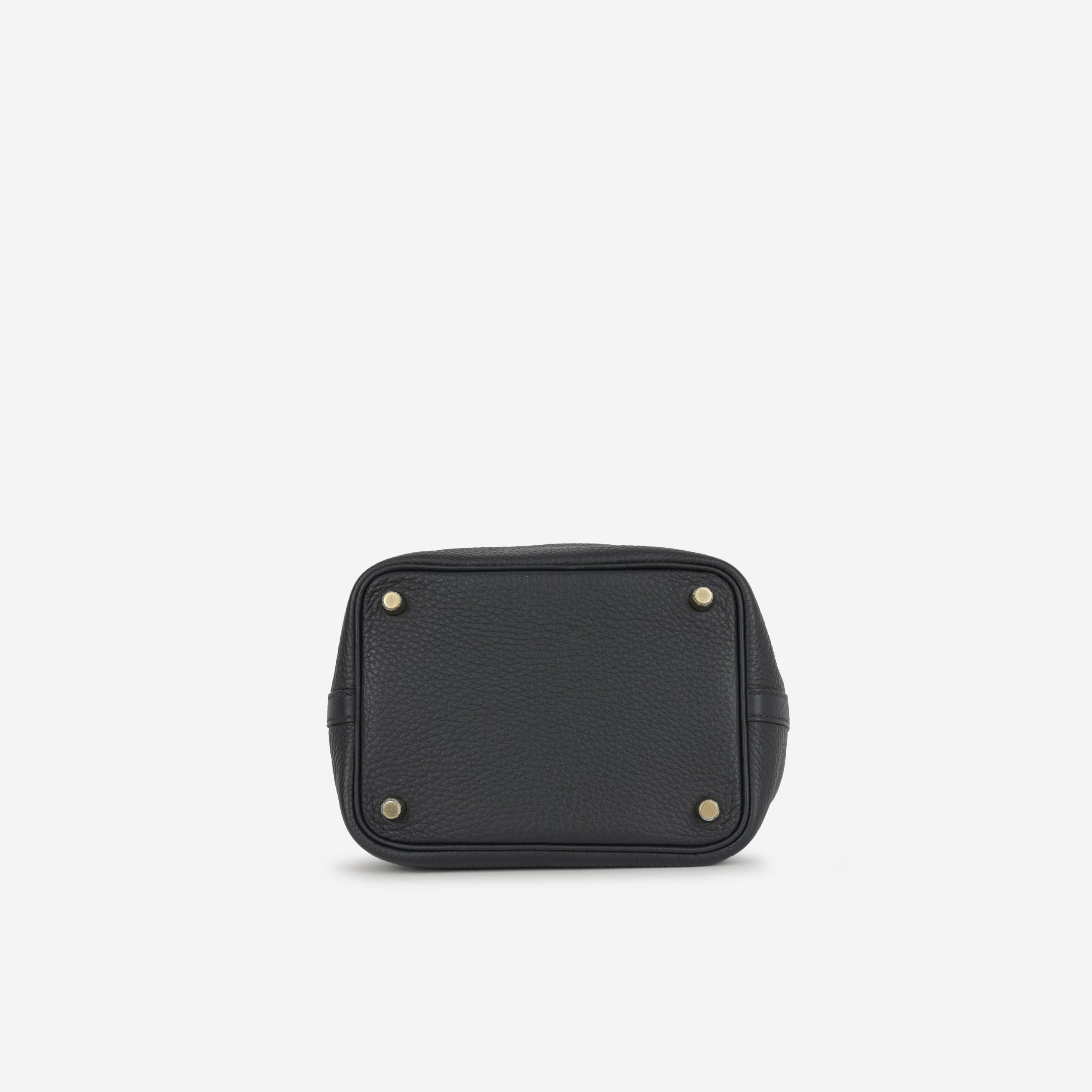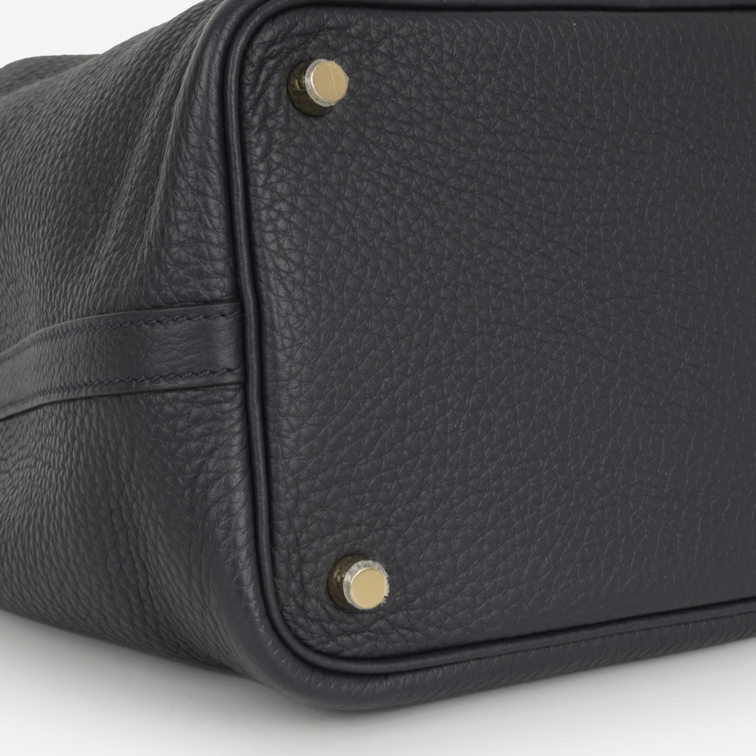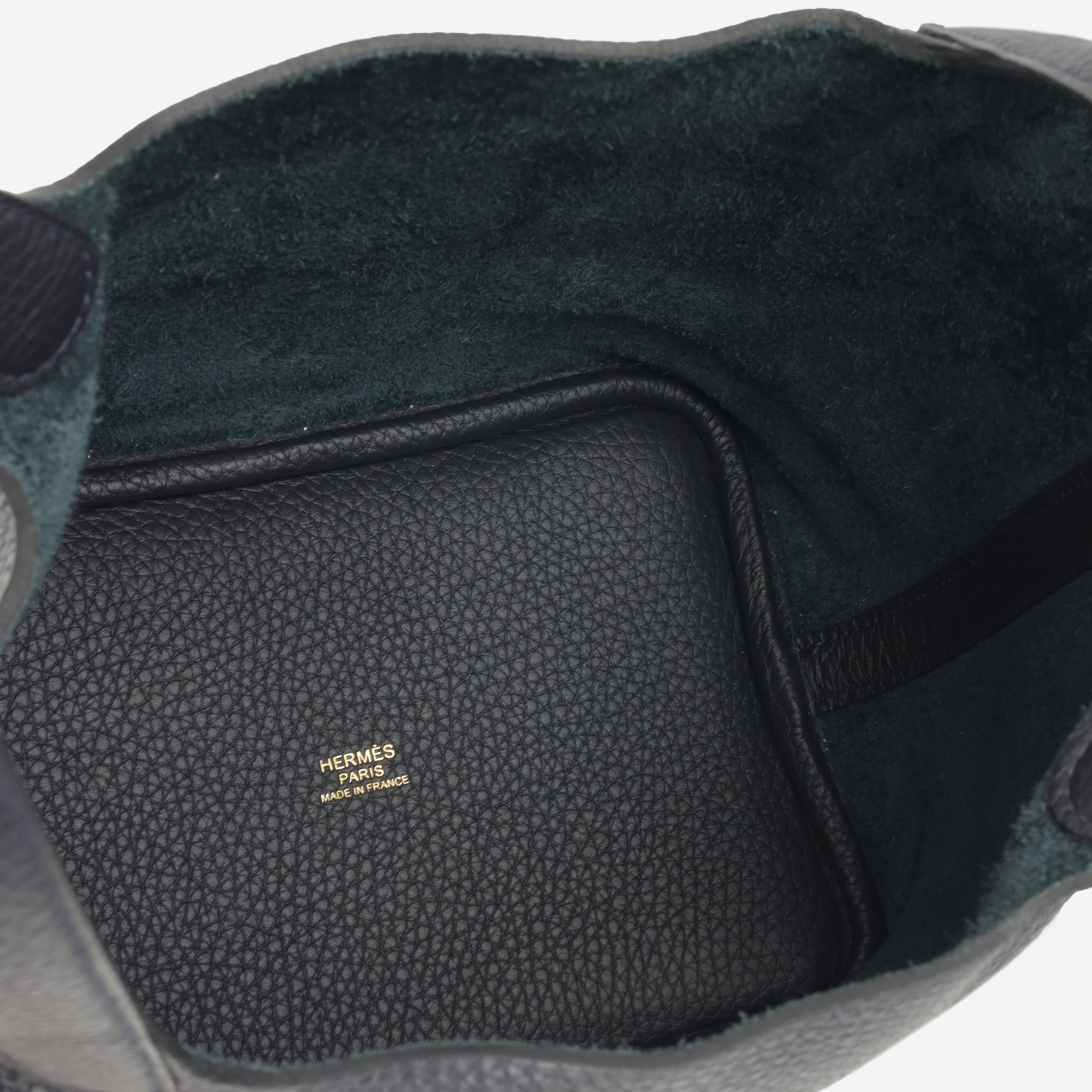Sought-after Hermès Picotin 18 in Caban Clemence with Gold hardware. This compact tote is in great condition, showing gentle signs of wear while maintaining its timeless elegance and chic appeal. A perfect everyday piece that combines understated luxury with practicality.