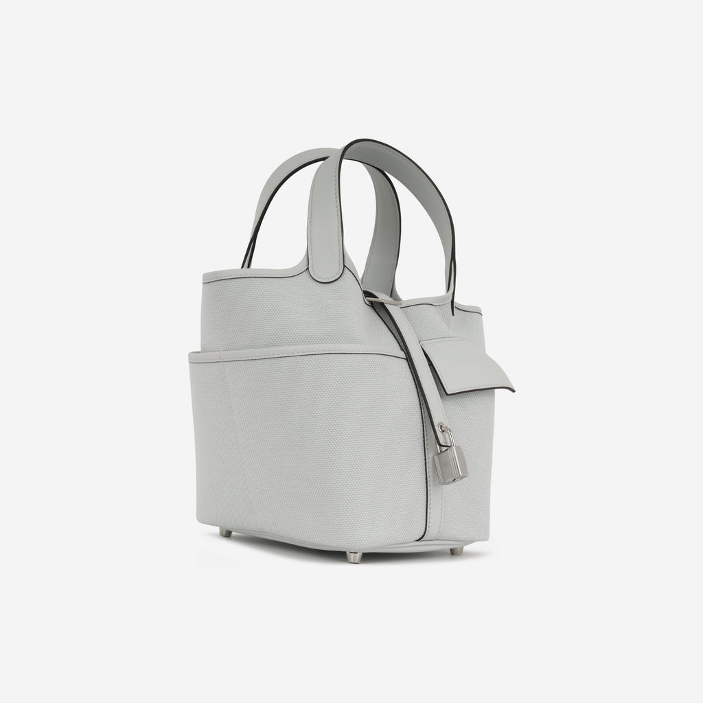 Featuring palladium hardware and an open-top design secured by a leather strap and padlock, the Picotin 18 Cargo offers effortless access and a relaxed yet refined aesthetic. Its compact size is perfect for carrying daily essentials, while its tonal grey palette gives it a contemporary, understated look that pairs seamlessly with any outfit.