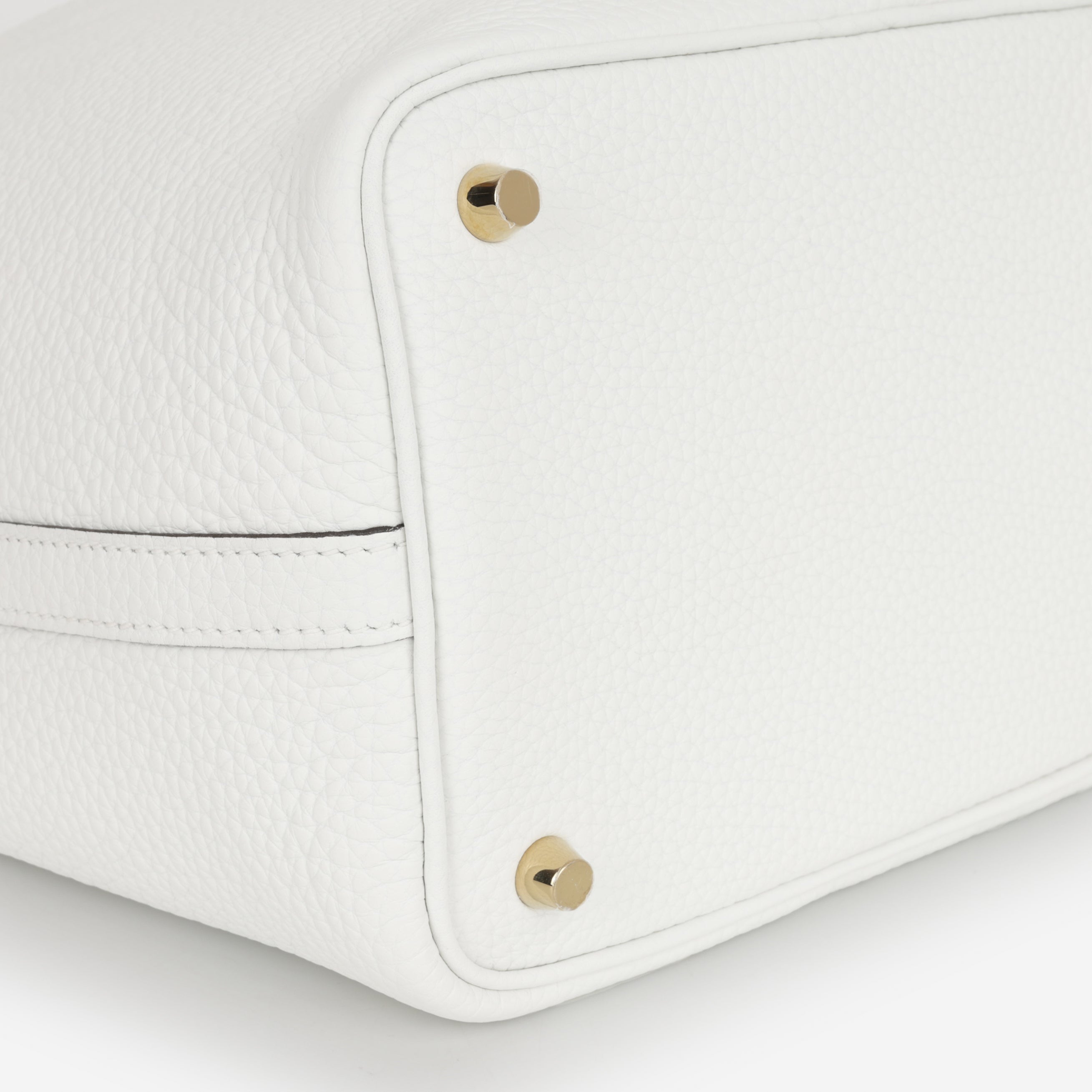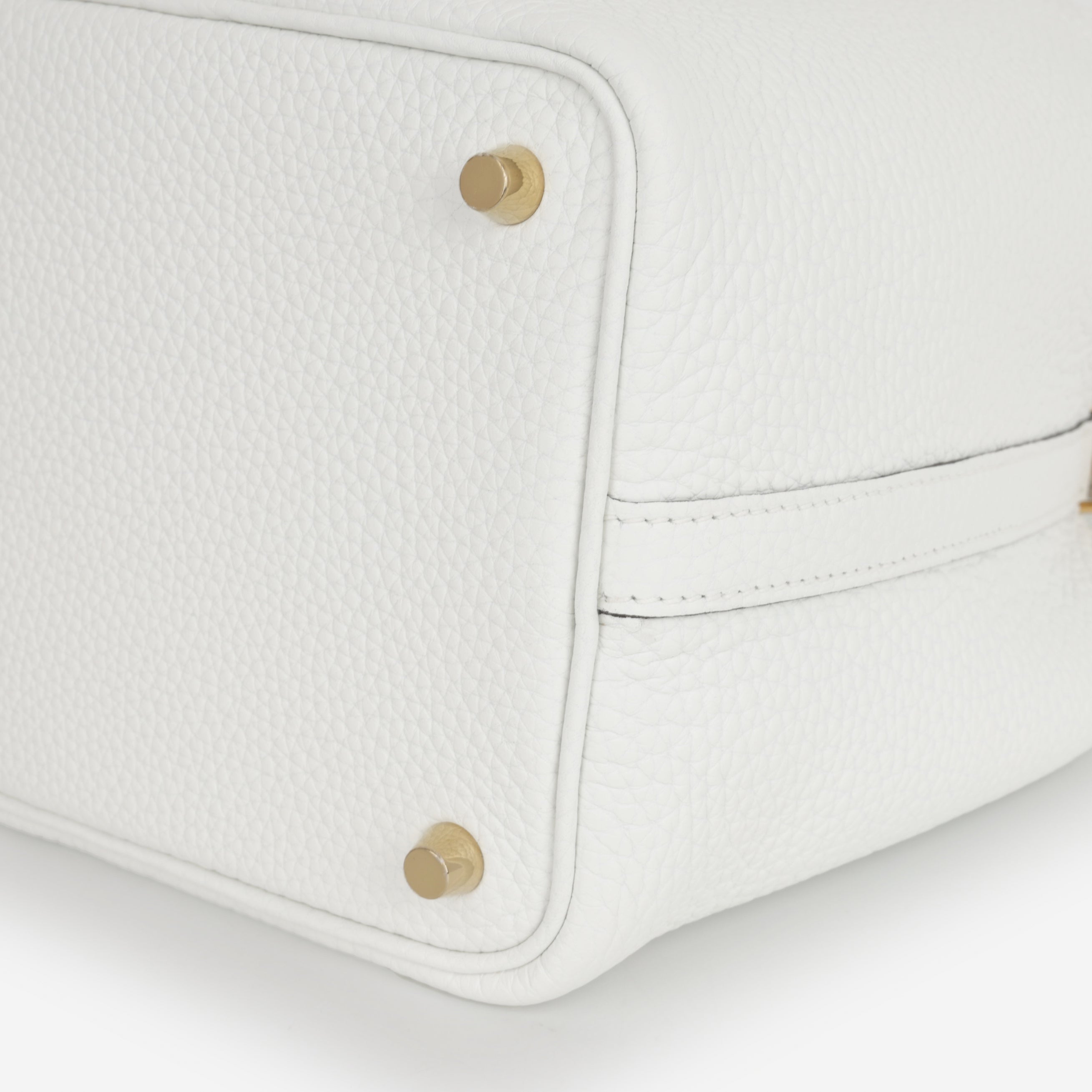 Crafted from supple Clemence leather, renowned for its soft grain and durability, this bag is designed to age beautifully over time. The crisp New White shade enhances its fresh, versatile appeal, while warm gold hardware adds a luxurious finishing touch. Spacious yet compact, the Picotin 18 offers the perfect balance of practicality and style for daily wear.