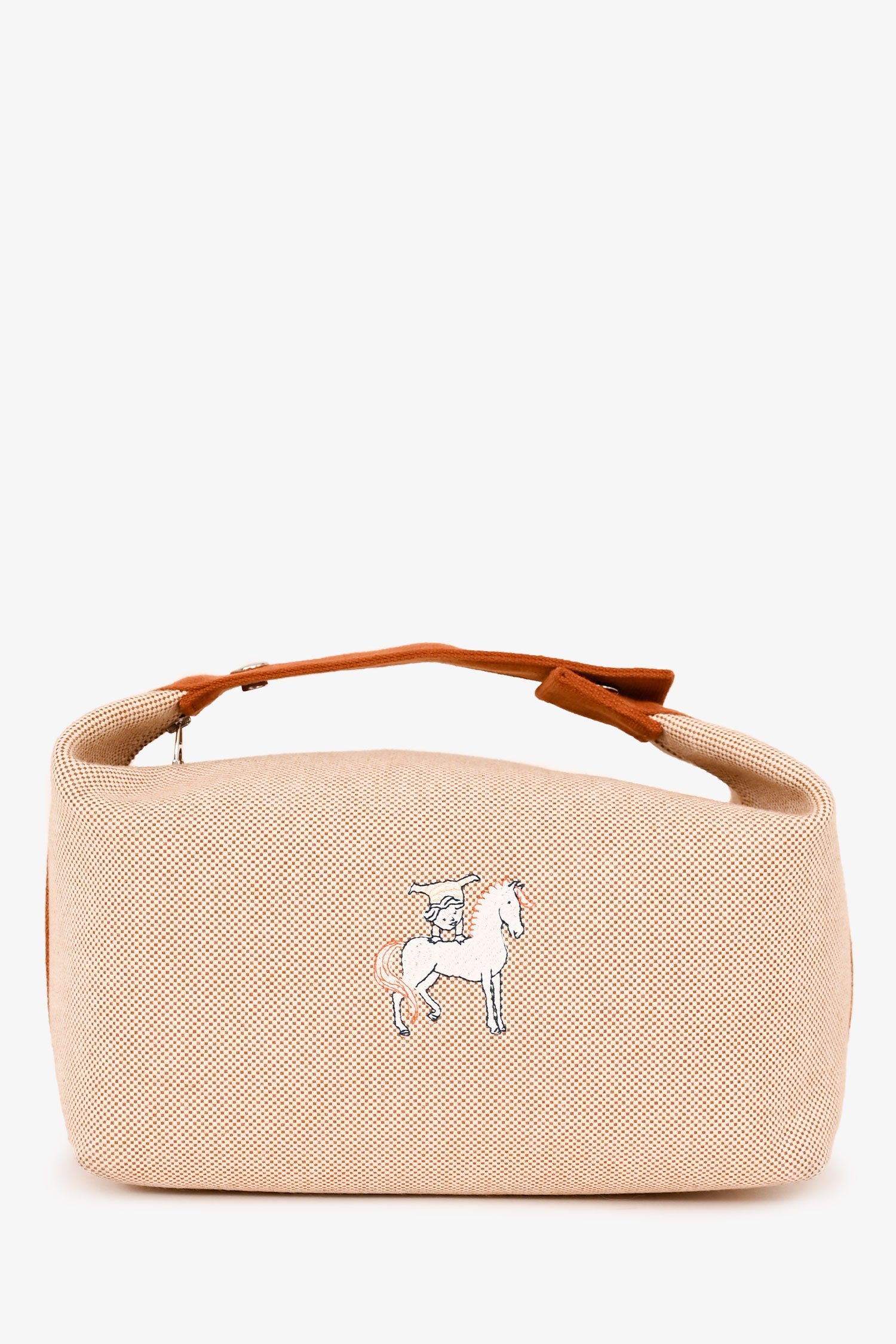Hermès Large Toile Bride-A-Brac Cabriole Case. Top zip closure. Adjustable top handle. 3 interior slip pockets. Silver-tone hardware. Tonal stitching.