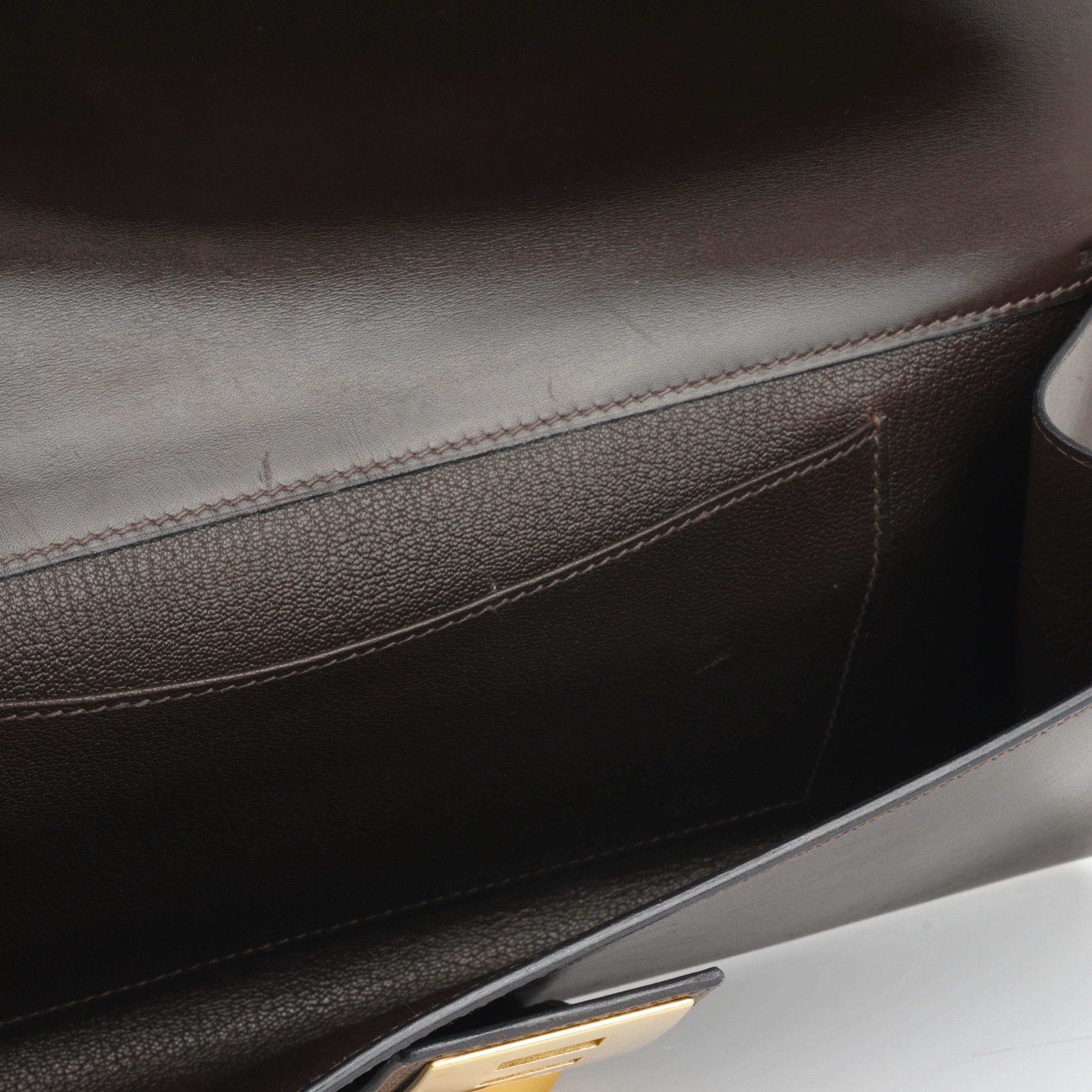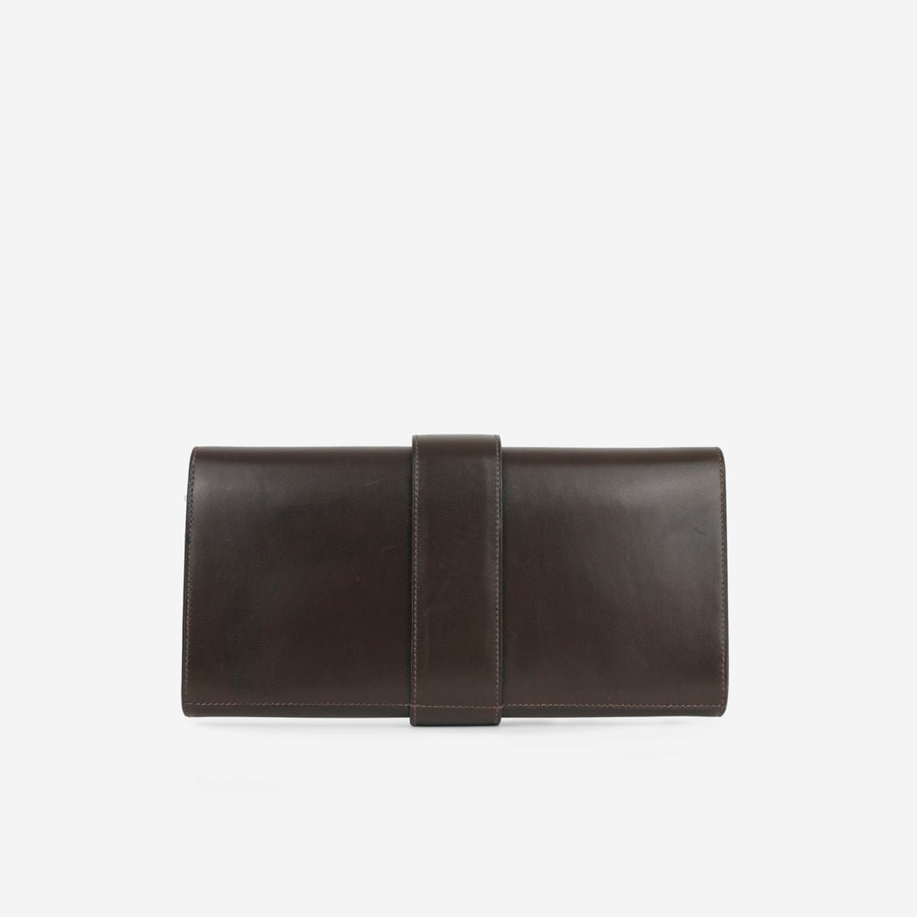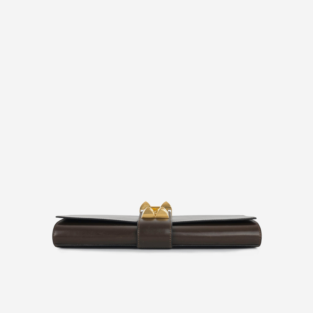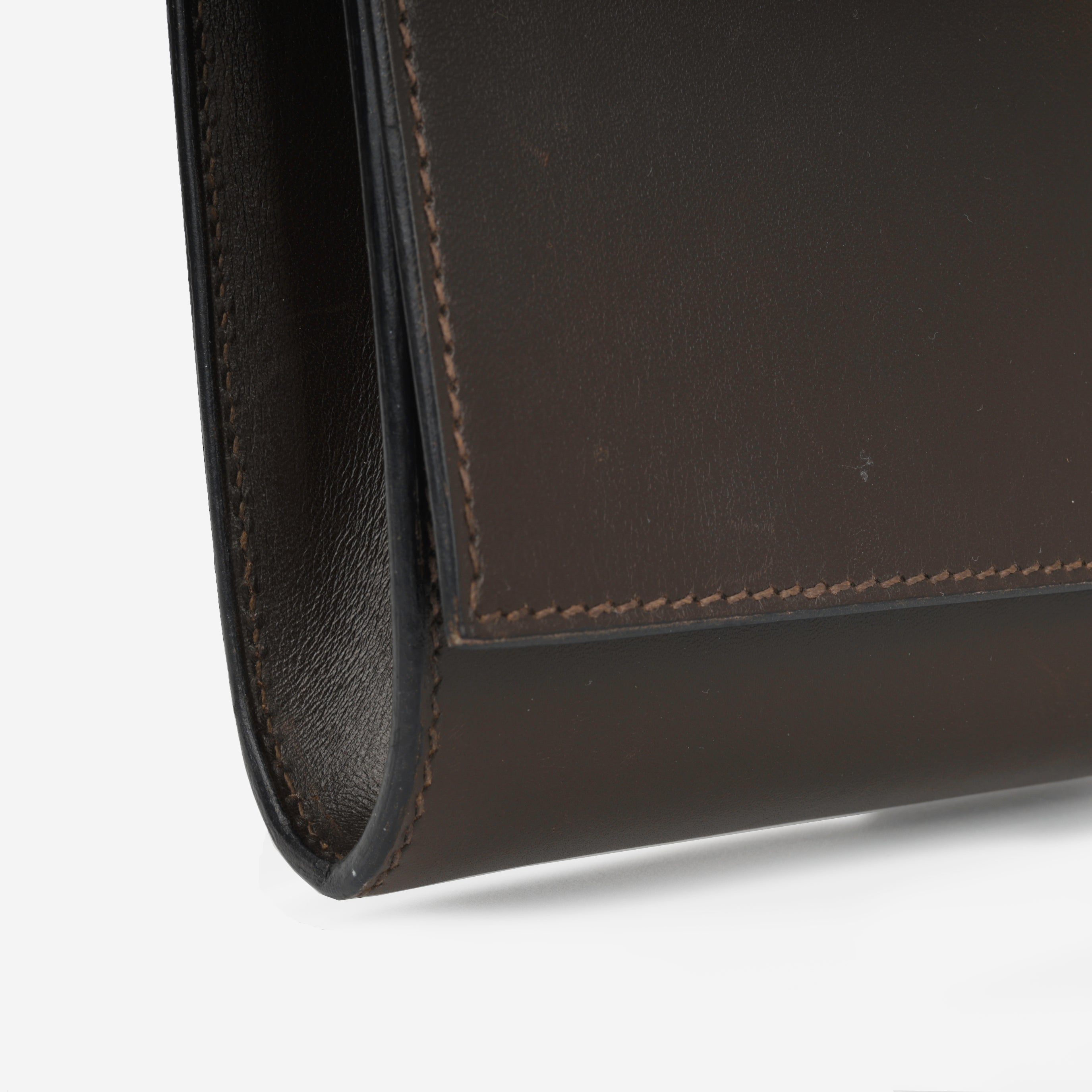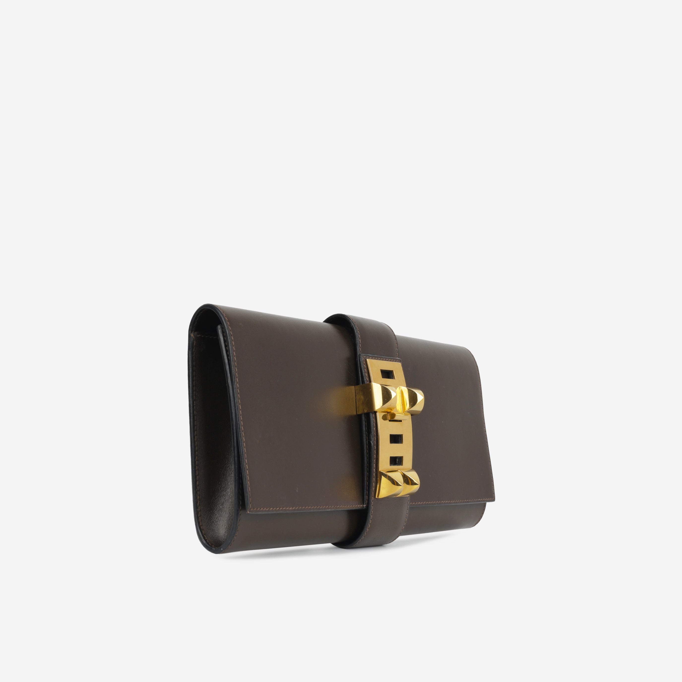 Rendered in Ébène Box Calf, a smooth and glossy heritage leather known for its fine grain and elegant aging, this piece radiates timeless sophistication. The deep brown hue paired with rich gold-plated hardware creates a warm, luxurious contrast that elevates any evening or formal look.