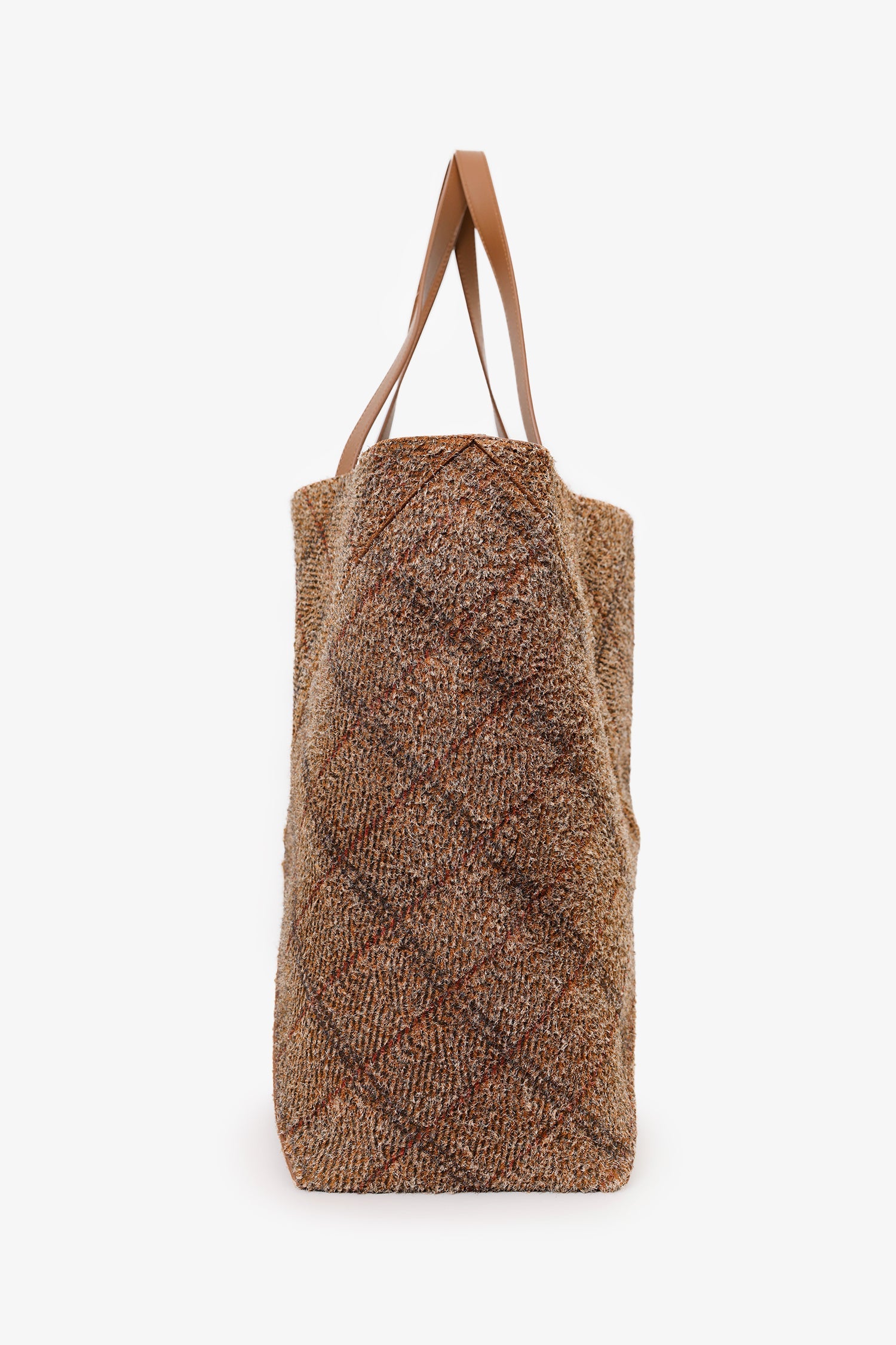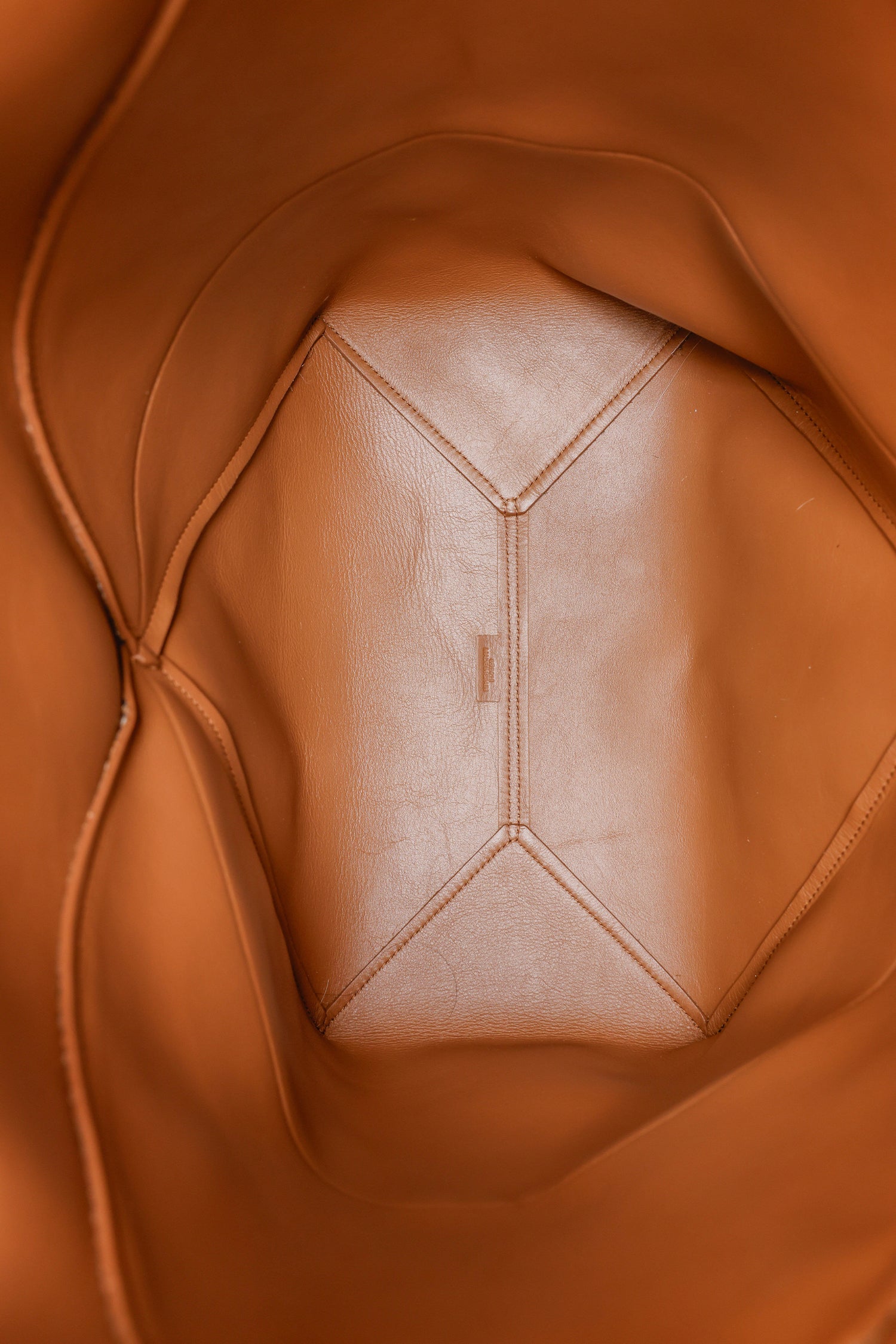 Loewe Brown Brushed Suede 'Puzzle Fold' XL Tote. Top open. Twin leather shoulder strap. Open leather-lined interior. Tonal stitching.